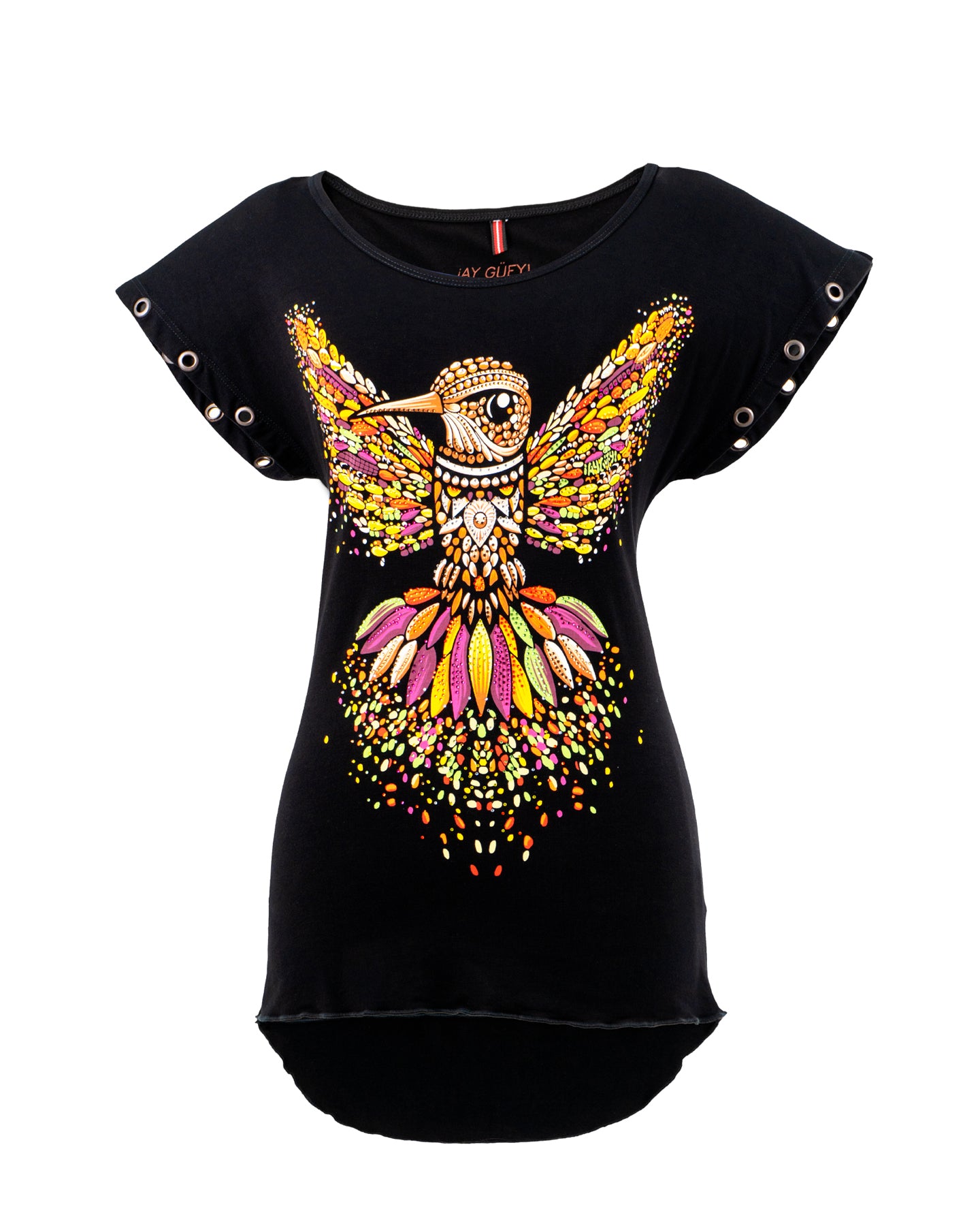 Playera estampada con aplicación de pedrería para mujer - Modelo CORUNDA