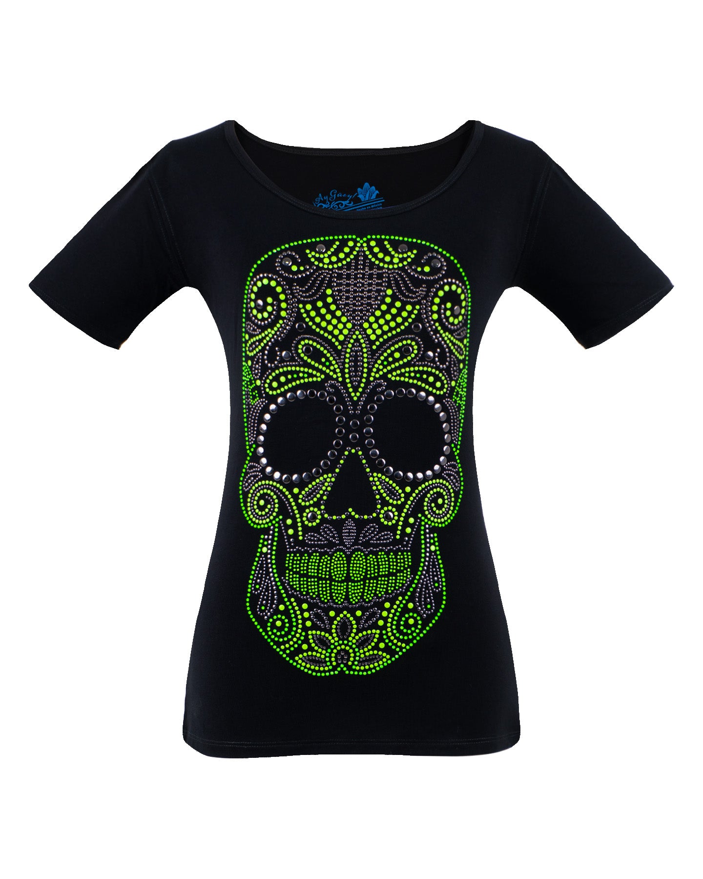 Playera estampada con aplicación de pedrería para mujer - Modelo CORUNDA VERDE