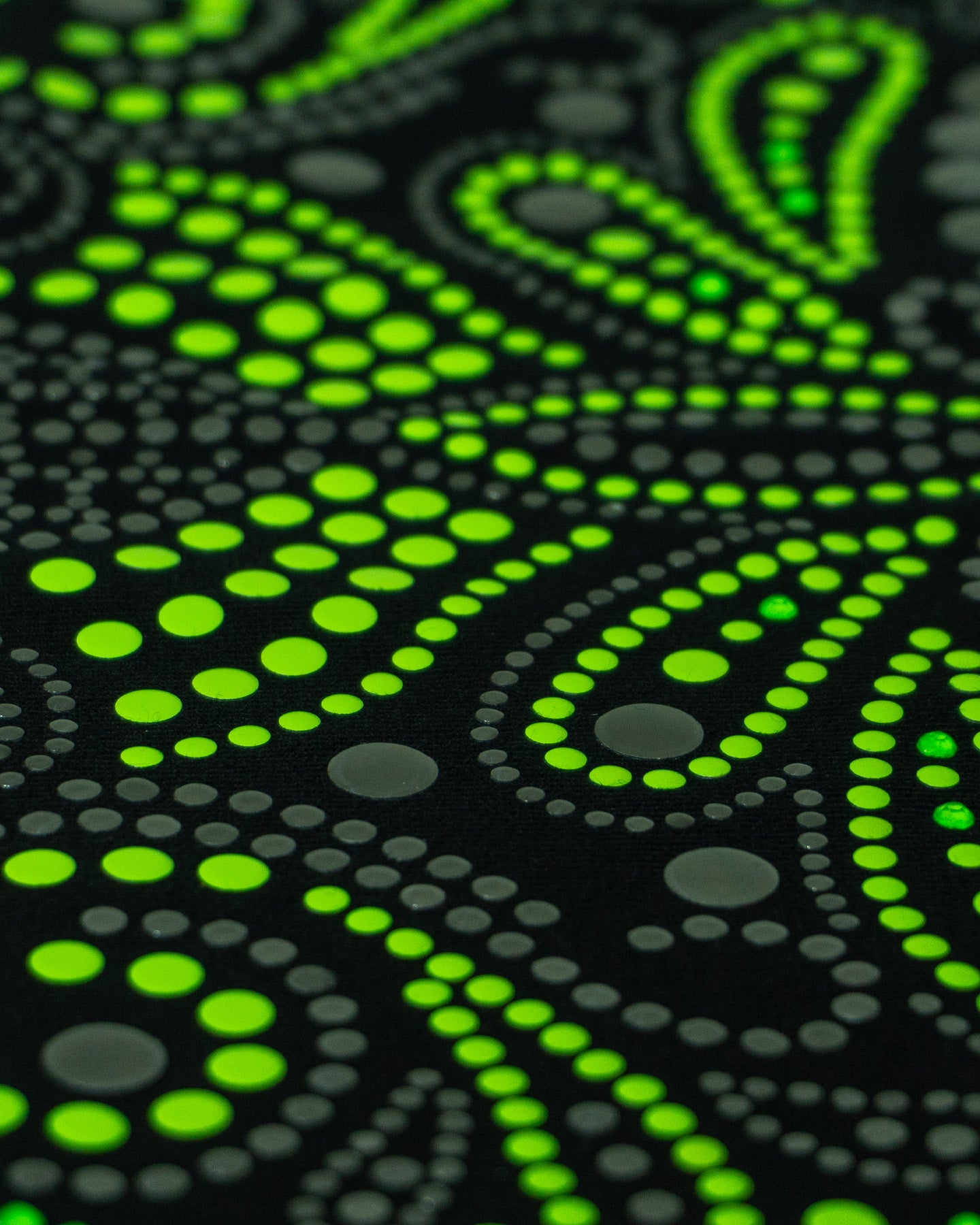 Inspirada en el maíz, el grano sagrado y fundamental que, según las leyendas, dio origen a la humanidad en el México antiguo, esta calavera floral y geométrica celebra la vida y la fertilidad. Los patrones circulares y orgánicos en tonos verde vibrante (neón) y gris claro reflejan las semillas, la siembra y la cosecha, pilares de la identidad y el origen de nuestro pueblo.