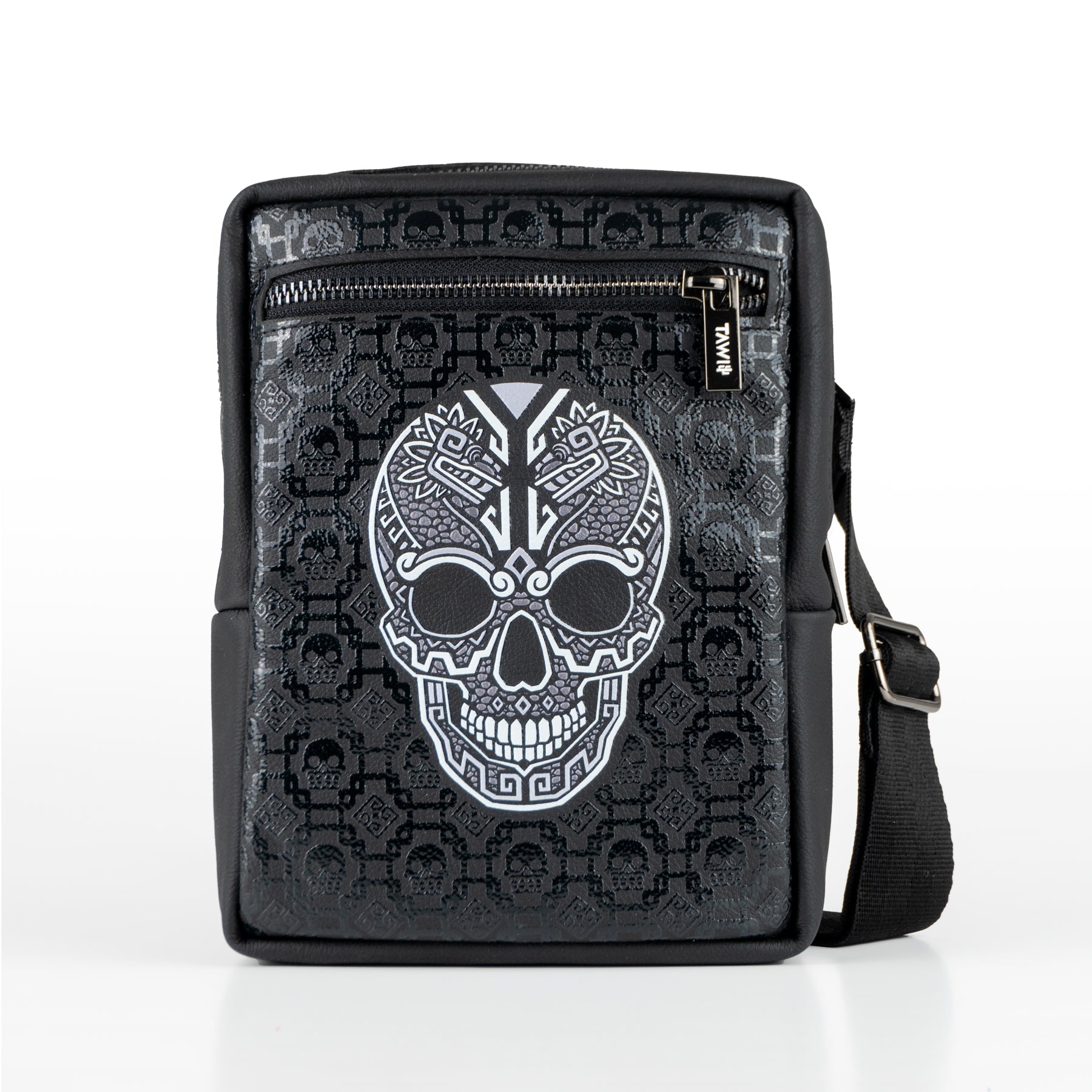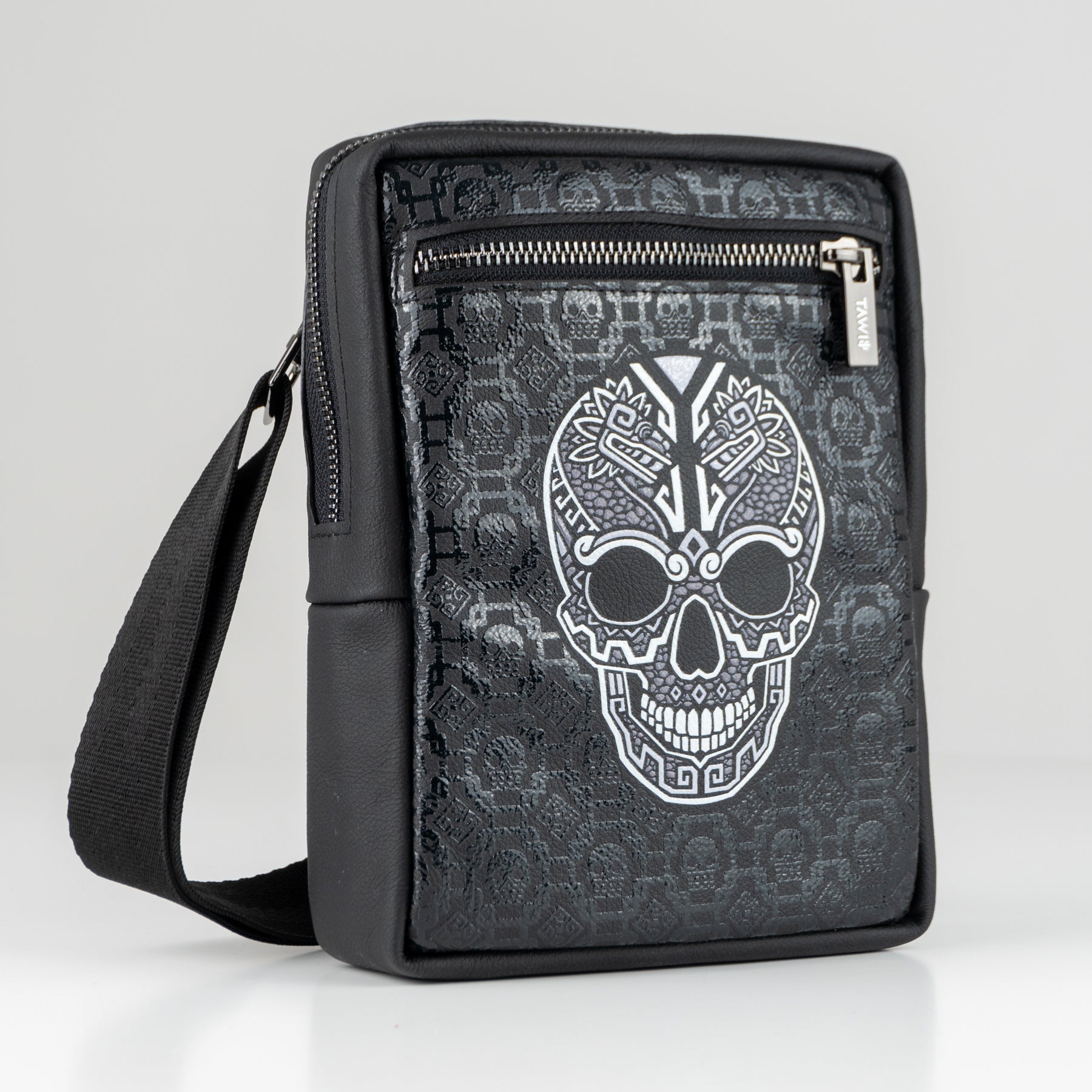 Bolsa de viaje de piel con correa ajustable - Colección CALAVERA NEGRA
