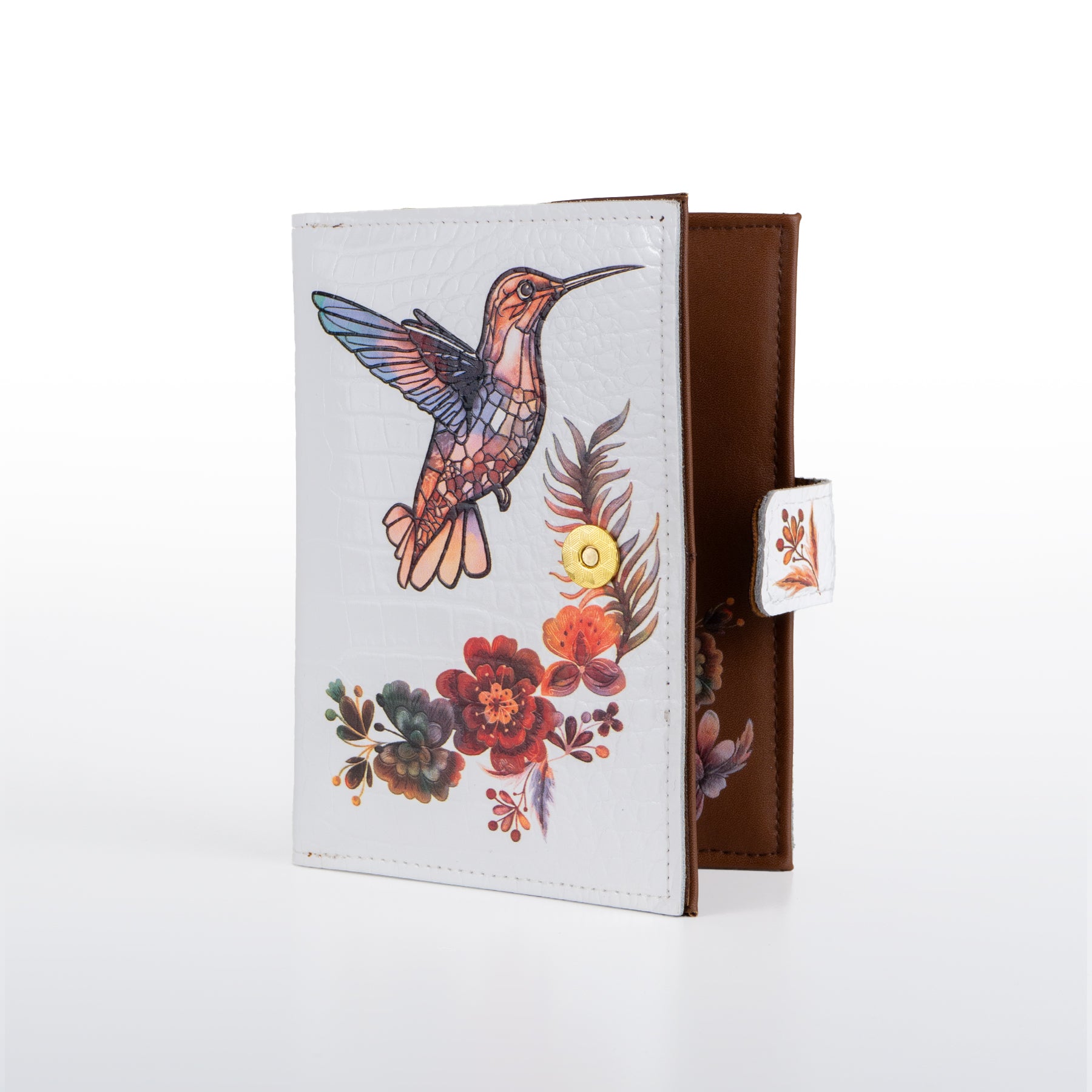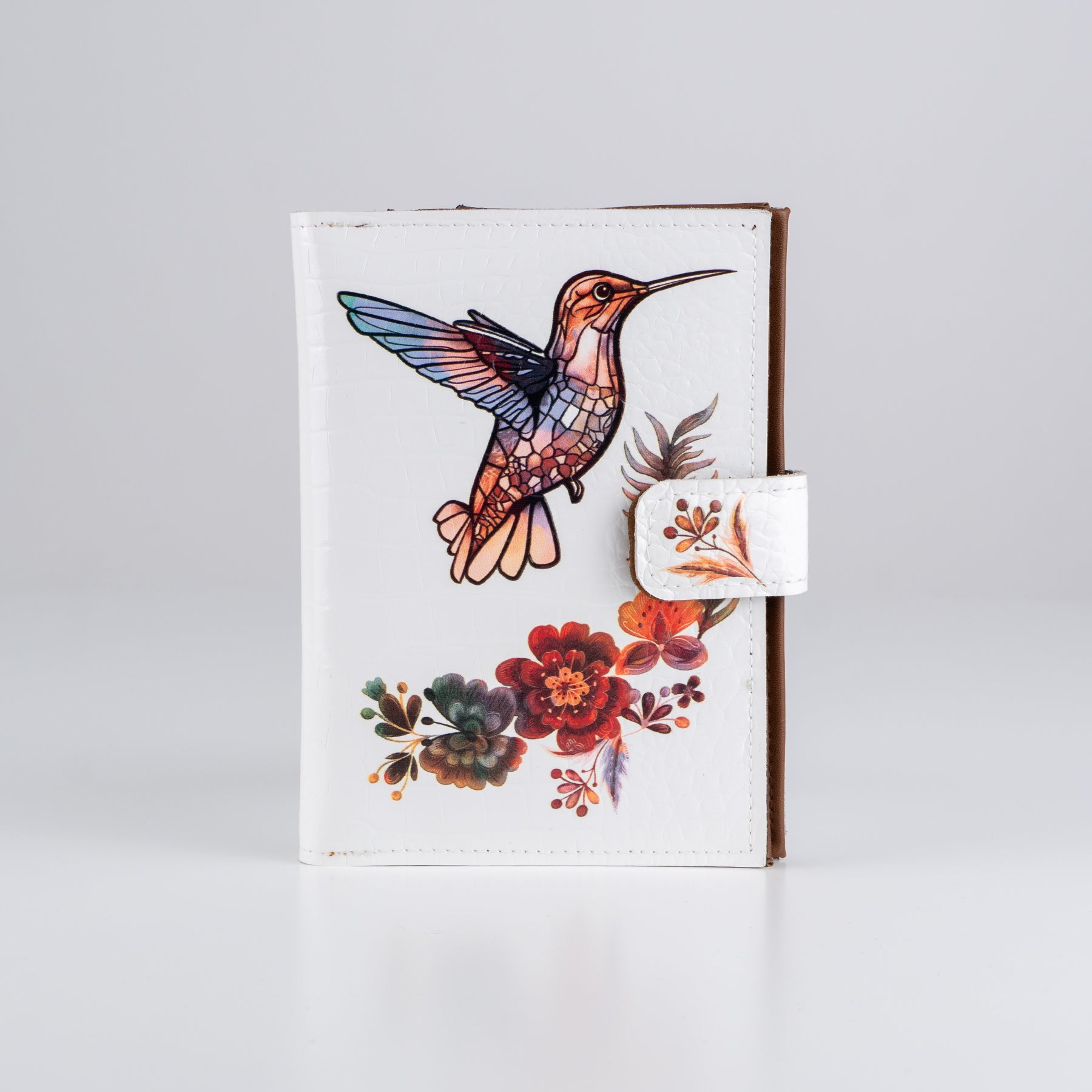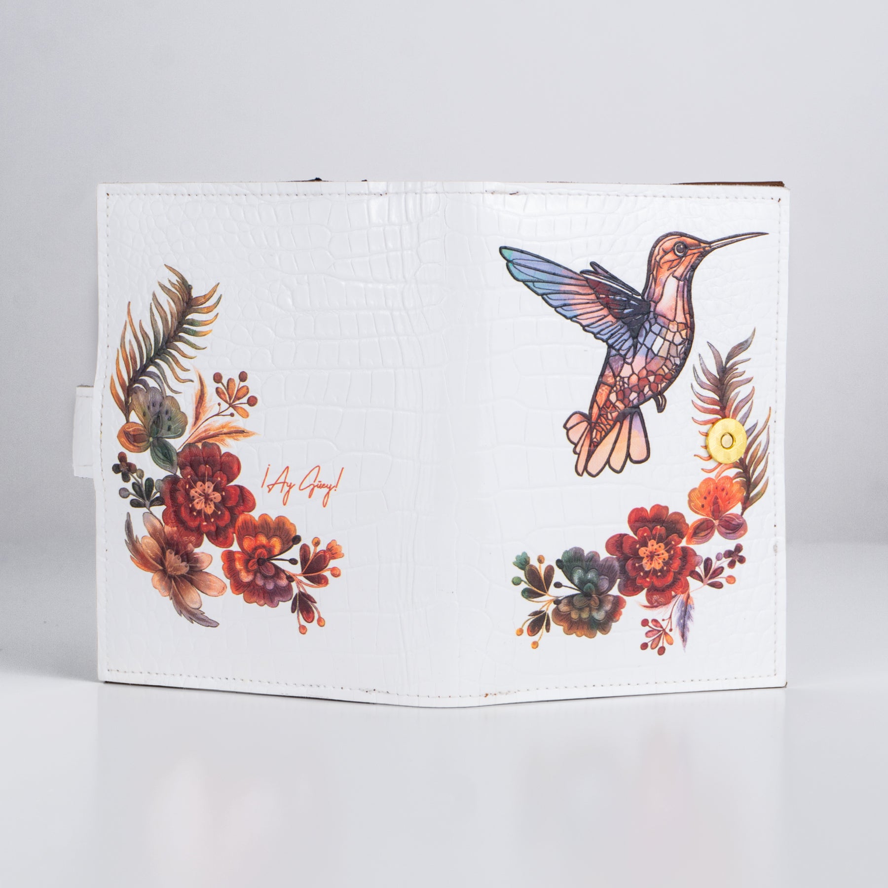 Cuenta con un diseño de colibrí muy colorido y vibrante.