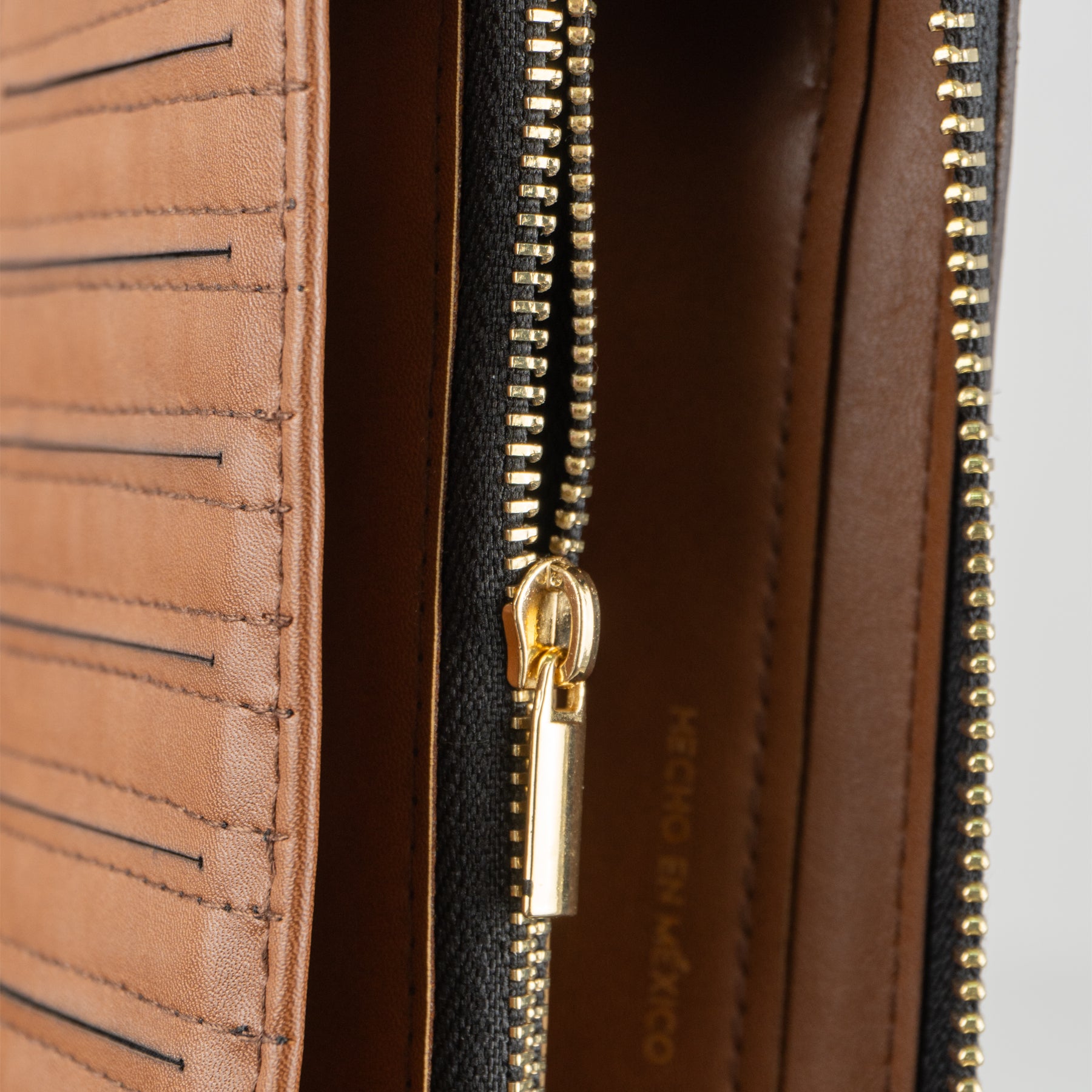 Cartera amplia de dama, con 3 bolsillos, tarjeteros y monedero.