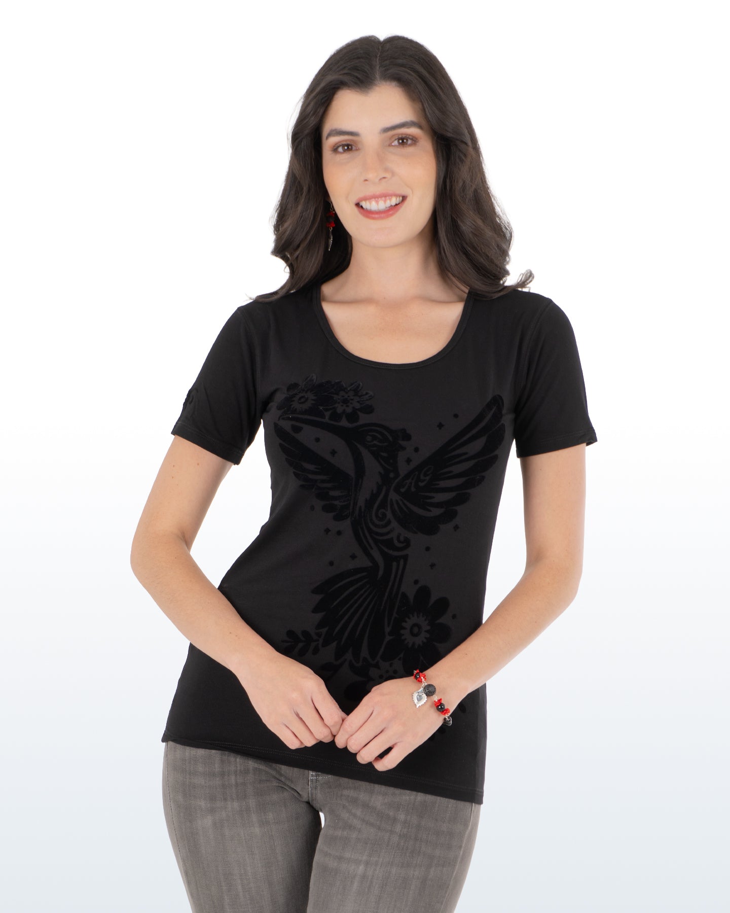 Playera estampada con Flock negro sobre negro para mujer - Modelo COLIFLOCK