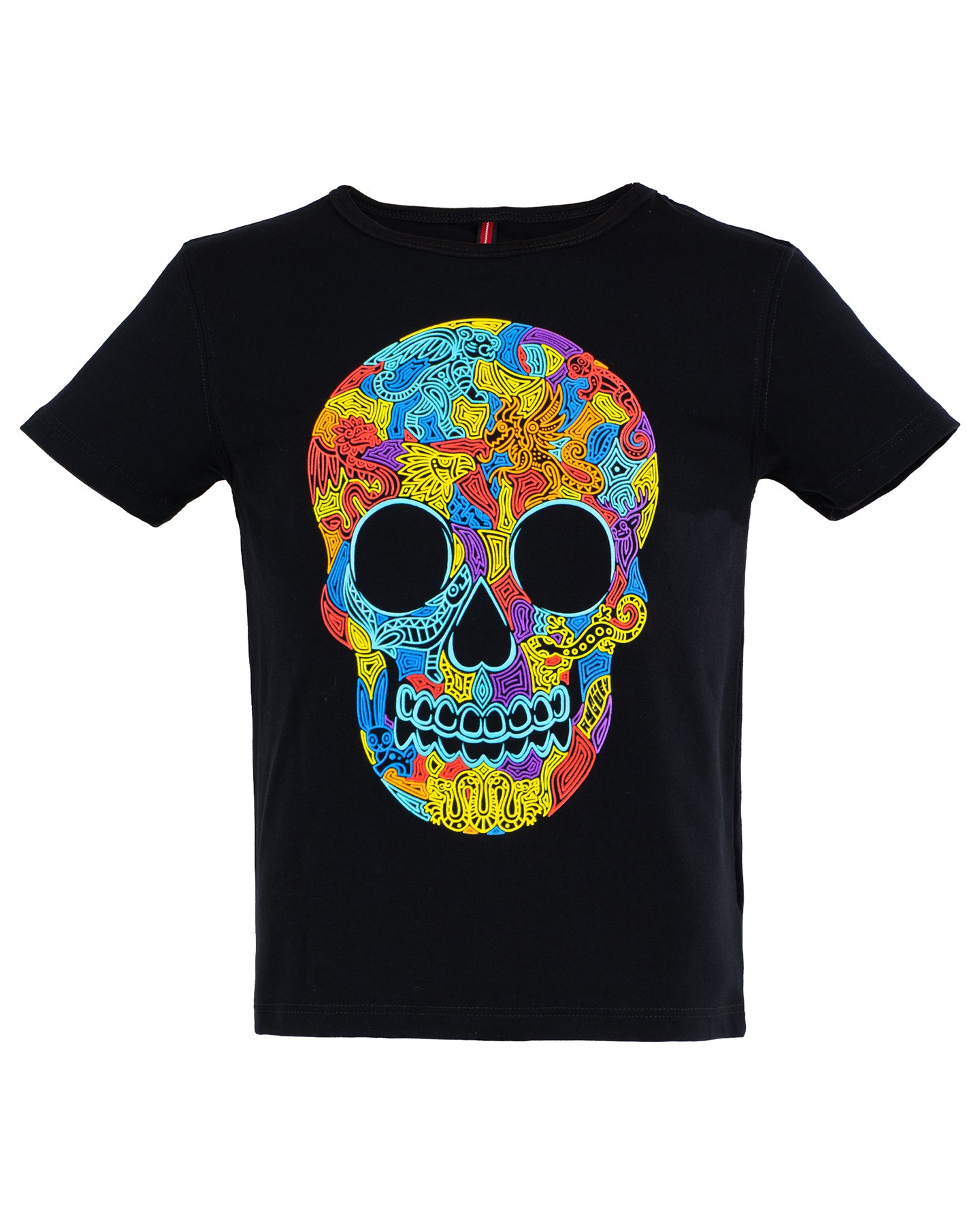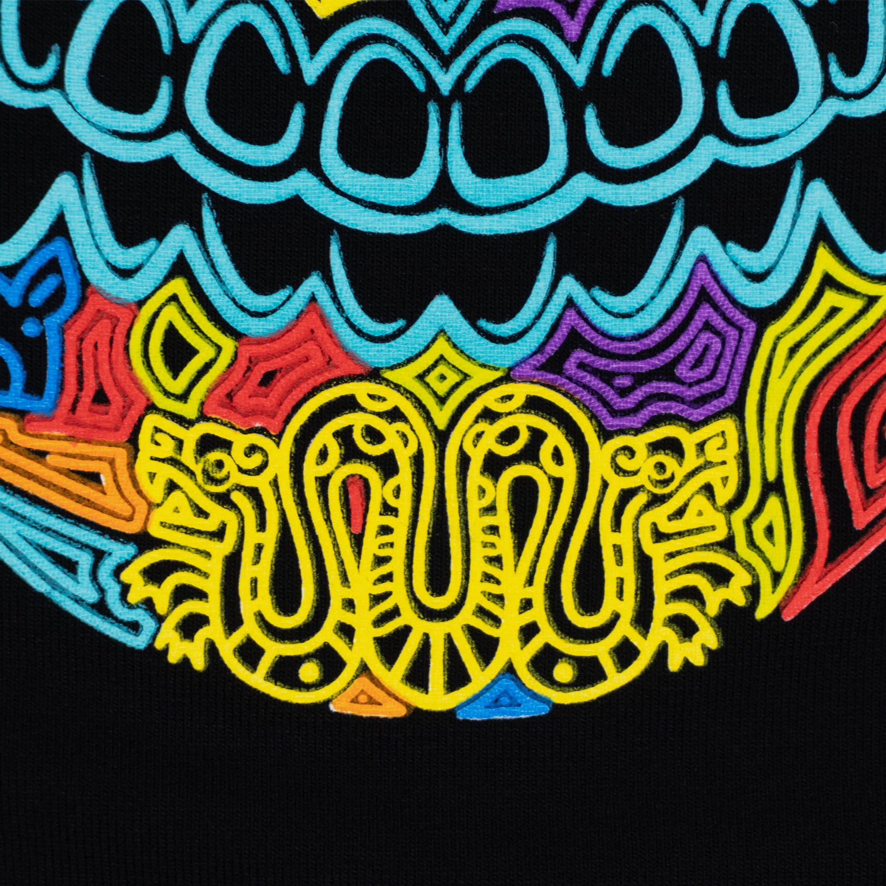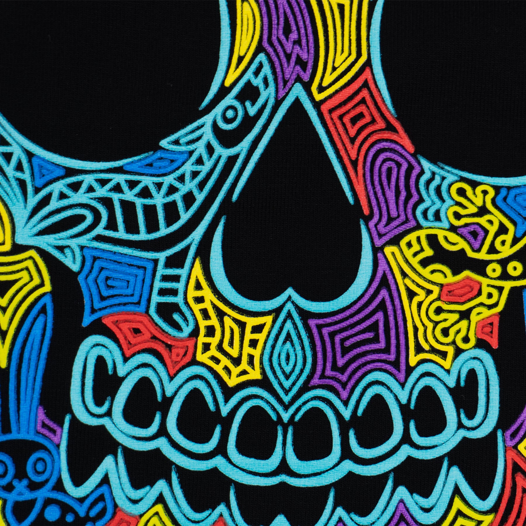 Inspirada en las criaturas míticas más coloridas y vibrantes, esta prenda te transportará a un mundo lleno de magia y tradición. Su diseño de calavera, elaborado con líneas continuas, captura la esencia de los alebrijes y te conecta con el arte popular mexicano.