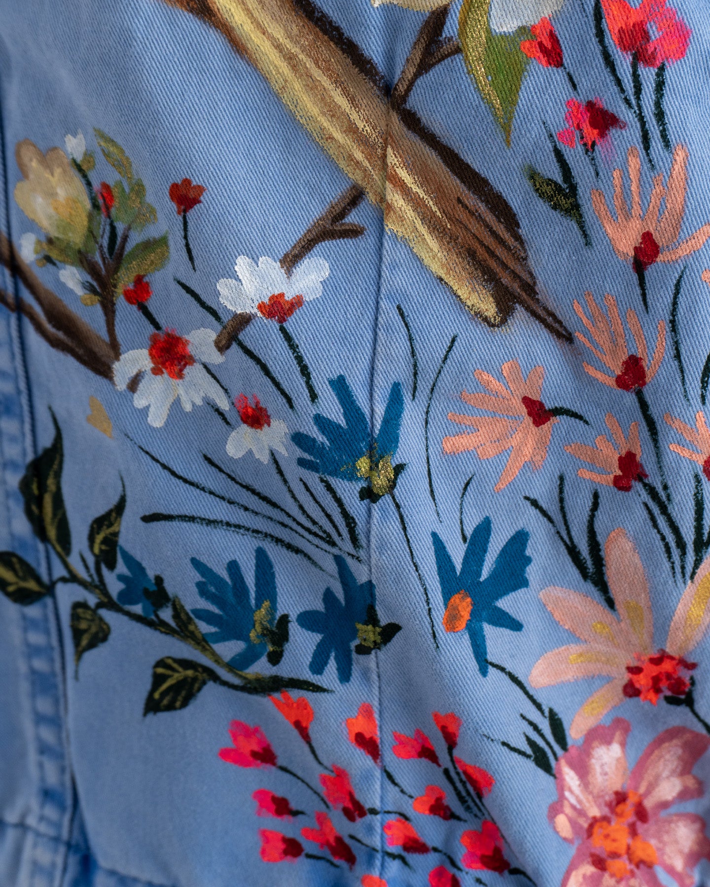 Lleva contigo un pedacito de la naturaleza con nuestra camisa de mezclilla "Tesorito". Fabricada con denim cómodo y duradero, esta camisa casual es elevada a la categoría de arte gracias a su diseño pintado a mano. Un encantador pajarito anida en la espalda, rodeado de un festín de flores vibrantes que complementan su vuelo. Cada "Tesorito" es pintado a mano individualmente, lo que significa que pueden existir ligeras diferencias en los detalles y la colocación del diseño floral y del ave en comparación con la fotografía, haciendo cada camisa excepcionalmente original.