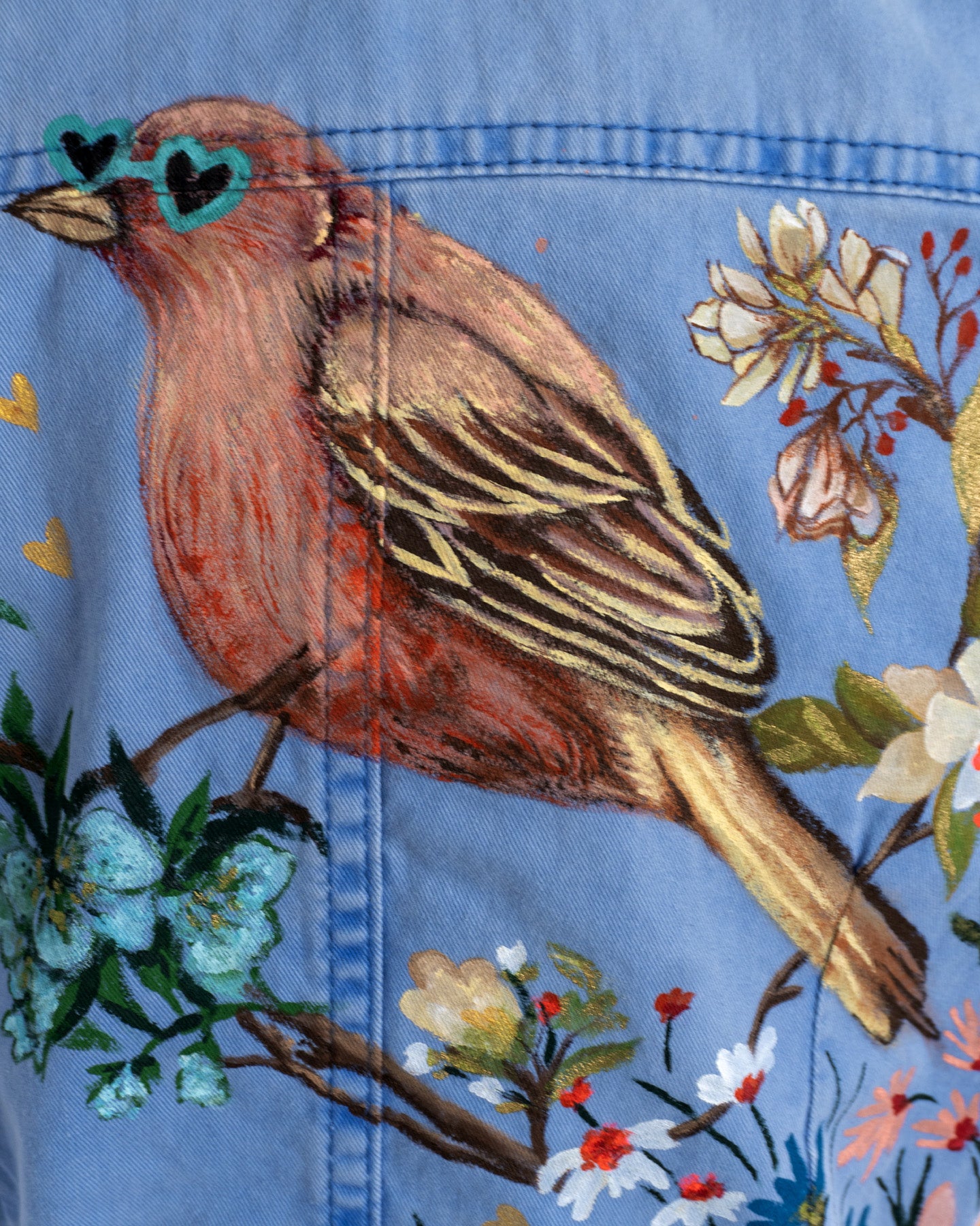 Camisa de mezclilla pintada a mano para mujer Talla Chica - Modelo TESORITO ARTE