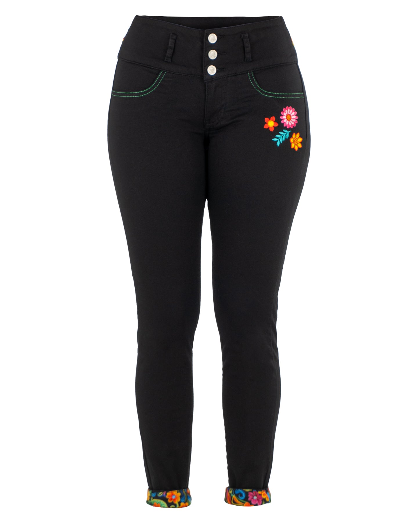 Pantalón de dama, nuestro clásico QQ con detalles de bordado y sublimado con motivos florales en la parte posterior que enmarca la cintura y el QQ ...