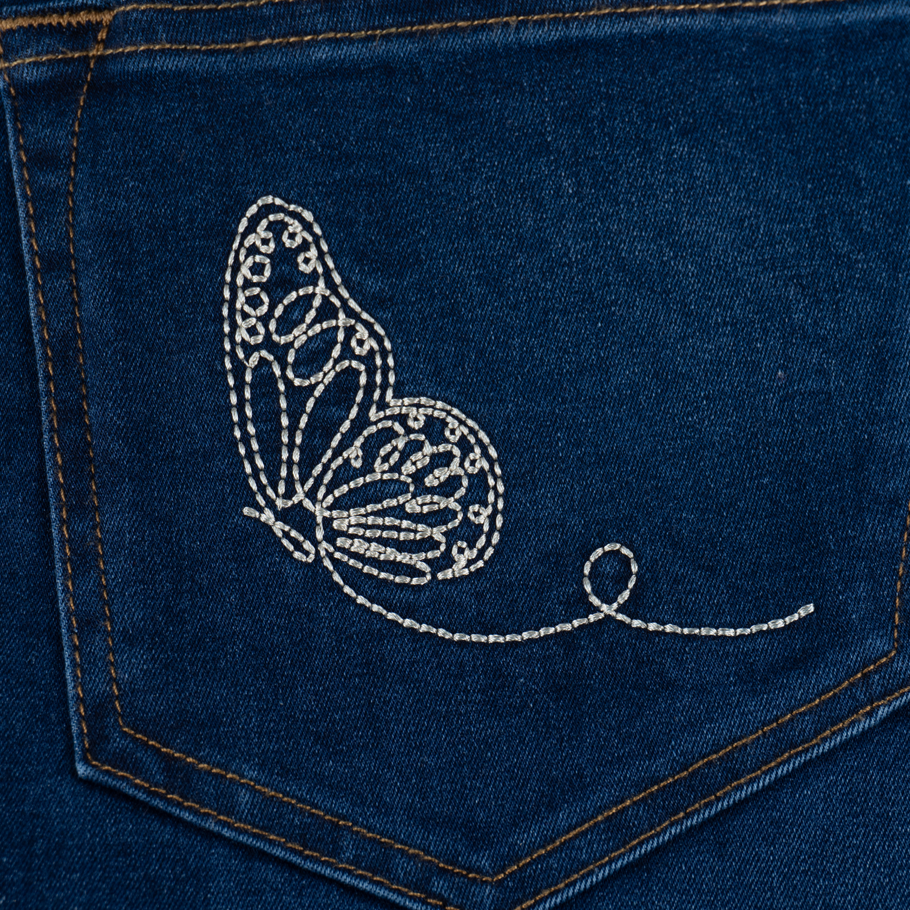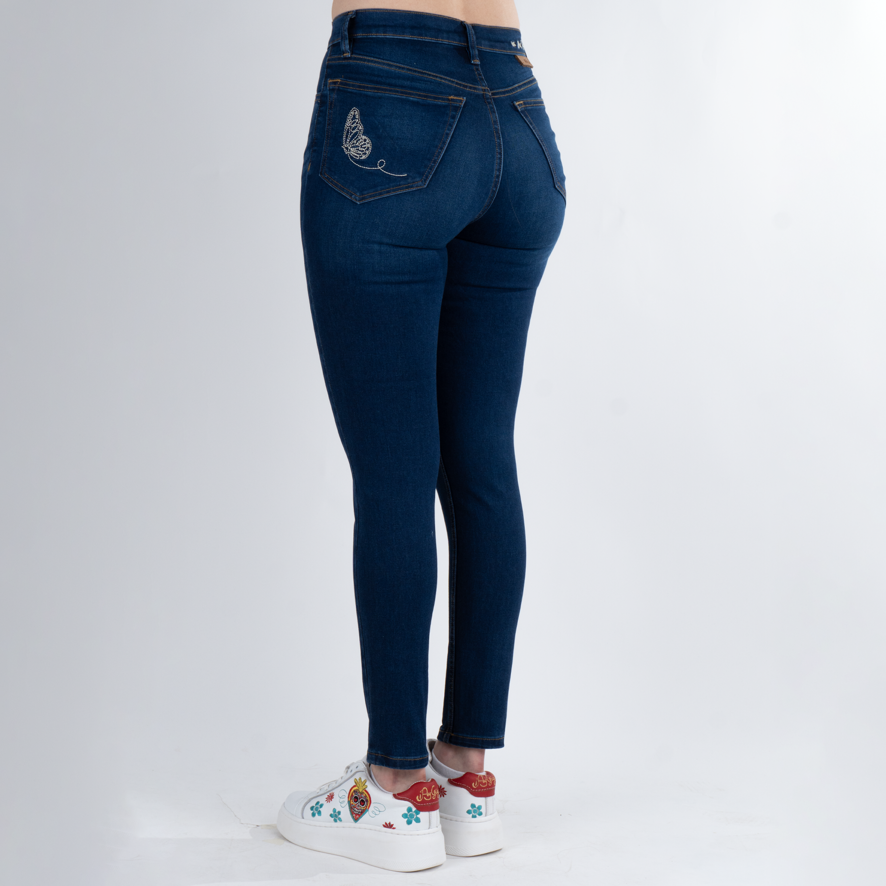 Jeans de mezclilla con detalles bordados Modelo Fifi para mujer - LA MARIPOSA