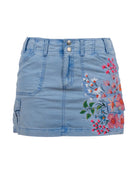Descubre la exclusividad de nuestra falda "Picosita". Elaborada en mezclilla suave y embellecida con un detallado diseño floral pintado a mano. Un básico reinventado que aporta frescura y originalidad a tu look.