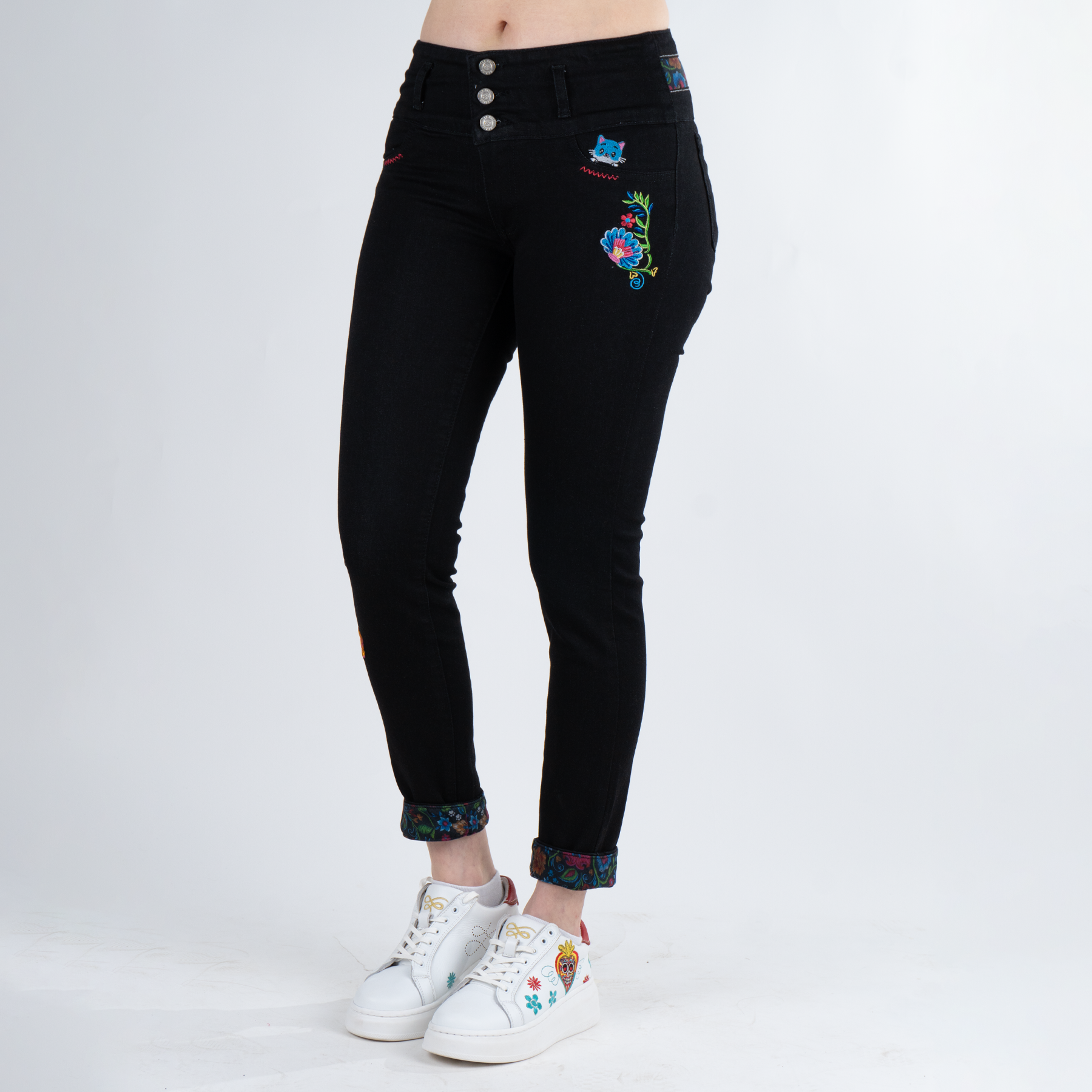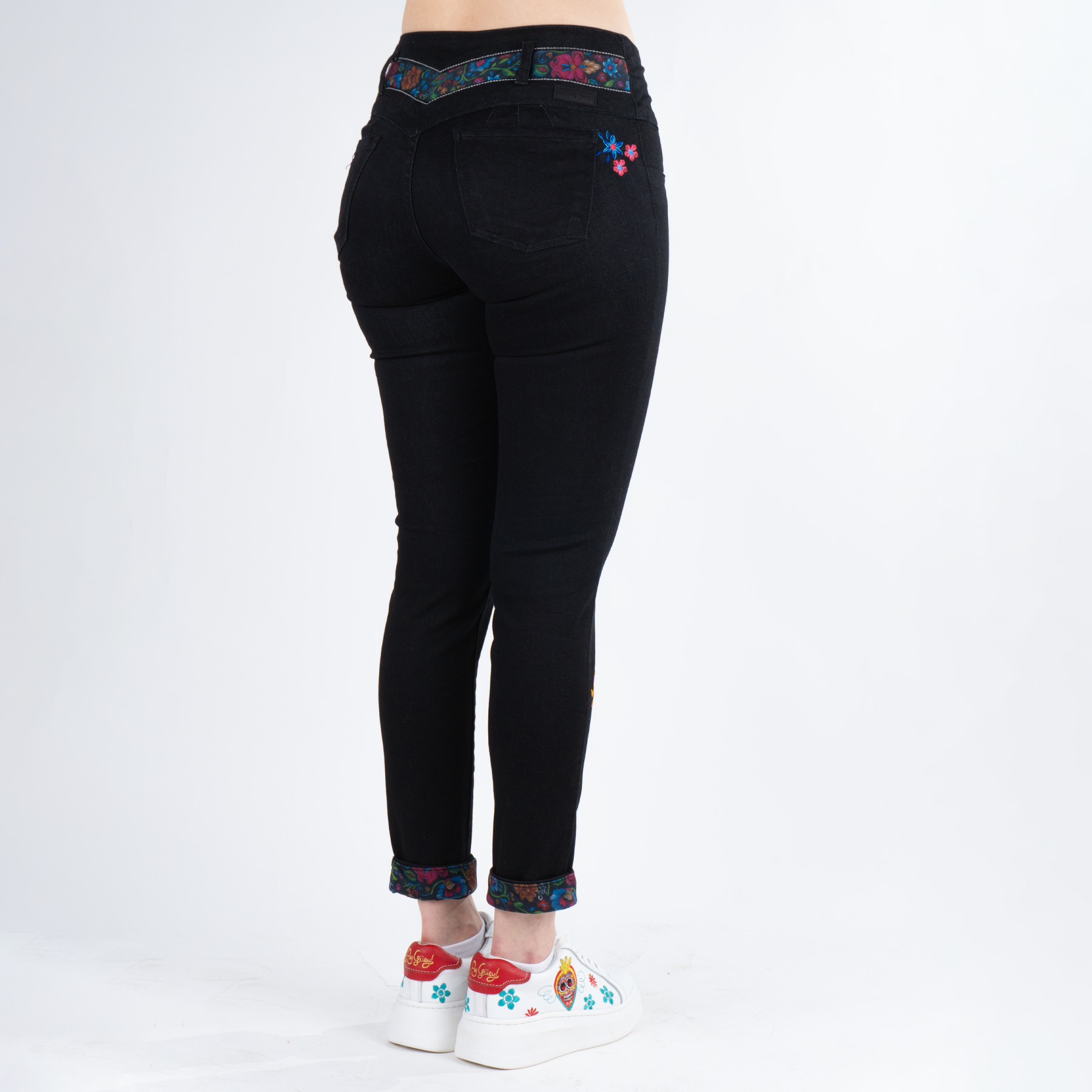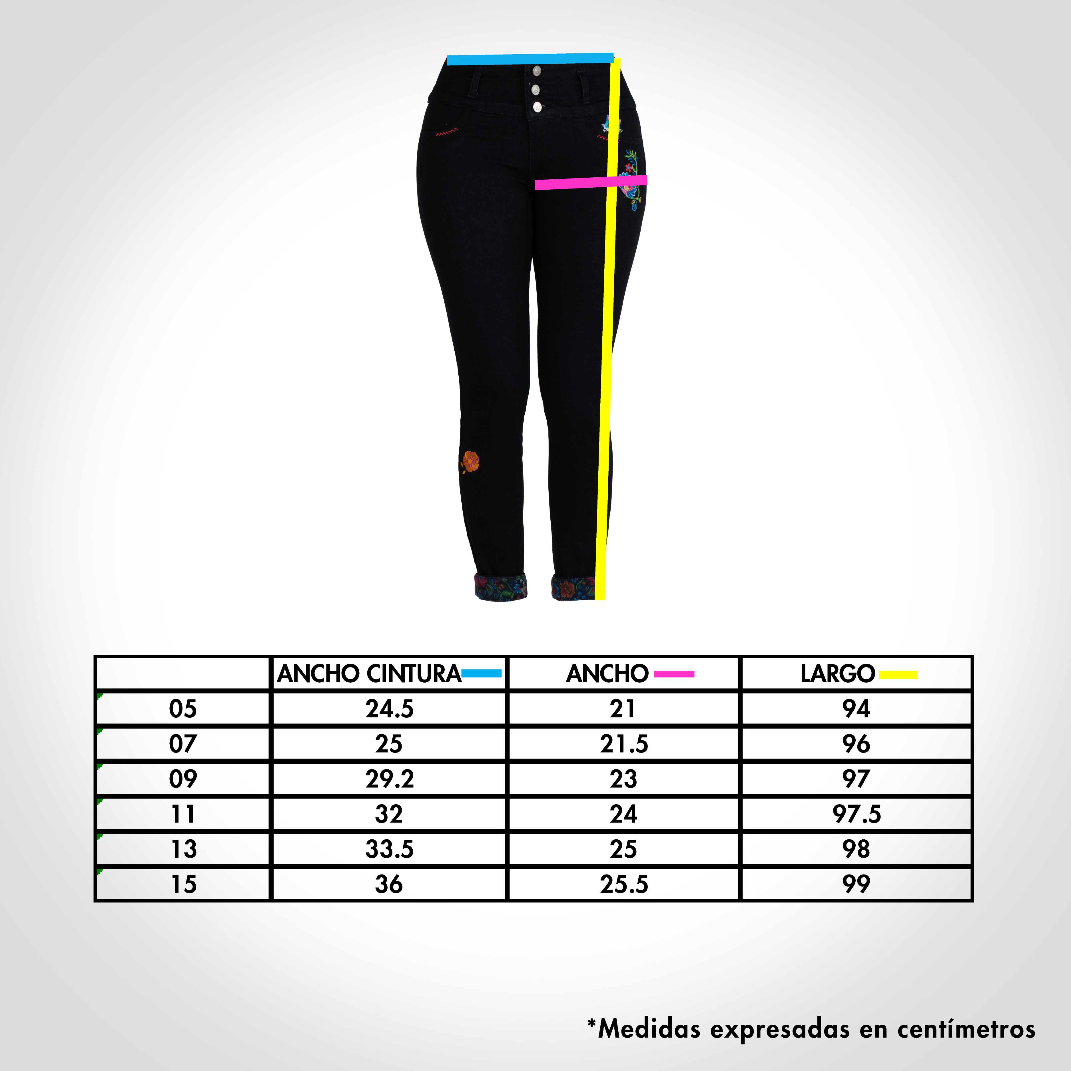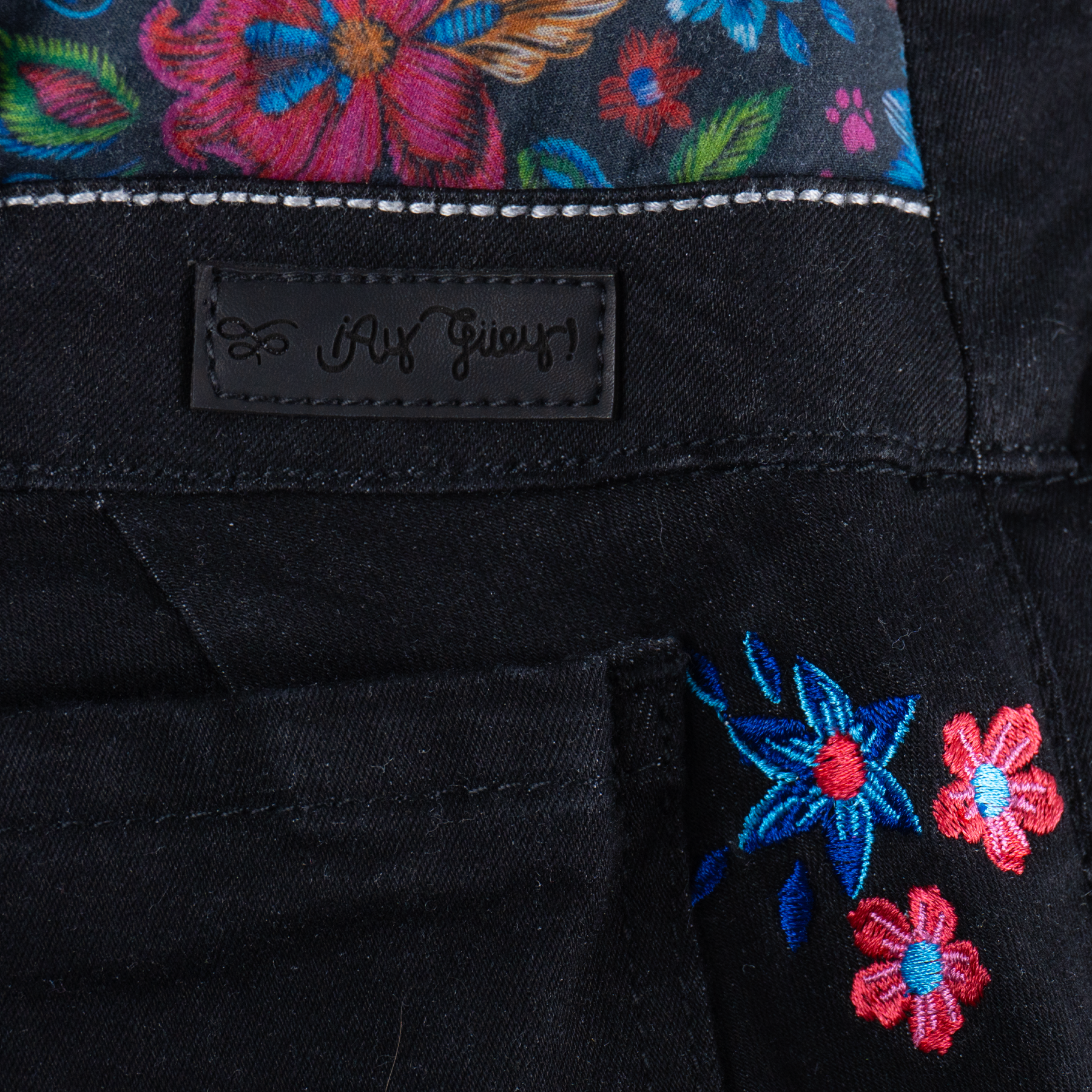 Pantalón de dama, nuestro clásico QQ con detalles de bordado y sublimado con motivos florales en la parte posterior que enmarca la cintura y el QQ ...