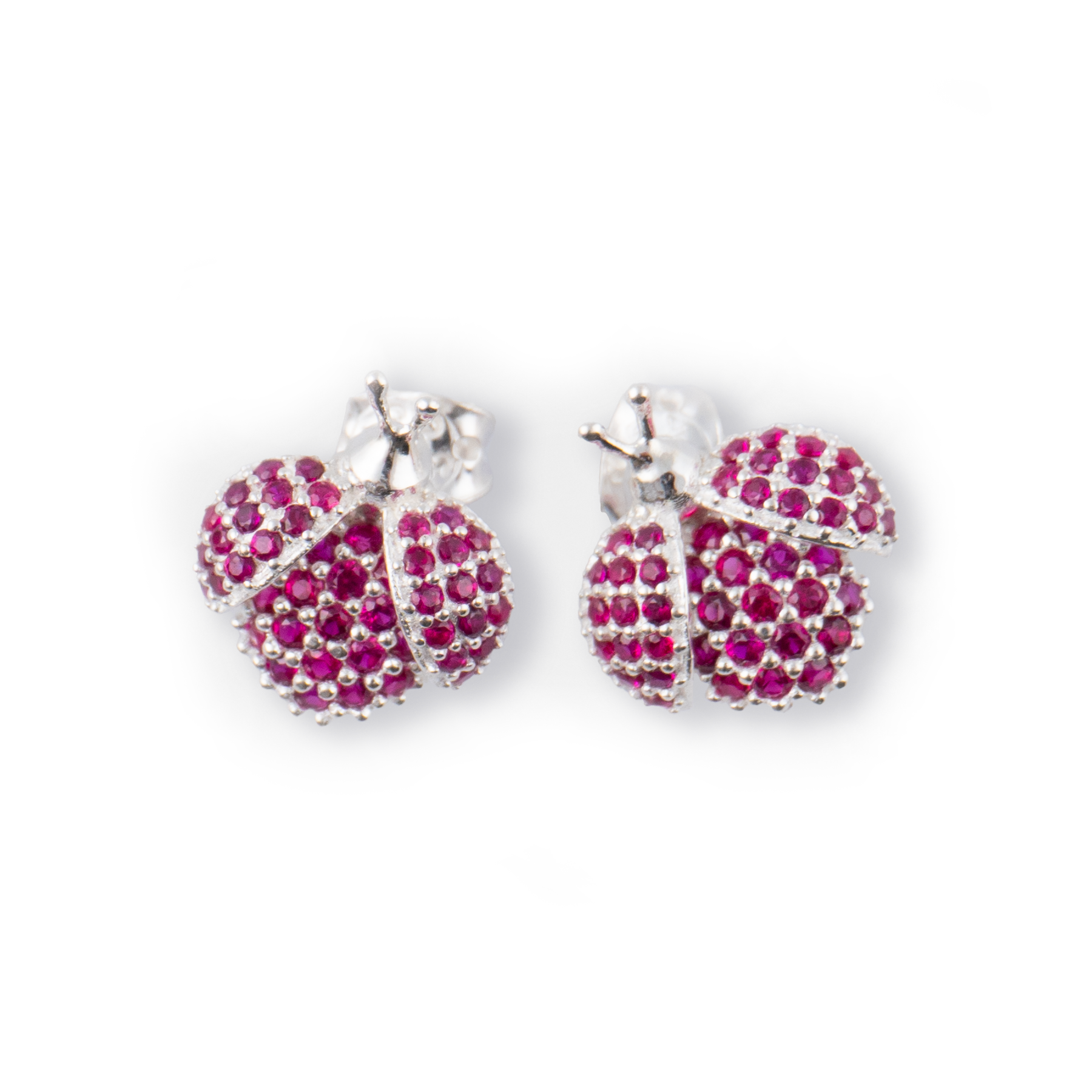Con incrustaciones de brillantes tonalidad rosa, hechos de plata ley 925, estas piezas son una combinación perfecta de elegancia y durabilidad. El cierre asegura que se mantengan seguros en tus orejas todo el día.