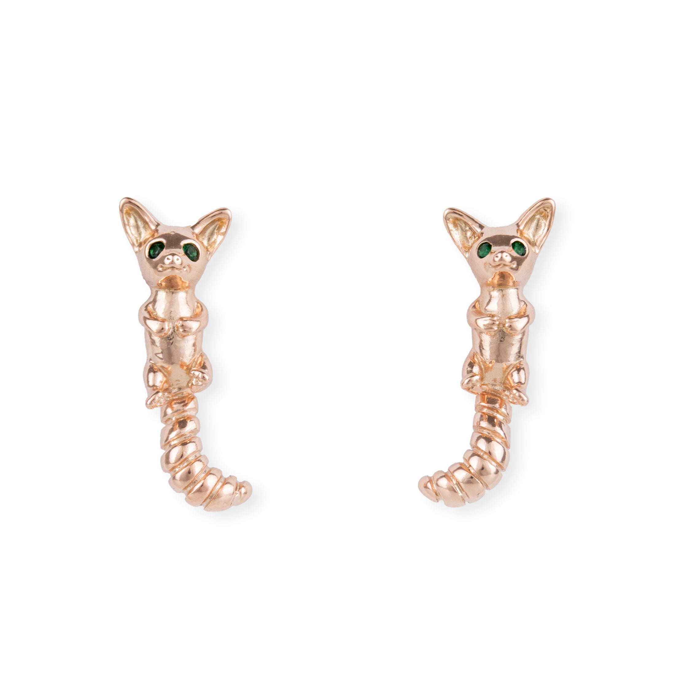 Hermosos pendientes con pasador en forma de "Cacomixtle", un curioso animalito endémico de México.