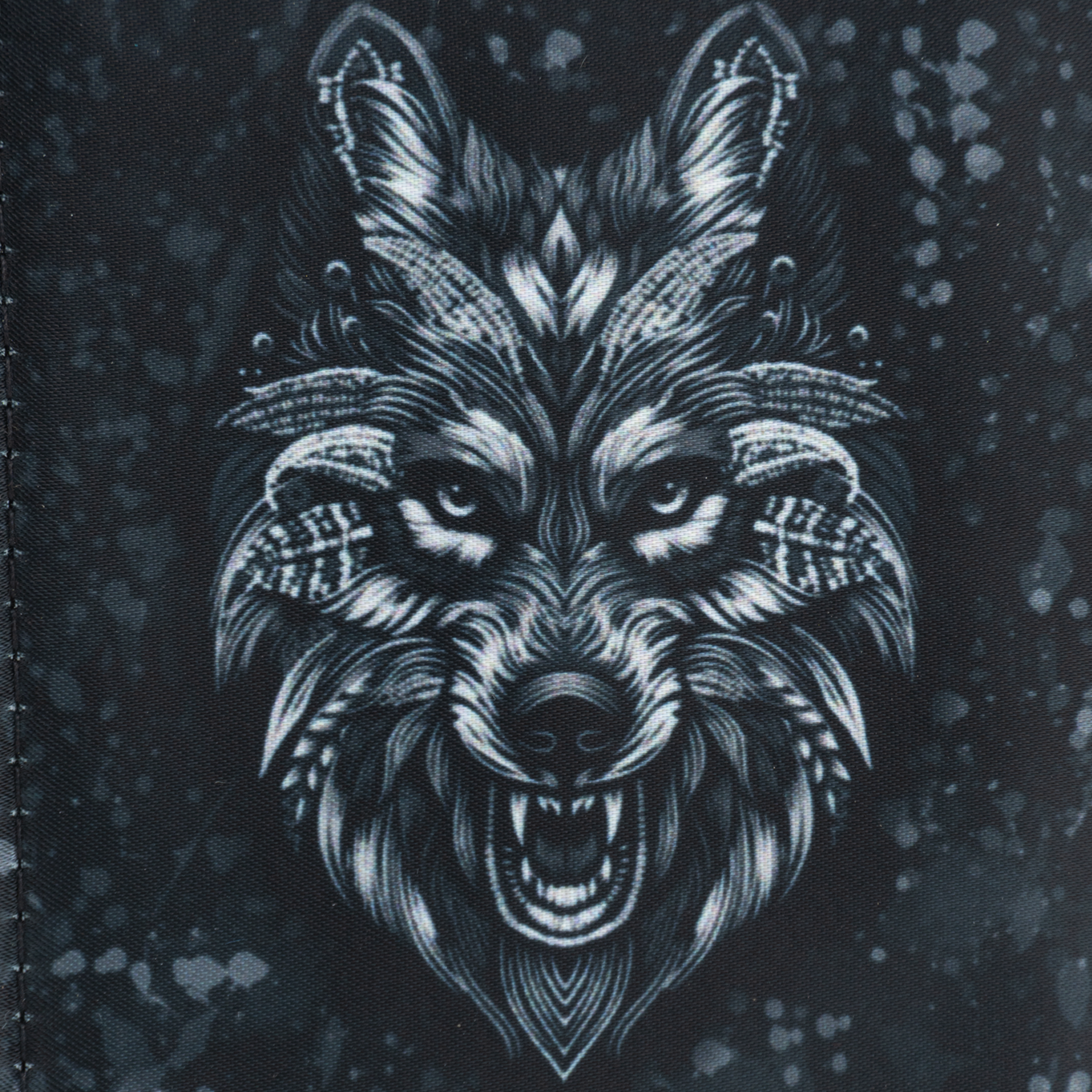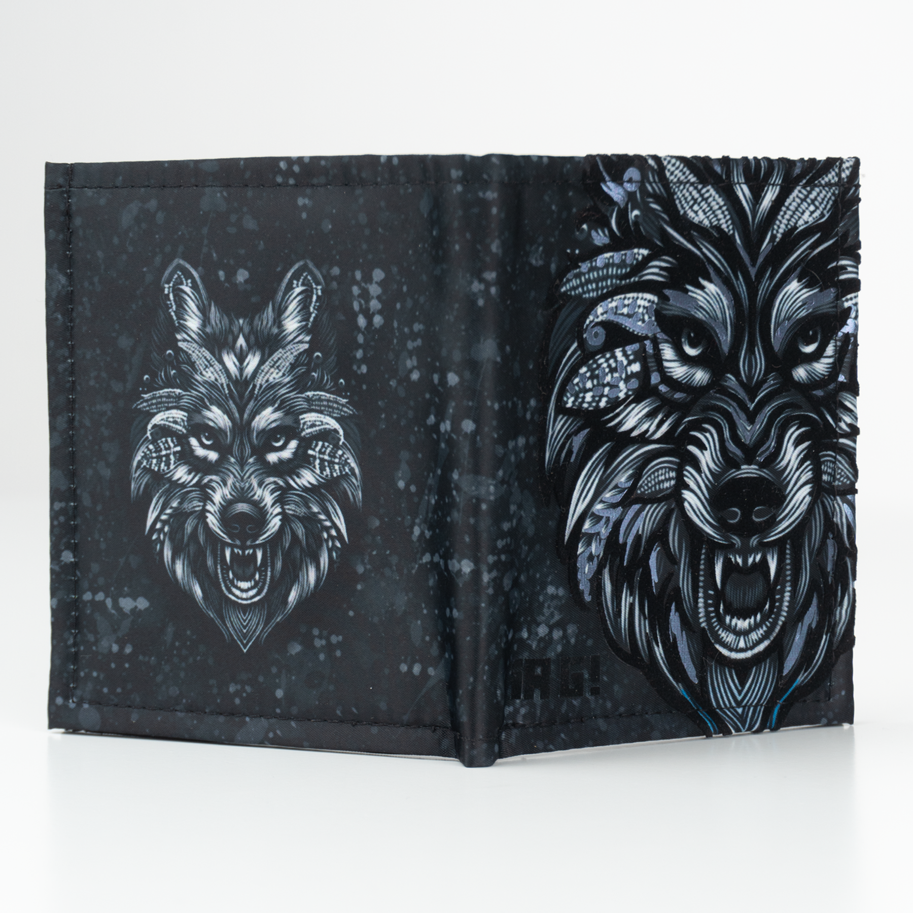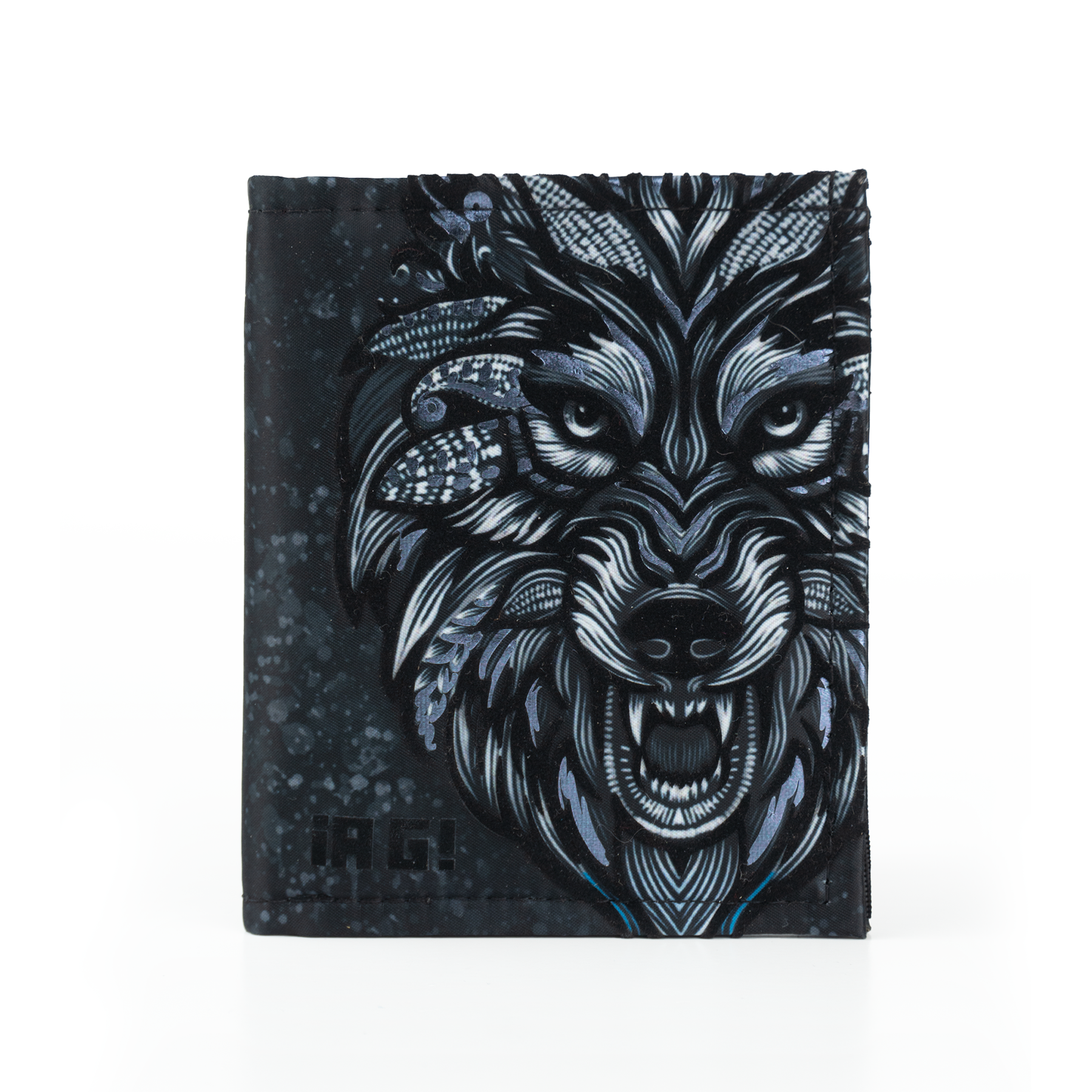 Billetera full print con aplicaciones de vinil metalizado y flock.
