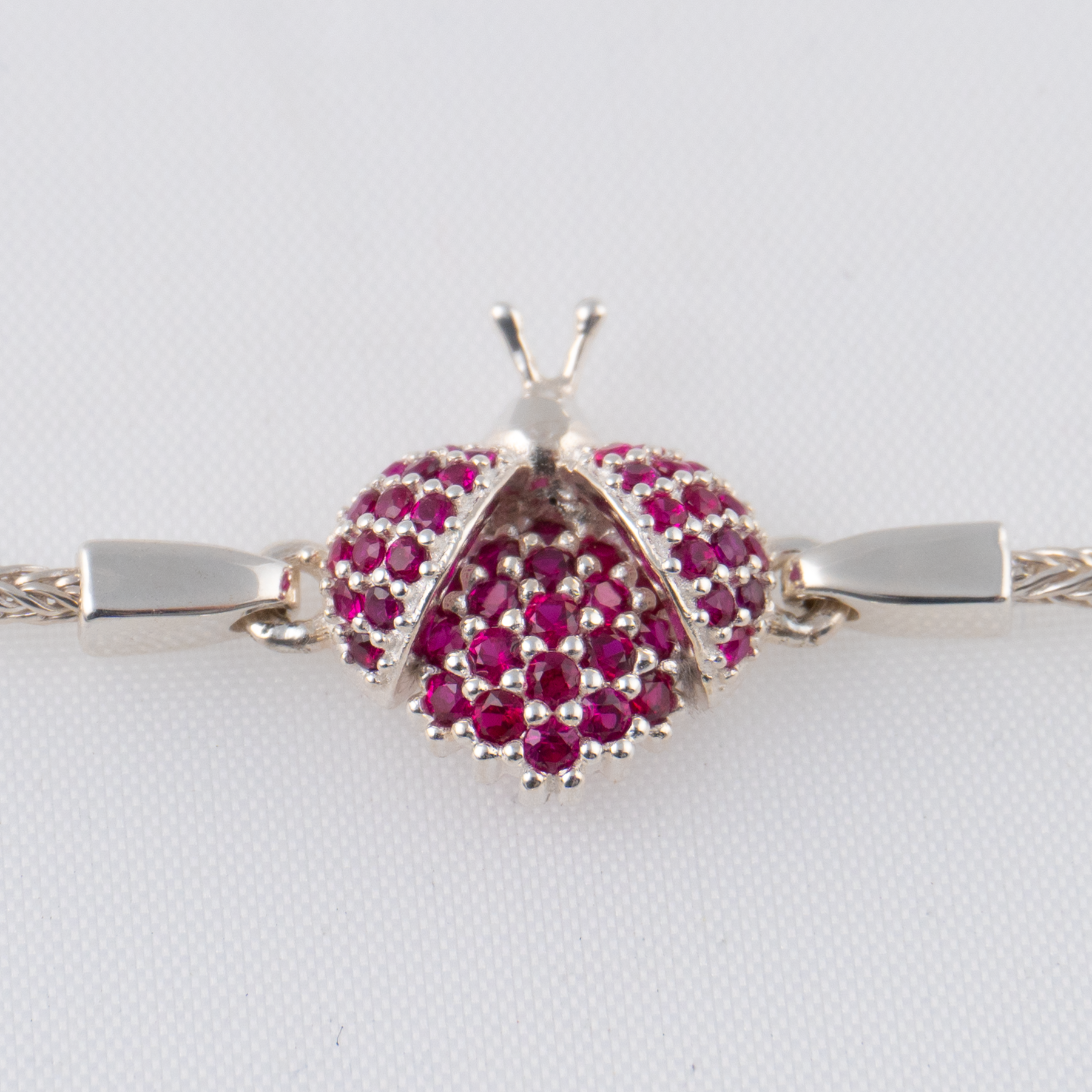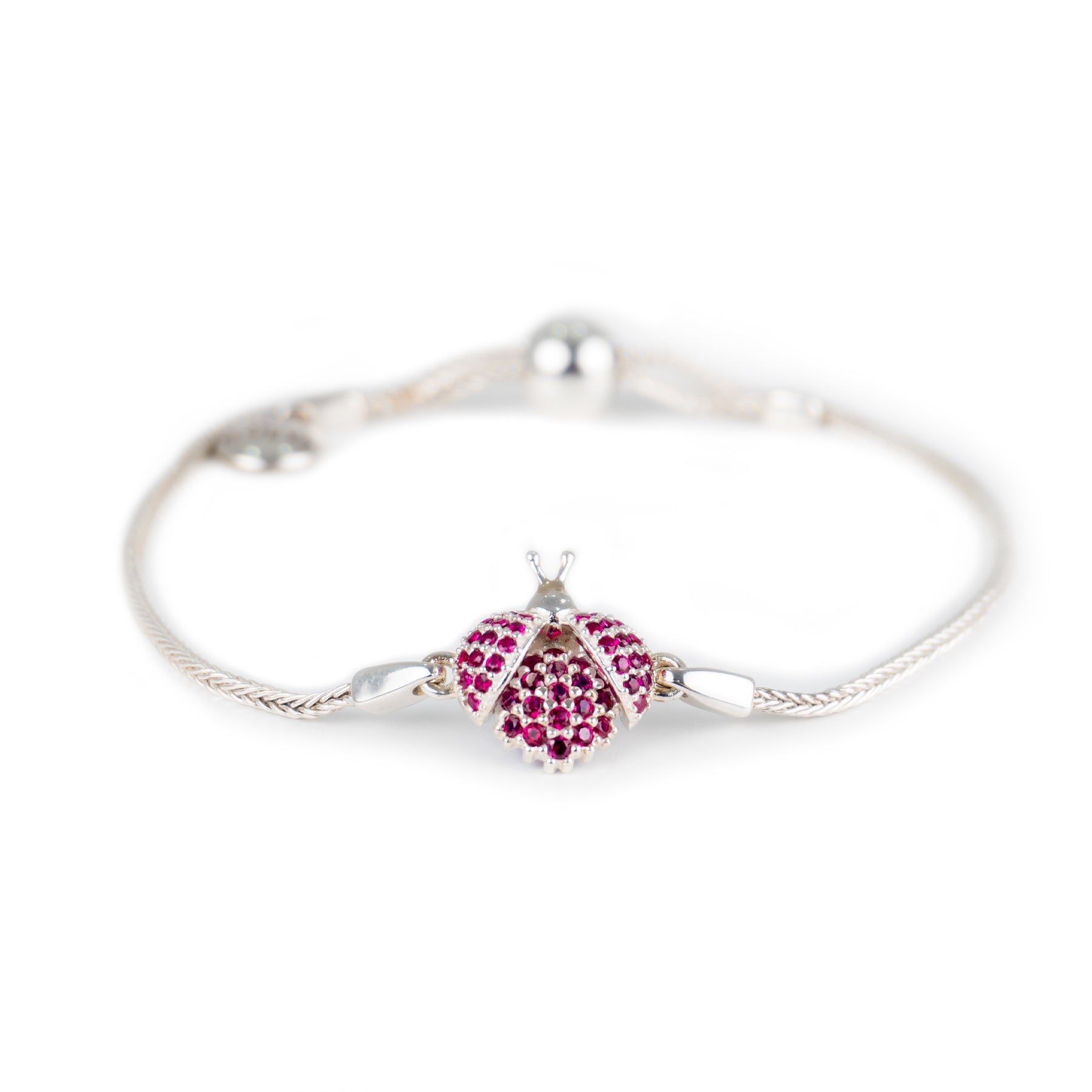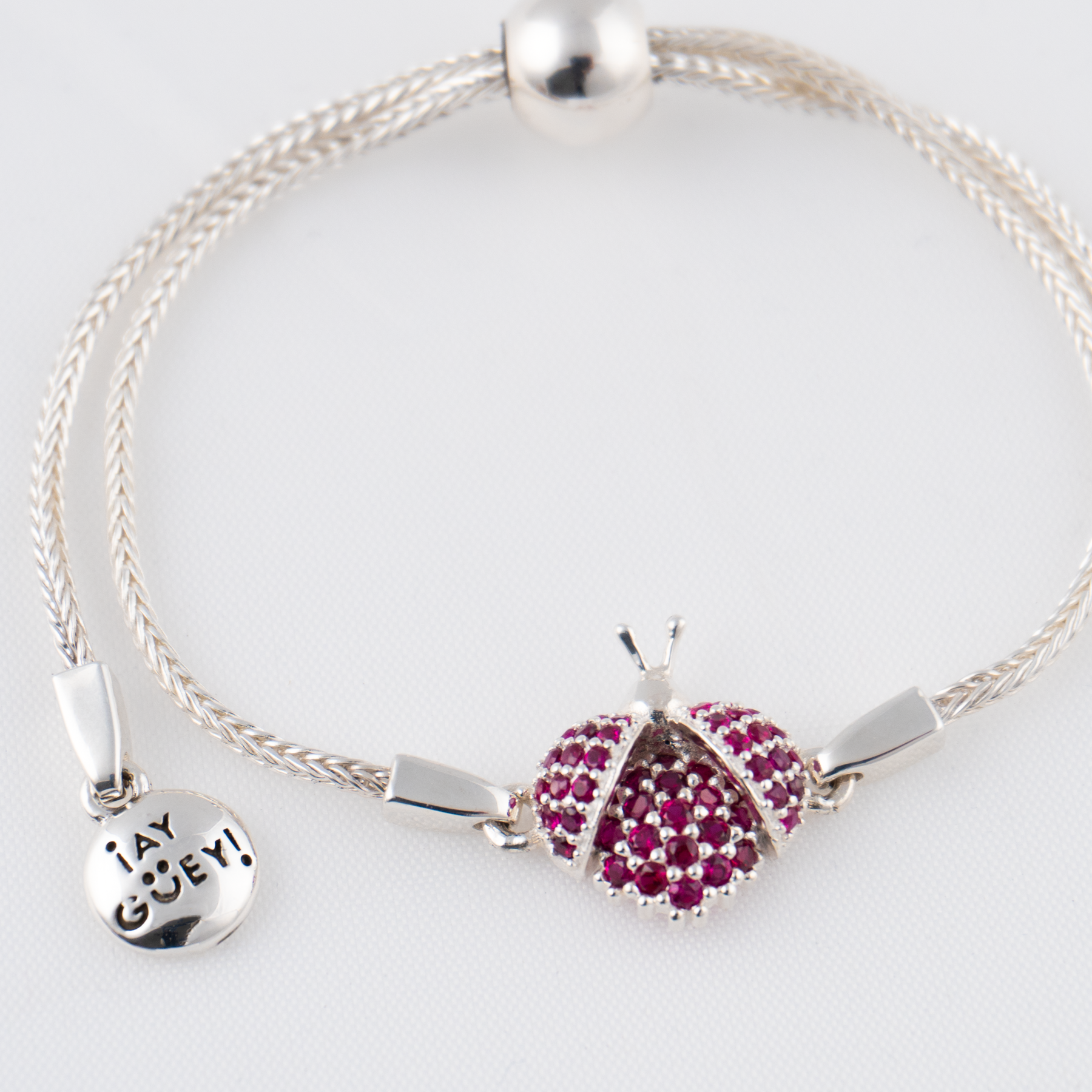 Hermosa pulsera de plata .925 con dije en forma de Catarina. Cuenta con un mecanismo para ajustarla a la muñeca.