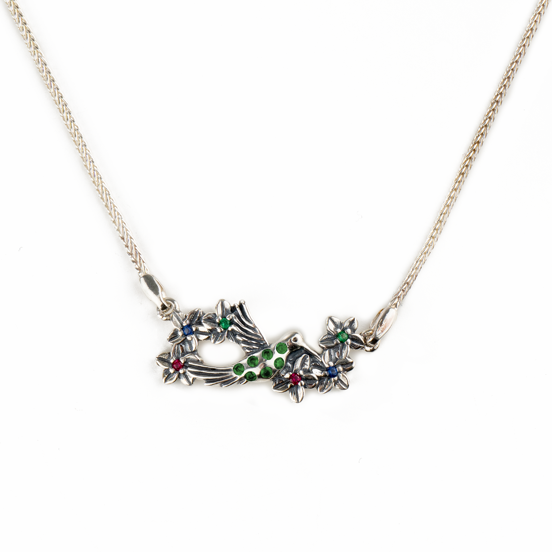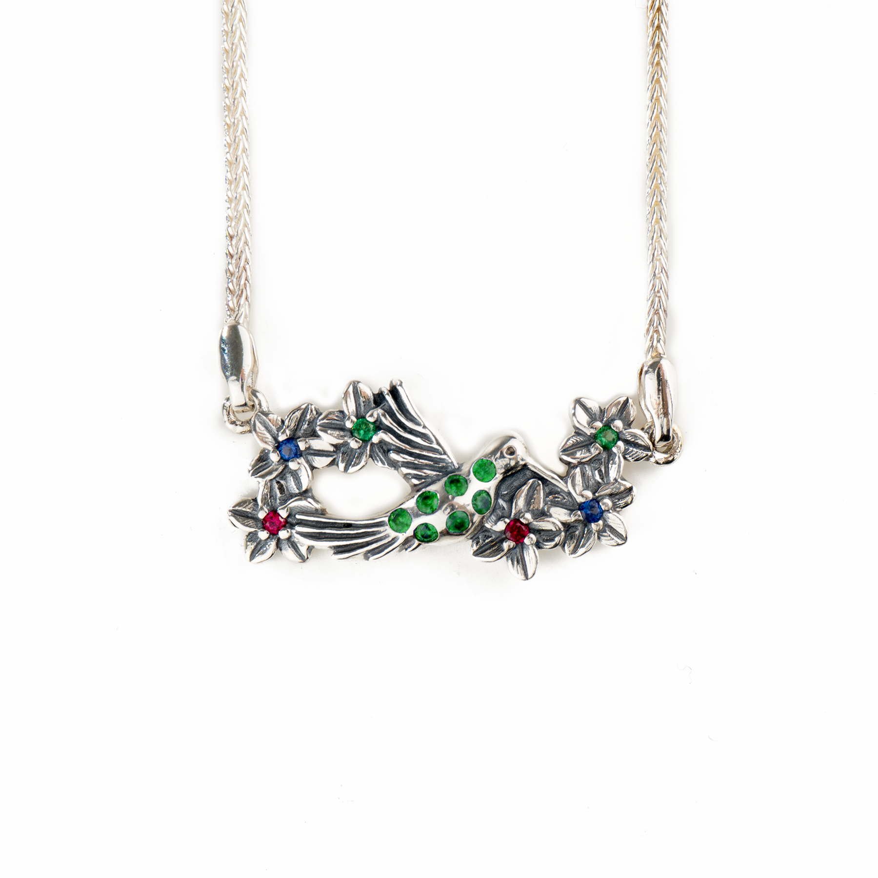 Con incrustaciones de brillantes multicolor, hecho de plata ley 925, esta pieza es una combinación perfecta de elegancia y durabilidad. El cierre asegura que se mantenga seguro en tu cuello todo el día.