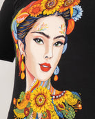 Descubre la belleza y el color de nuestra blusa "Jija del Maíz". Esta prenda, con su elegante corte de hombro descubierto, está confeccionada en un tejido suave y cómodo de color negro que sirve como el lienzo perfecto para un diseño vibrante y lleno de vida.