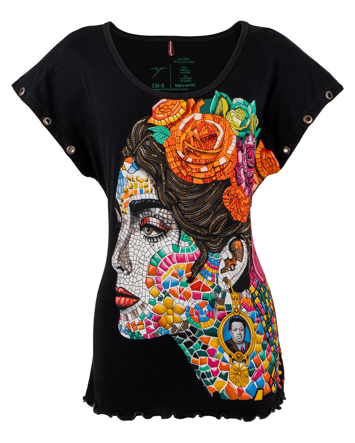 Blusón estampado con aros metálicos en mangas - Modelo PALOMITA