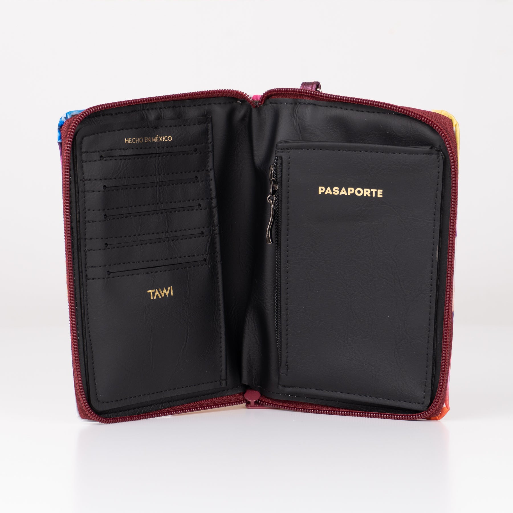 El porta pasaporte es el accesorio perfecto para viajeros frecuentes. Con su correa ajustable y compartimientos para guardar tus credenciales, mantendrás tus documentos de viaje organizados y a mano en todo momento.