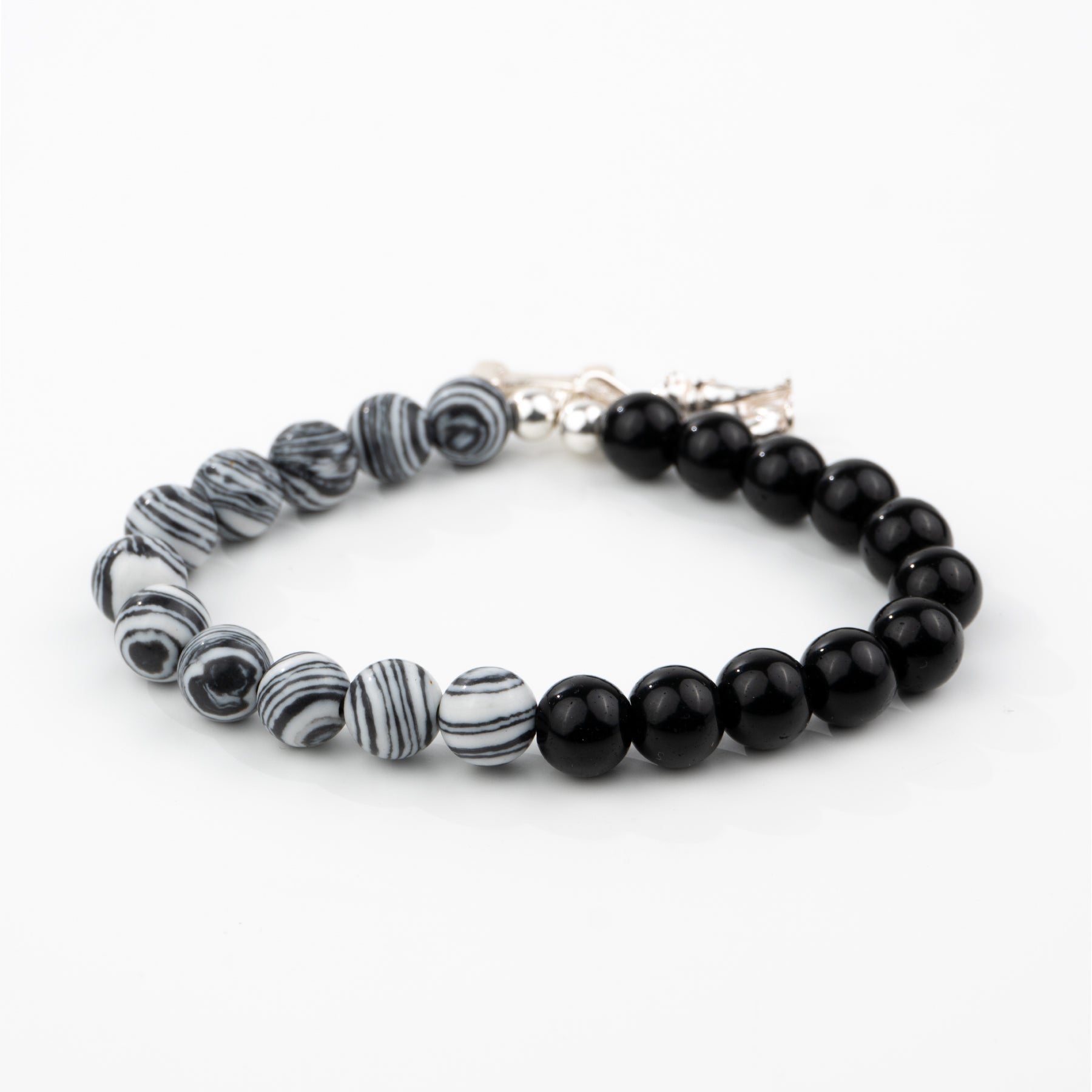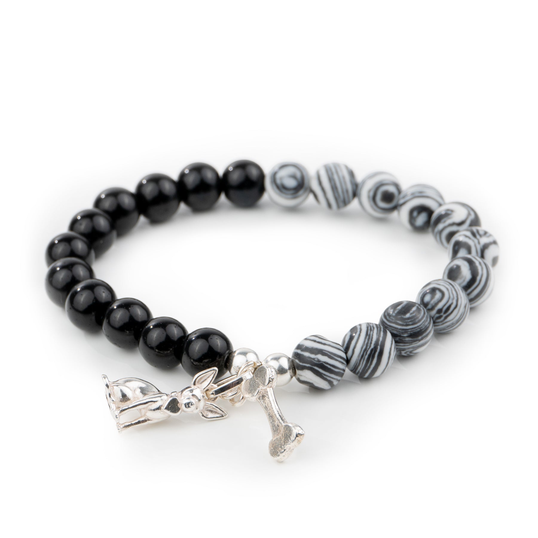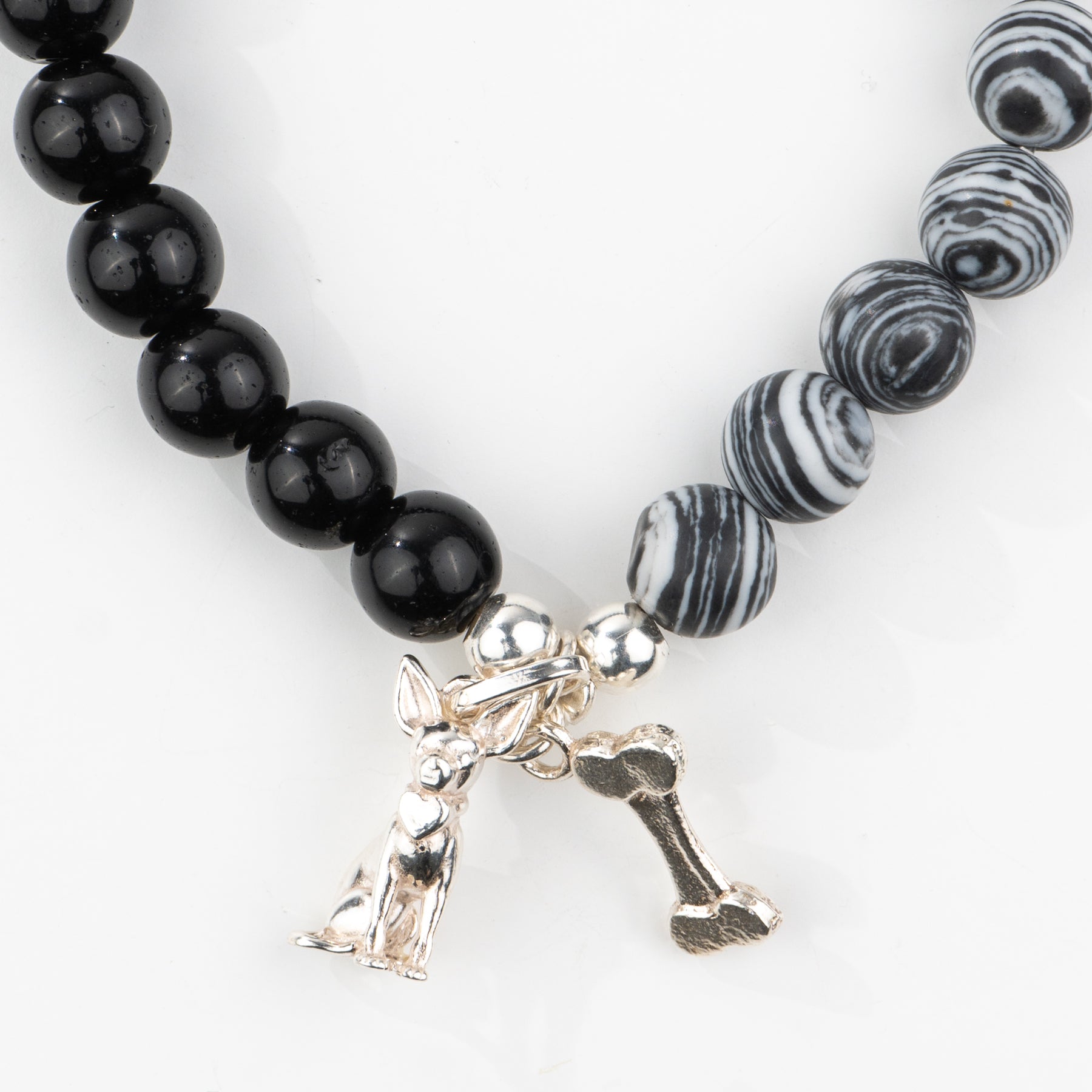 Pulsera Onix con dije de plata en forma de perrito Chihuahua