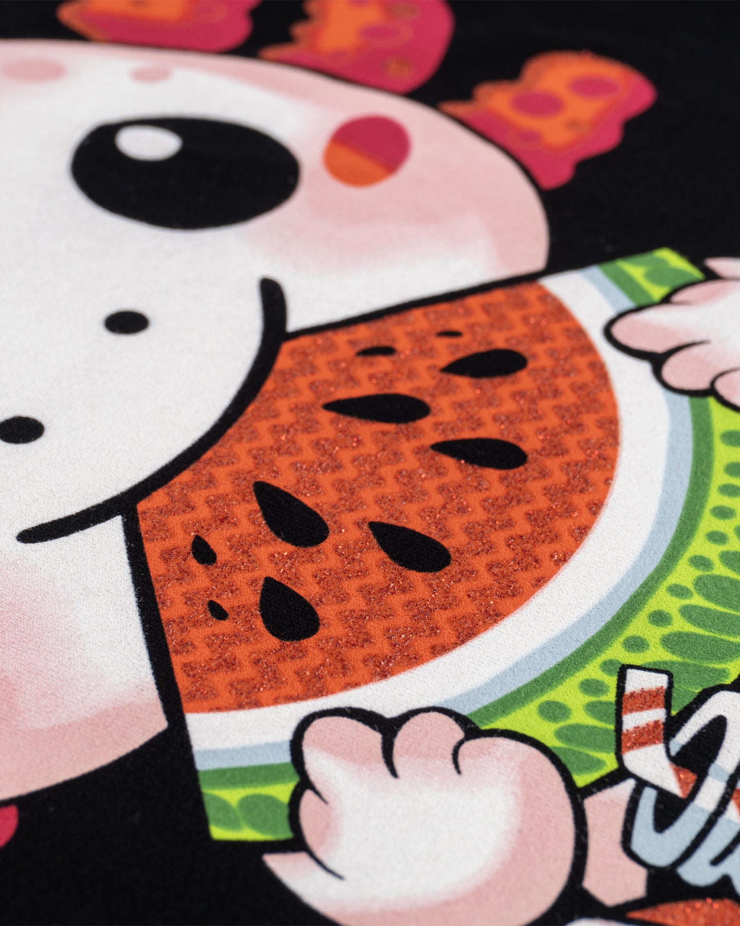 Añade un toque de encanto único a tu guardarropa con esta playera que celebra la ternura del axolote. Esta pieza fresca y adorable es el must-have perfecto para mostrar el lado más dulce y juguetón de la vida y del diseño mexicano.