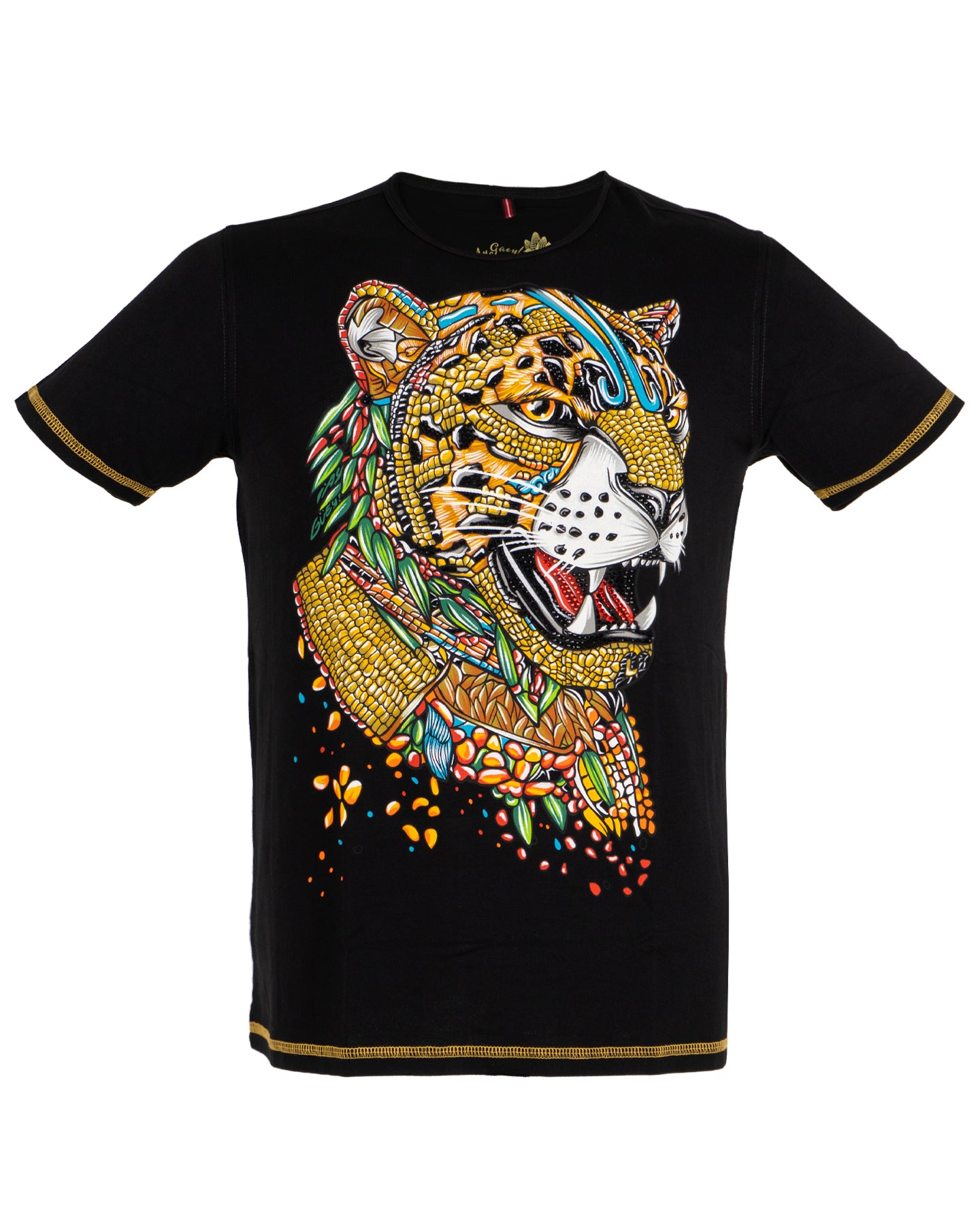 Playera estampada con aplicación de pedrería para hombre - Modelo TEJUINO