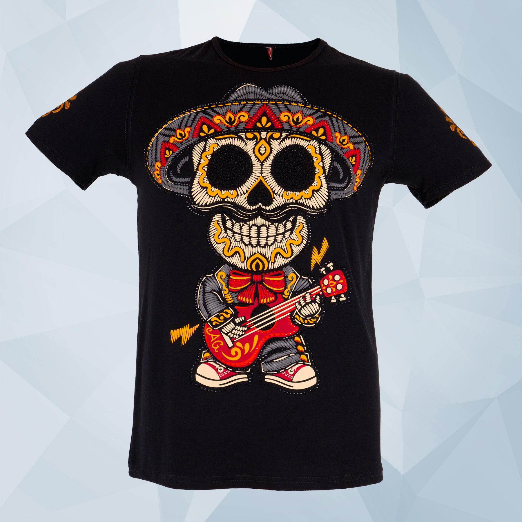 Playera estampada con aplicación de pedrería para hombre - Modelo CHAPATIN