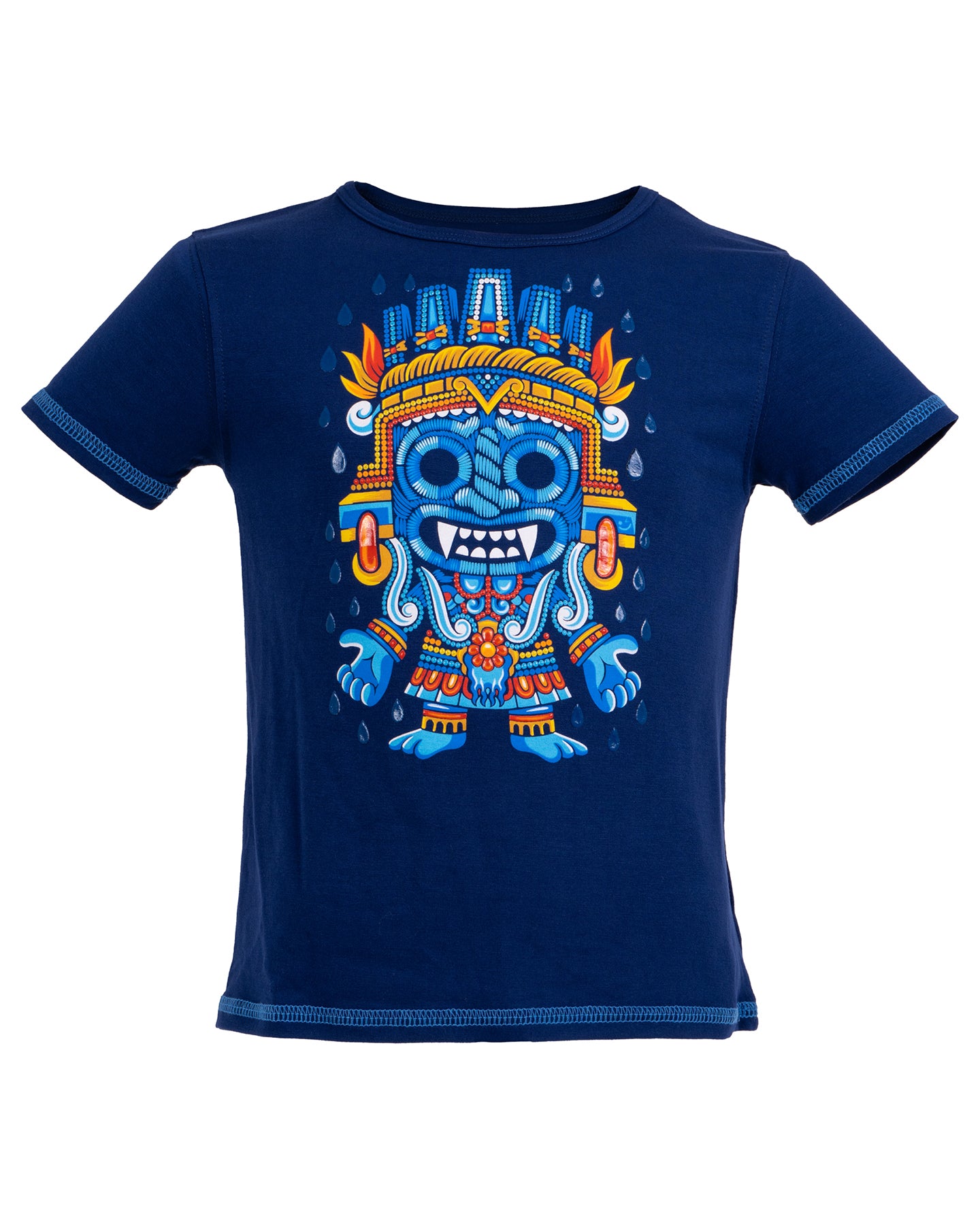 ¡Luce como lluvia con esta playera de niño inspirada en Tláloc de la cultura azteca! La aplicación de gel simula agua, añadiendo un toque divertido a tu estilo. ¡Prepárate para disfrutar de la lluvia sin mojarte!