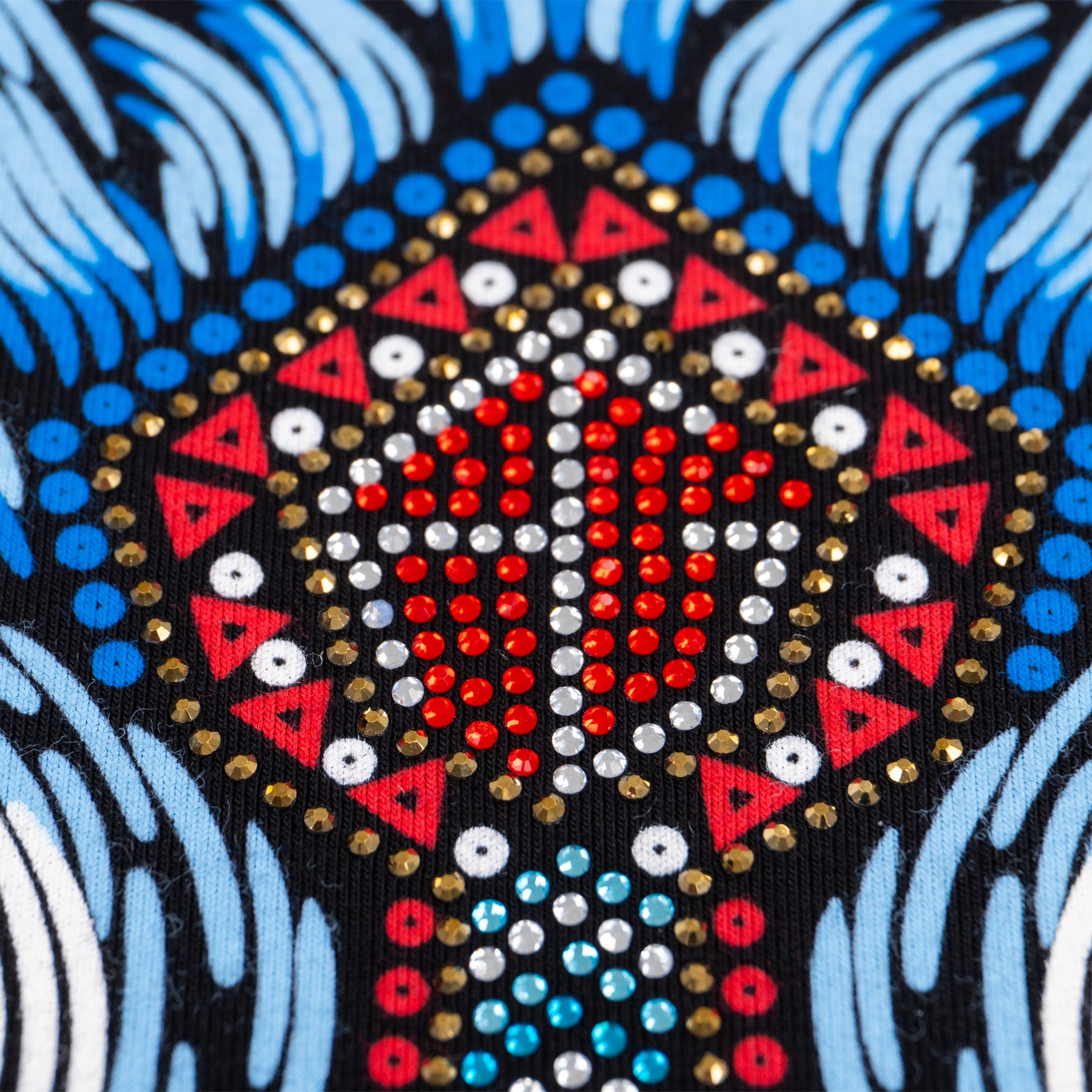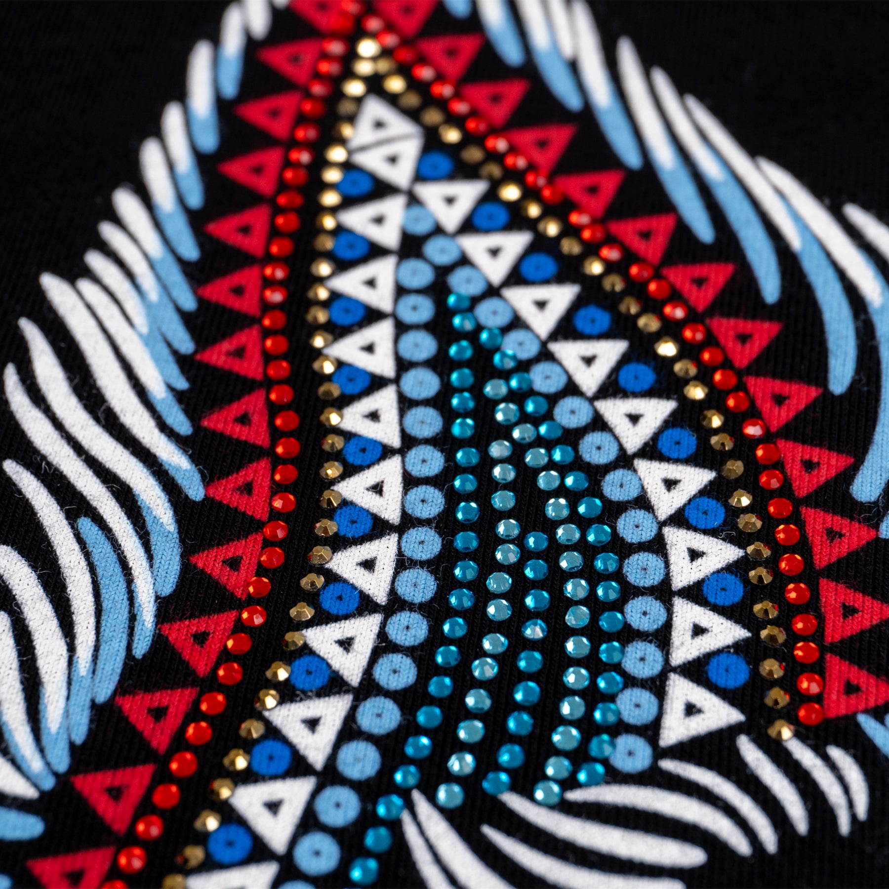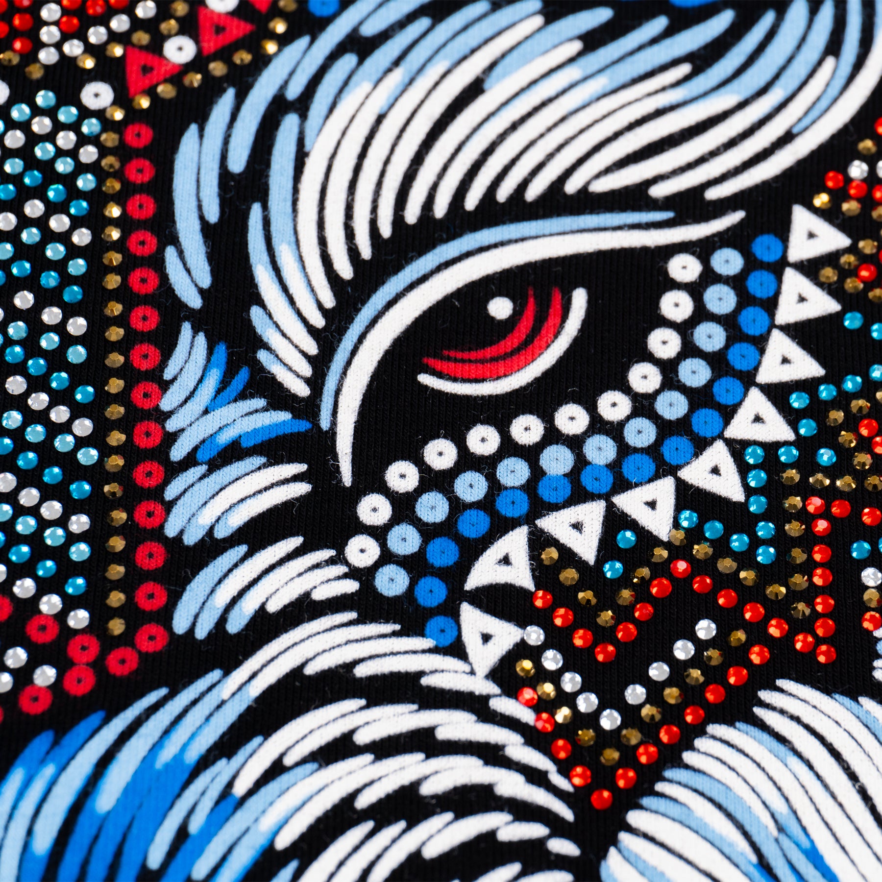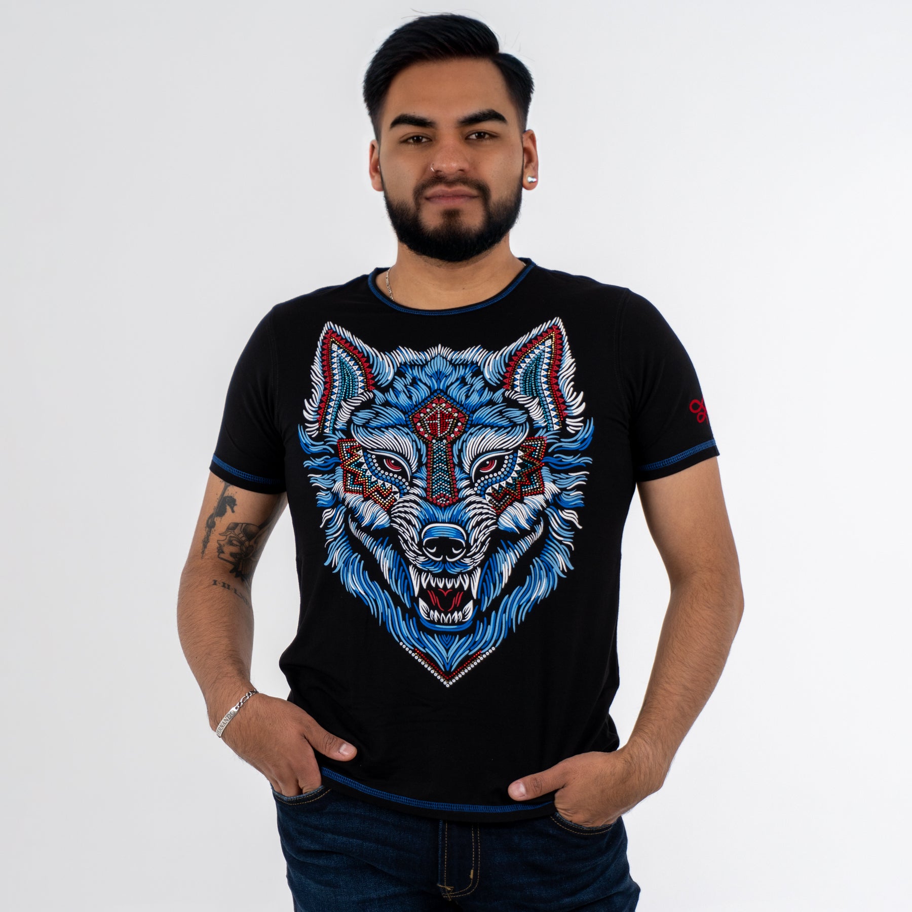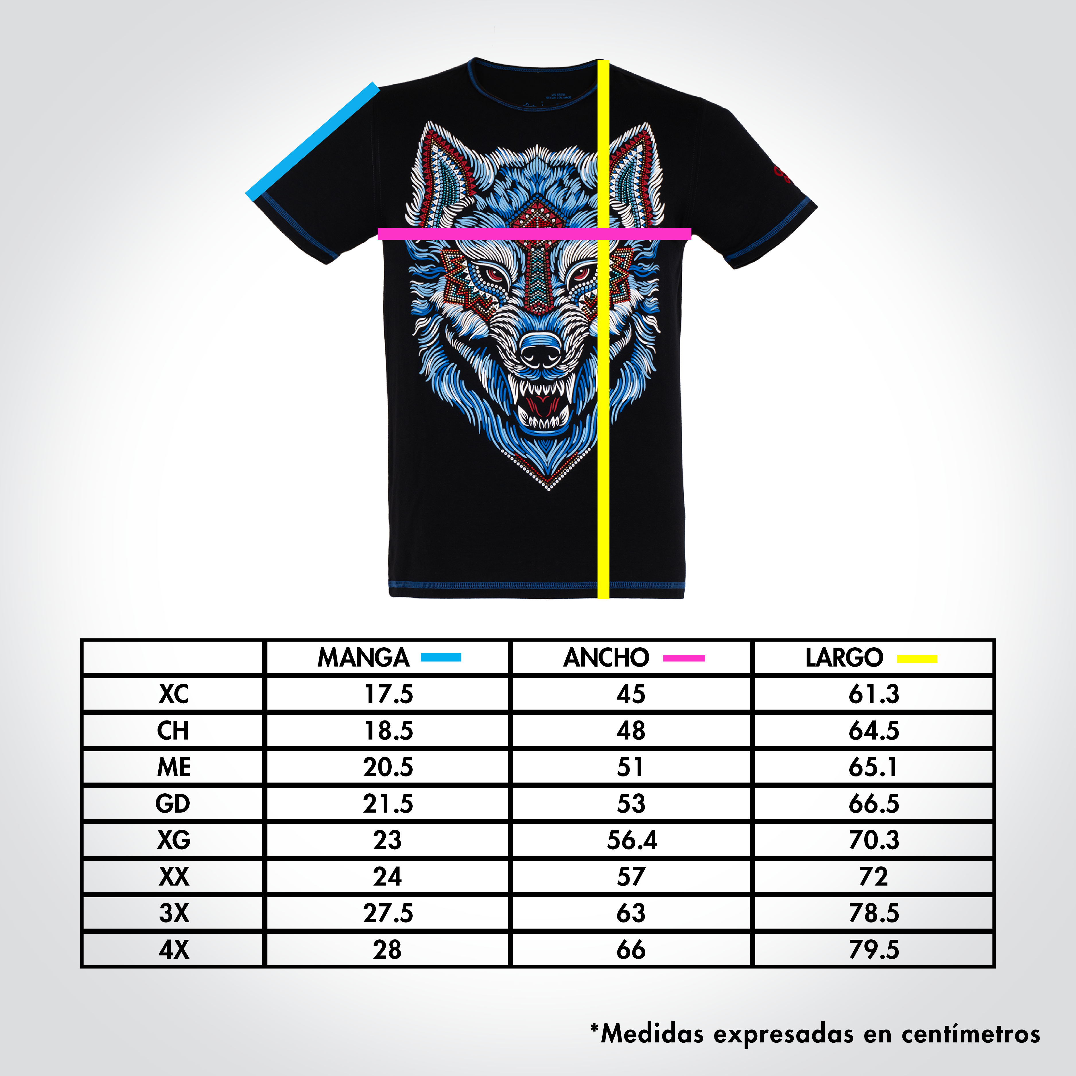 El majestuoso lobo mexicano representa: fuerza y valentía, ya que es un cazador nato. Esta especie endémica mexicana es un símbolo de conexión espiritual y libertad. Esta playera esta inspirada en los vibrantes diseños de la cultura huichol: cada detalle está refleja en los patrones y colores tradicionales, conocidos por su belleza y simbolismo. Esta prenda lleva consigo la esencia de una tradición milenaria y la figura de poder de nuestro lobo mexicano.