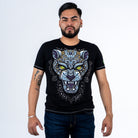 Playera estampada para hombre con aplicación de pedrería y estoperol - Modelo FUERZA GUERRERA