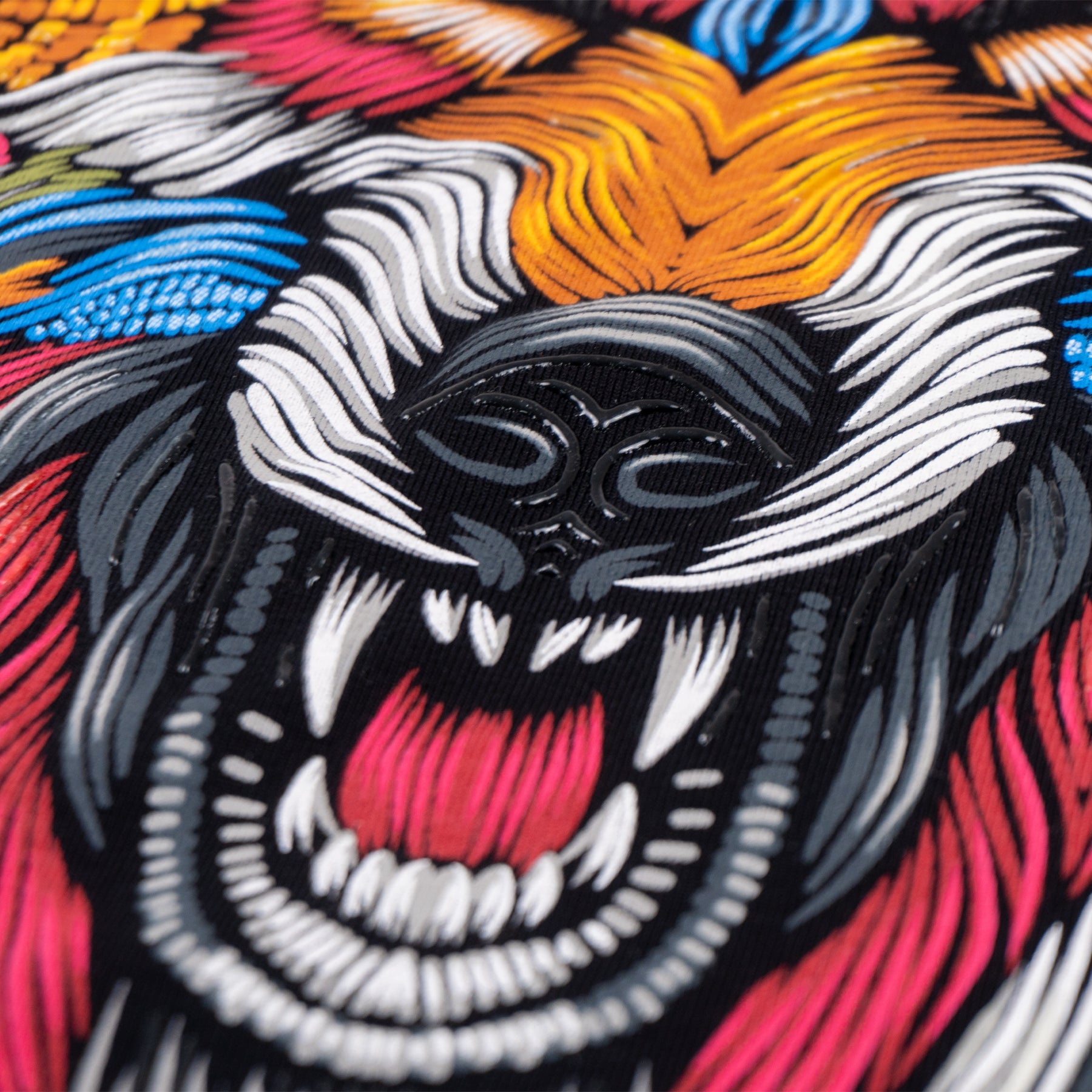 Este diseño es una fusión entre uno de los animales más poderosos de México y el emblemático maíz. Su pelaje está compuesto por tonos terrosos que evocan los paisajes áridos y fértiles de México, desde los ocres de la tierra hasta los dorados del atardecer, así como mazorcas que emergen fantásticamente a su alrededor.