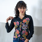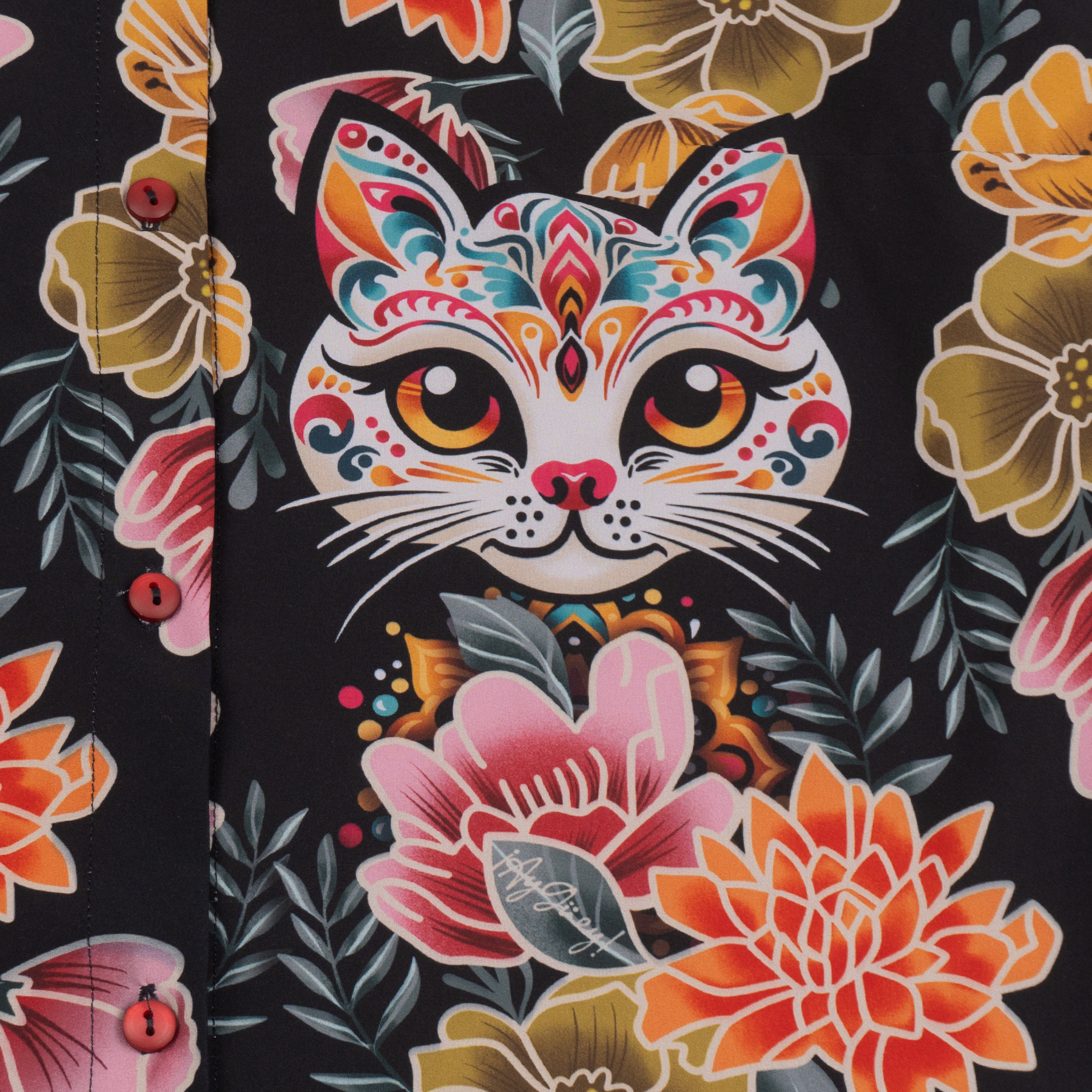 Esta prenda combina una versión moderna de las clásicas flores mexicanas, con un tierno personaje oculto entre ellas. Esta blusa forma parte de una propuesta nueva, más contemporánea y actual, ¡ah! y también fresca.