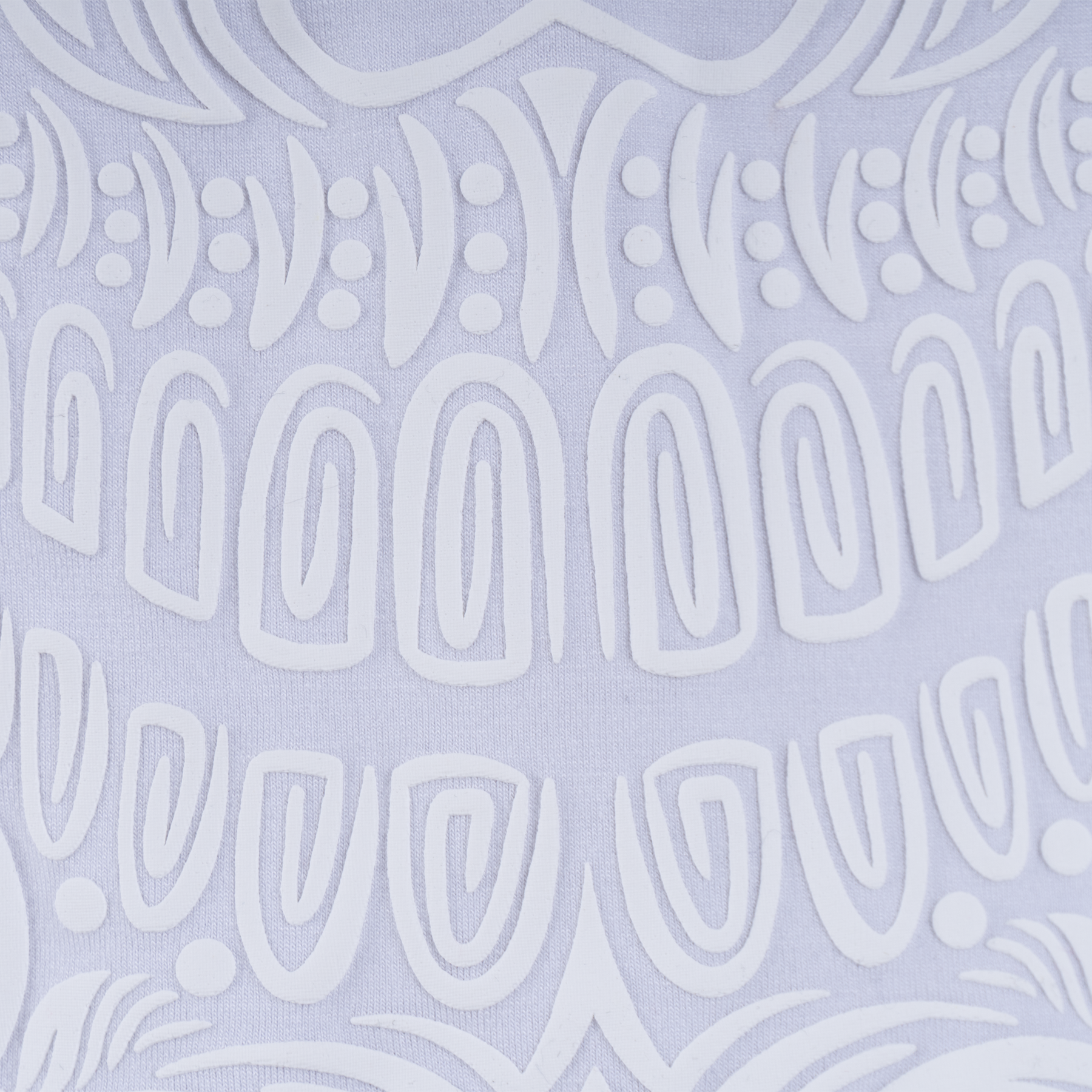 Es una playera blanca de manga corta con aplicación en PUFF blanco. Ideal lugares donde hace calor y su característica monocromática la hace muy combinable. Esta inspirada en el vuelo del dios Quetzalcóatl que subió al volcán de Orizaba y su cuerpo fue consumido por el fuego mientras que su alma adoptó la forma de quetzal. Después emprendió el vuelo como una estrella brillante.