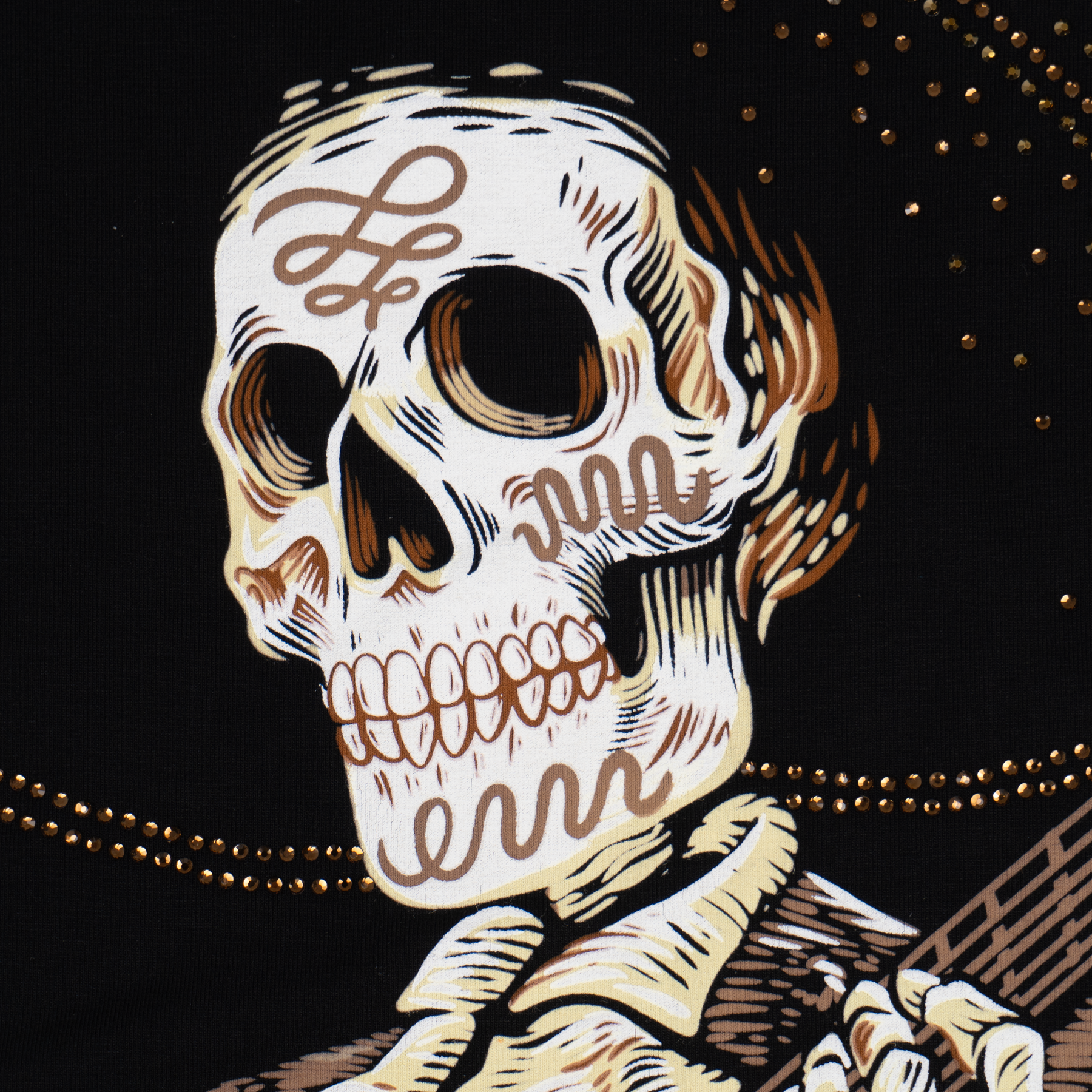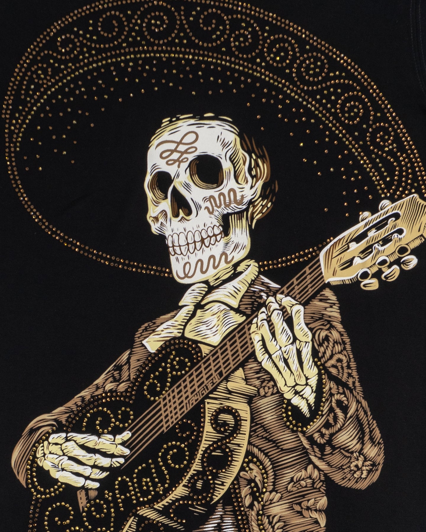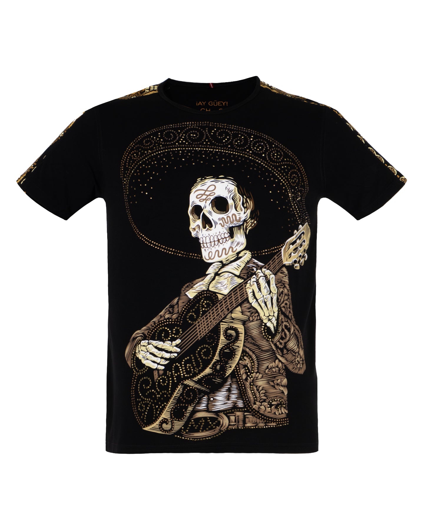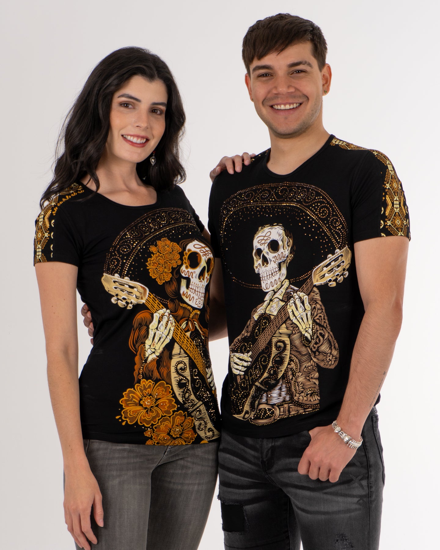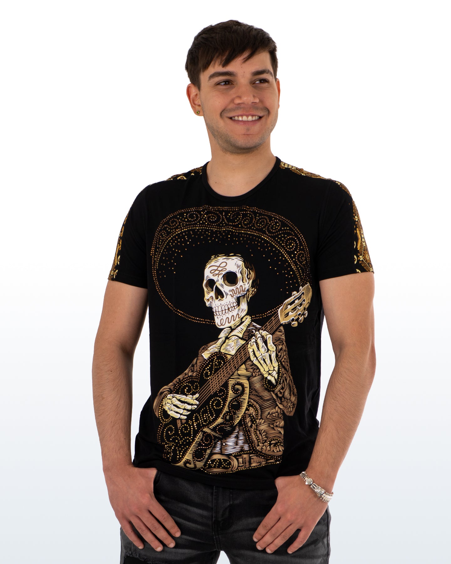 Playera estampada con aplicaciones de estoperol dorado - Modelo EL REY