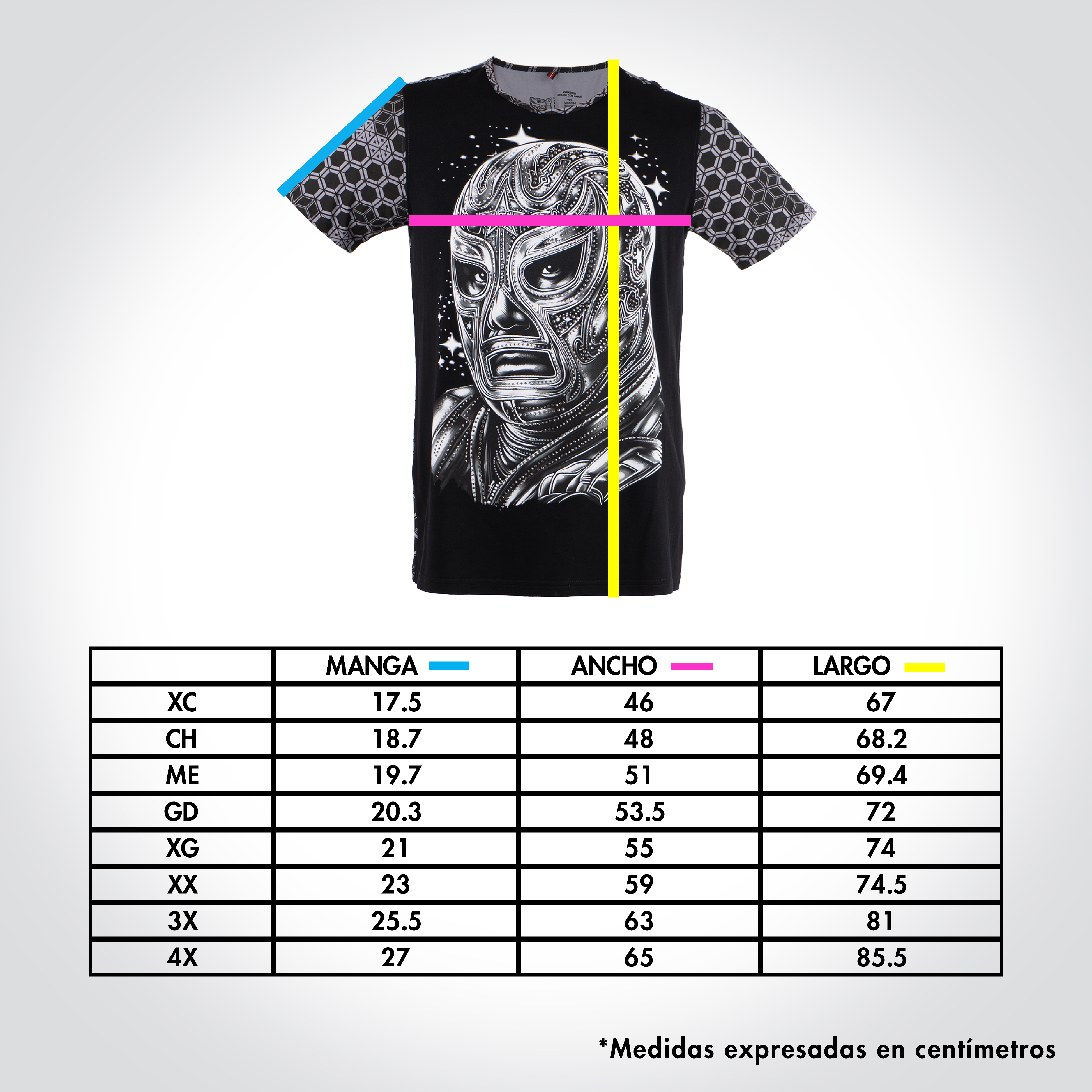 ¡La playera de caballero Espacial te llevará al espacio y te hará sentir como un verdadero luchador! Inspirada en películas de luchadores, su manga y espalda estampadas resaltan tu estilo y pasión por la lucha. ¡Hazte con ella y siente la emoción en tu piel!