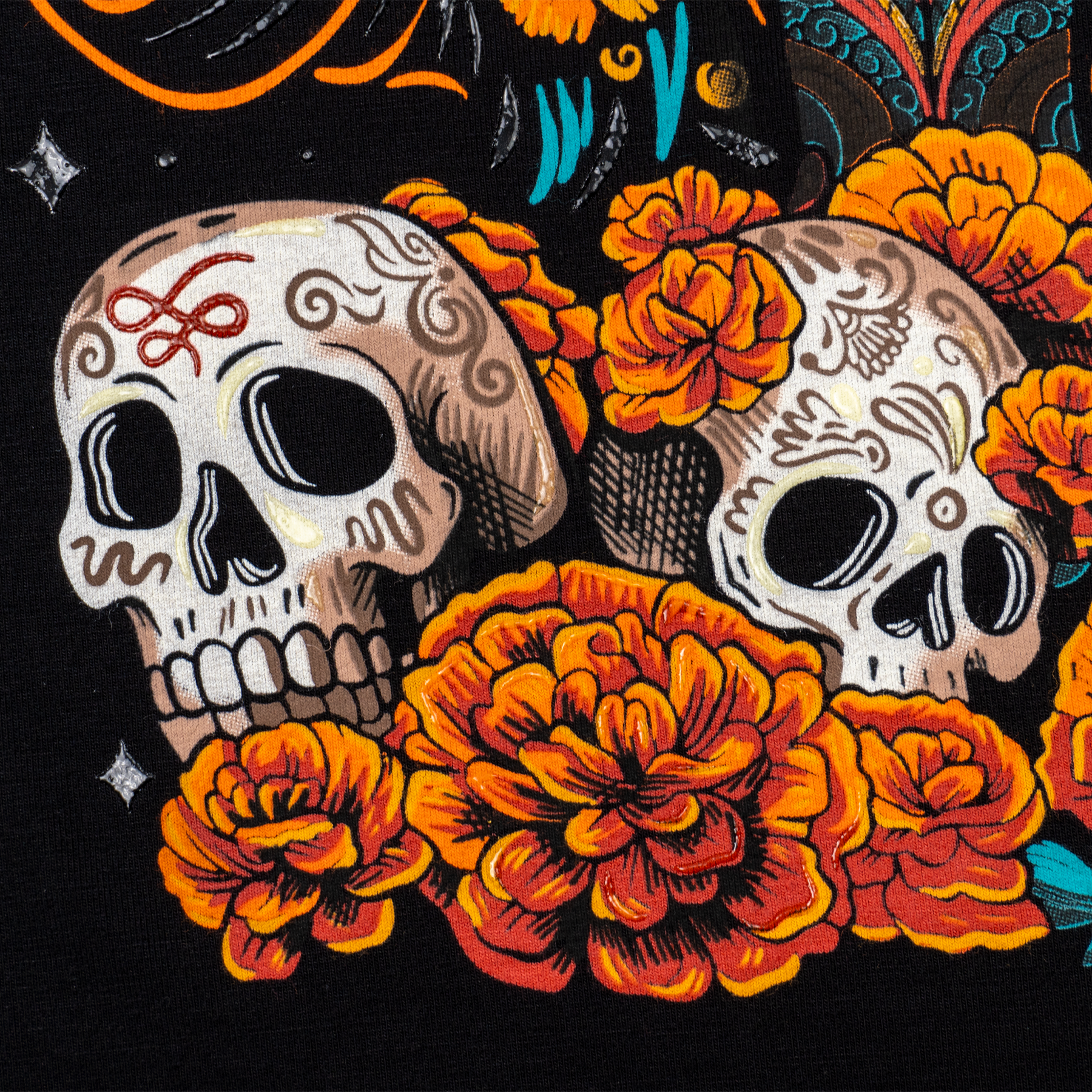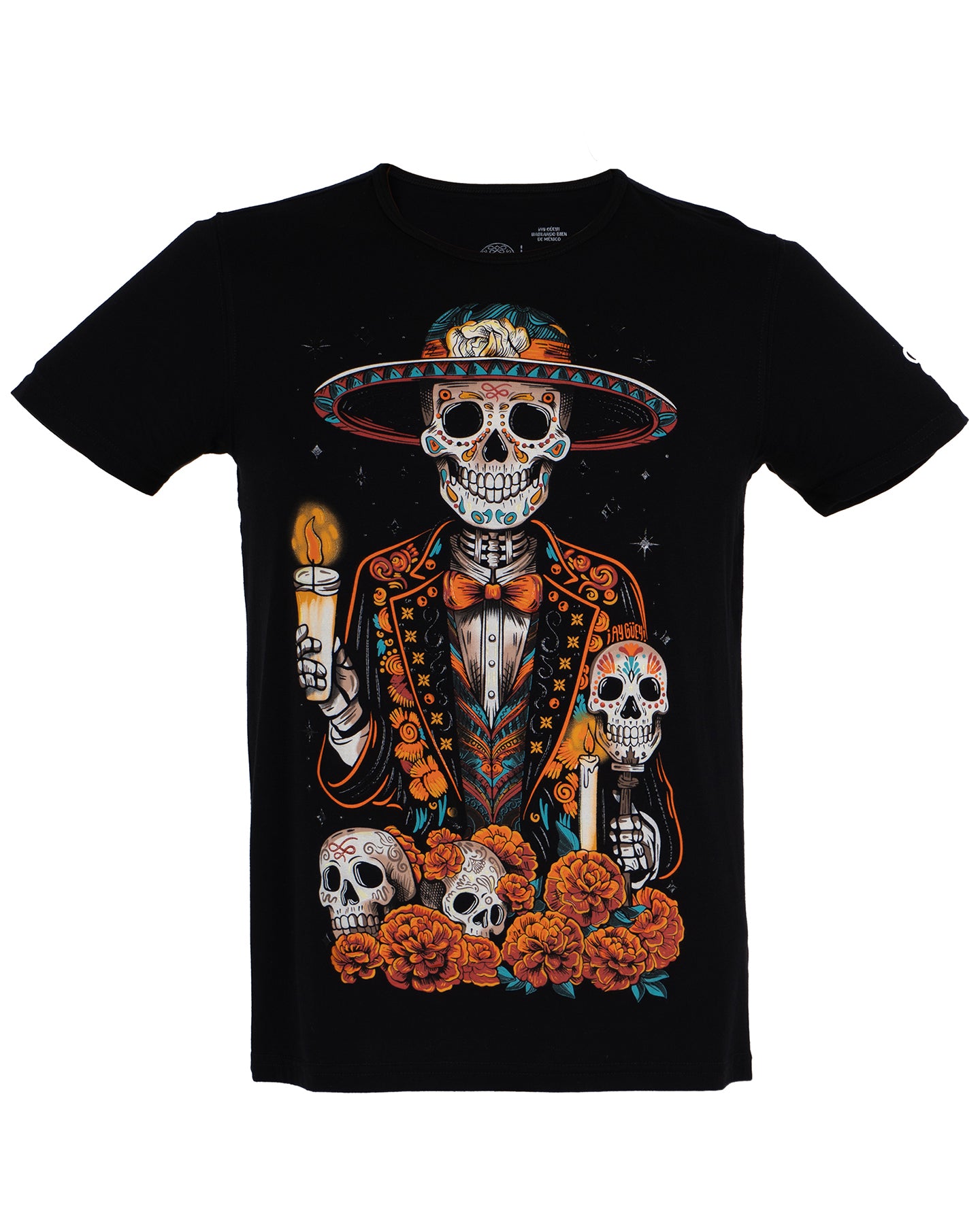 Me Acuerdo, diseño inspirado en día de muertos, refleja el recuerdo que tenemos por quienes ya no están, con el elegante catrín y las flores de cempasúchil. Mantén vivo el legado de tus seres queridos con este hermoso diseño.