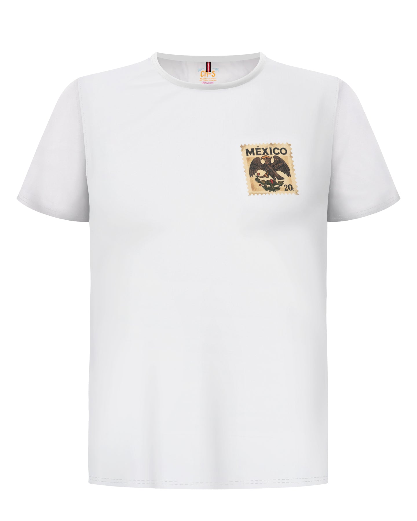 La playera MIS TIMBRES es una declaración de estilo minimalista que rinde homenaje a la identidad mexicana. Sobre una camiseta blanca de corte clásico, destaca un estampado tipo sello postal vintage ubicado en el pecho. El diseño imita la apariencia desgastada de un timbre antiguo, con la leyenda "México" y el clásico escudo del águila sobre el nopal, creando un efecto gráfico nostálgico y elegante. Esta es la pieza perfecta para llevar el orgullo patrio con discreción y un aire retro sofisticado.