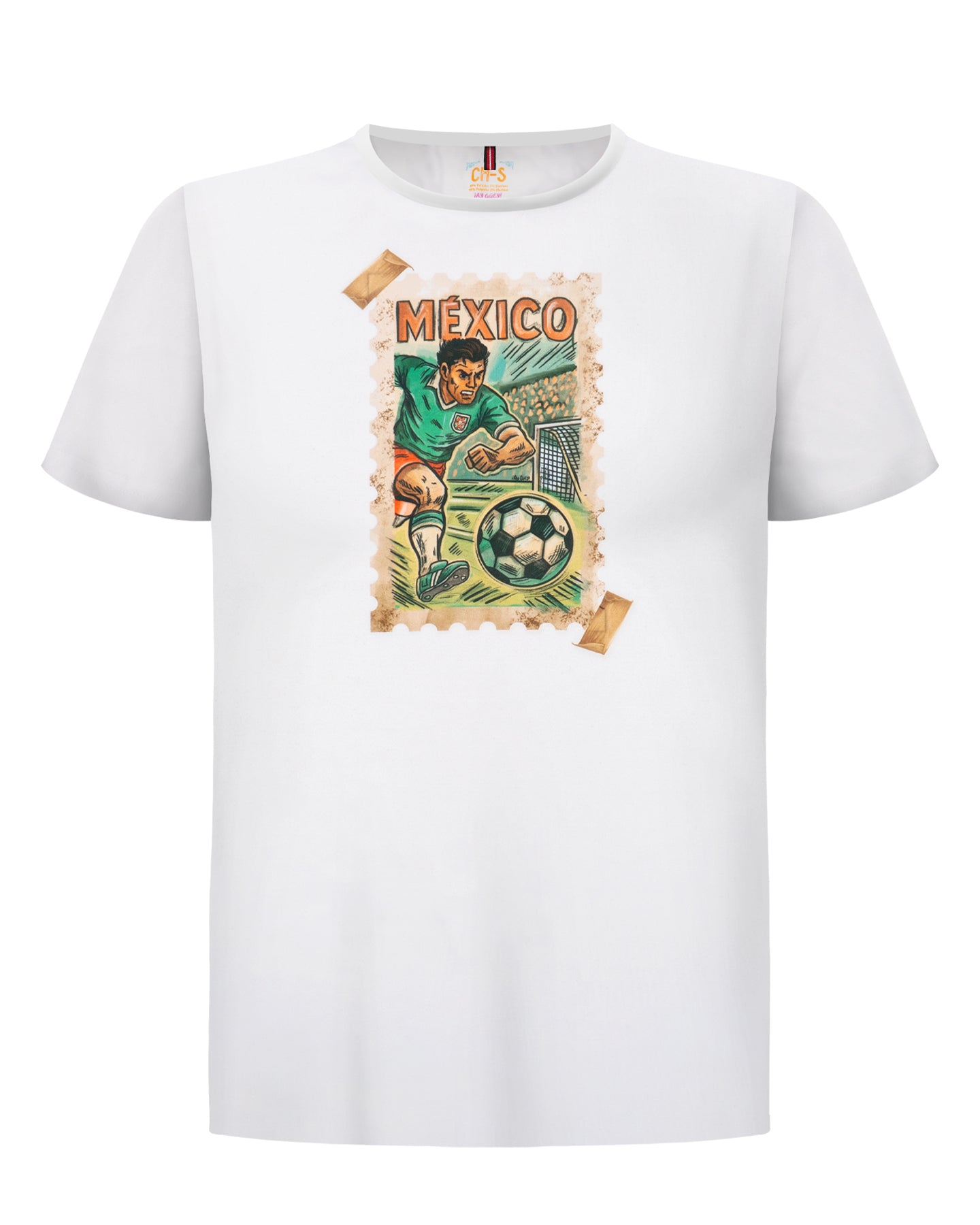 Pieza esencial para los verdaderos apasionados del fútbol. Sobre un diseño clásico en blanco, lleva un vibrante estampado que simula un sello postal retro, con el icónico uniforme y la acción del juego. Lleva el orgullo de la selección a otro nivel. Asegura la tuya y anota un gol de estilo esta temporada.