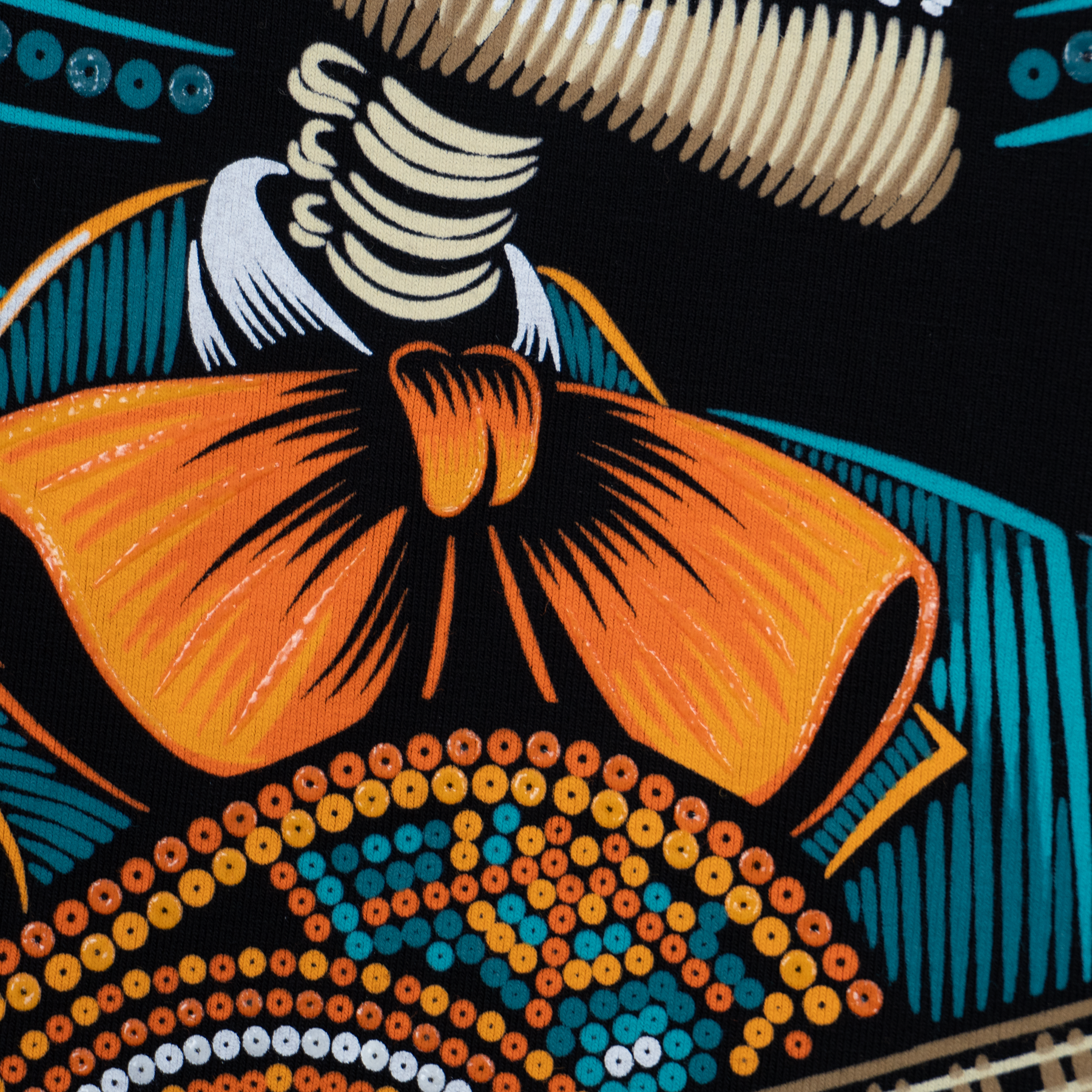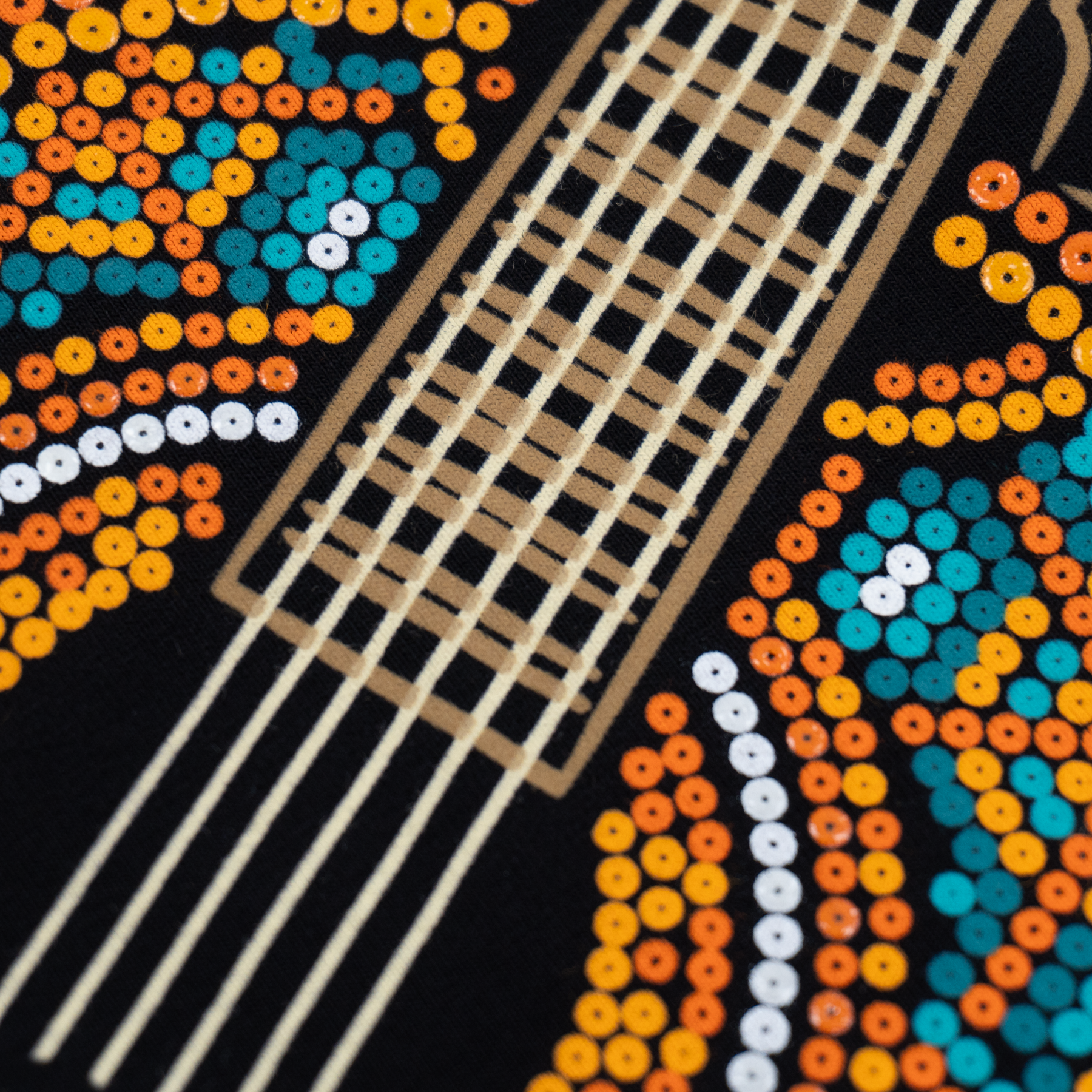 Experimenta la cultura mexicana con nuestra playera Rasca Tripas, inspirada en la música de mariachi. Nuestro diseño único combina técnicas de grabado y motivos huicholes para crear una obra de arte. El gel transparente resalta detalles del estampado, permitiendo que los colores vivos brillen. ¡Viste con orgullo y estilo!