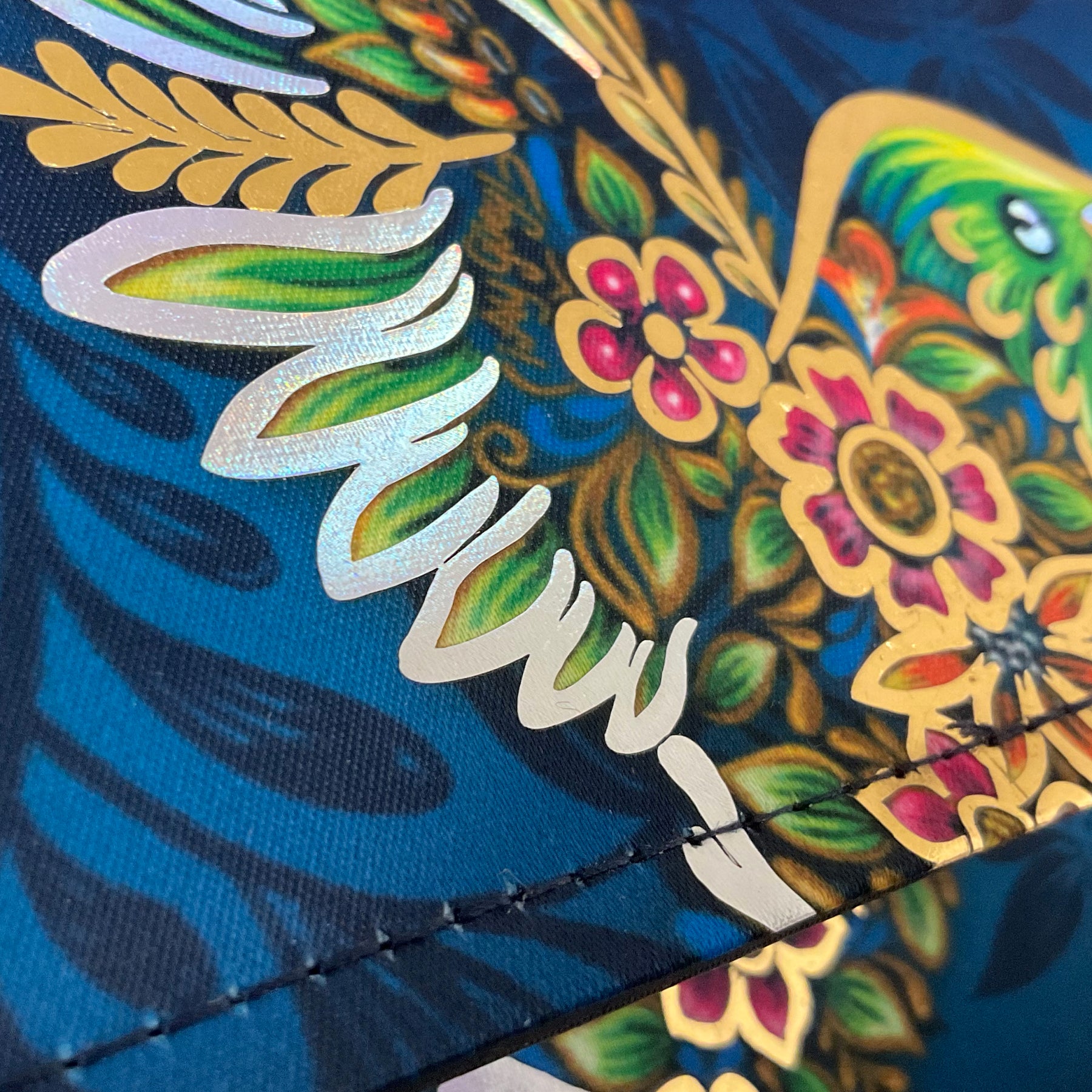 Cuenta con aplicaciones de vinil metalizadas y correa removible.