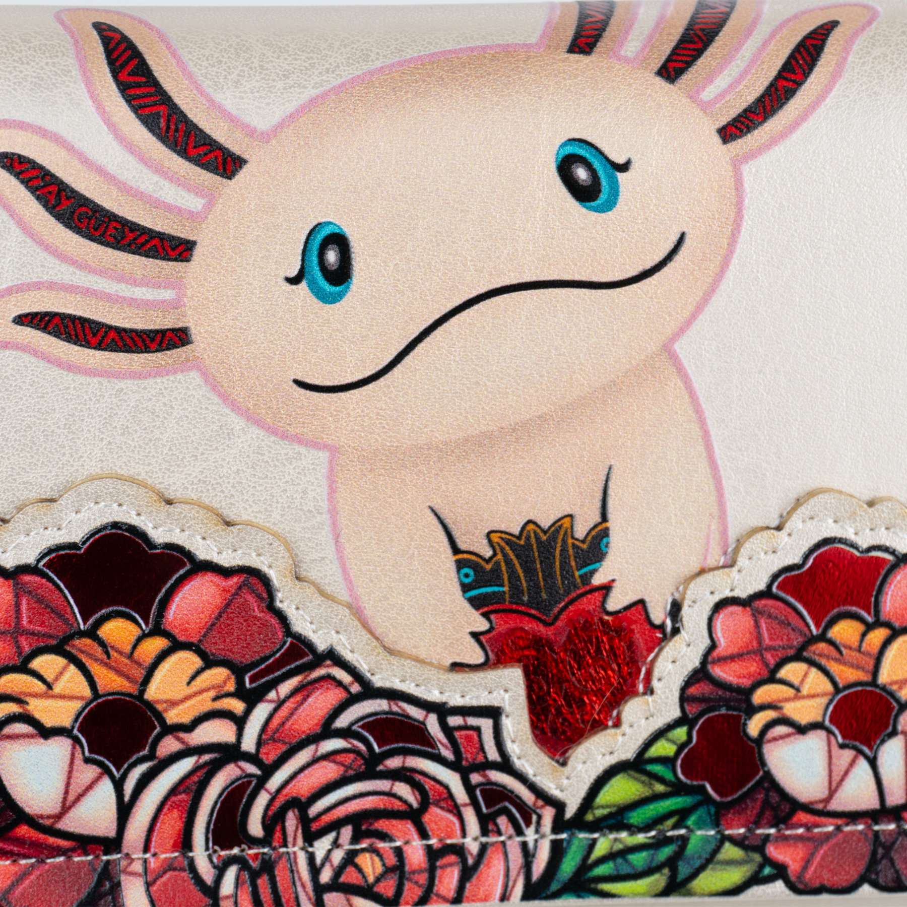 Cartera de dama inspirada en el ajolote, un simpático personaje que habita en la zona de Xochimilco