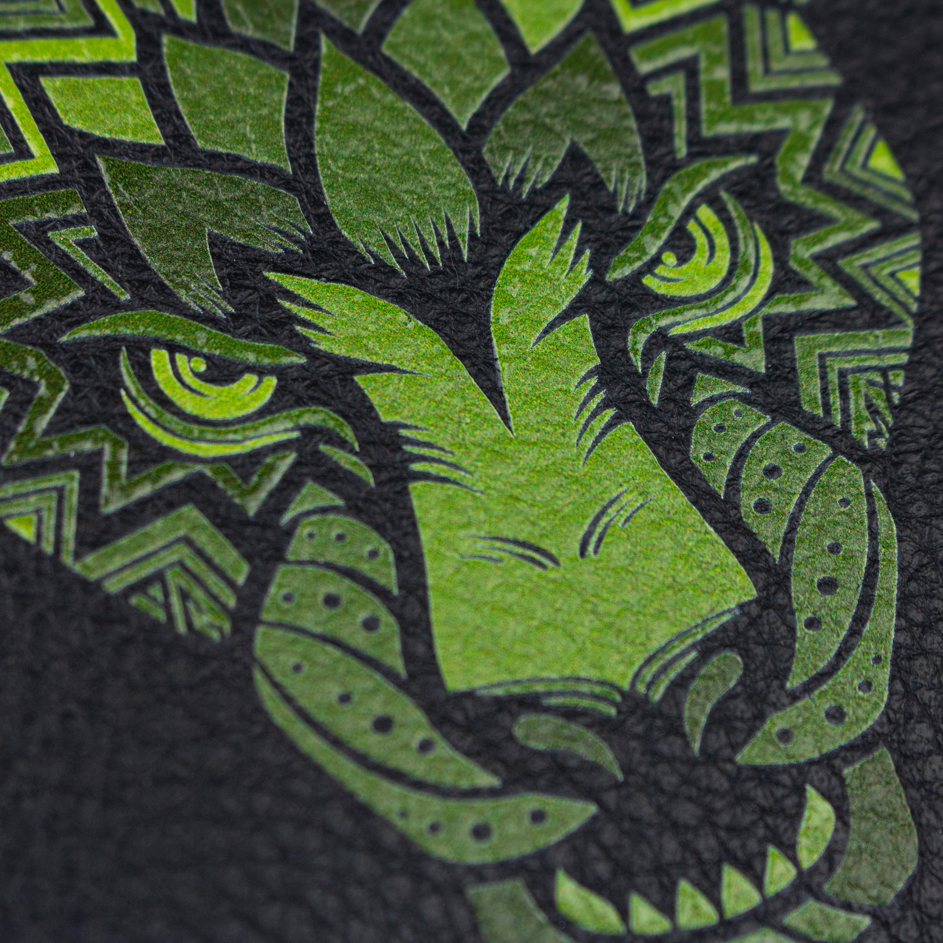 Cartera de piel en color verde con impresión de jaguar