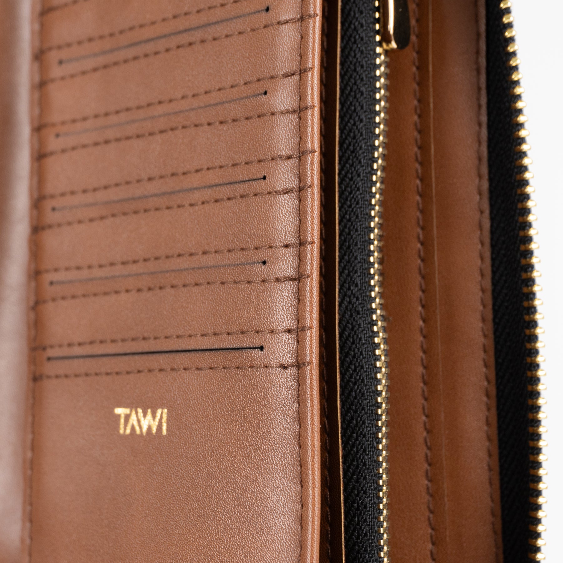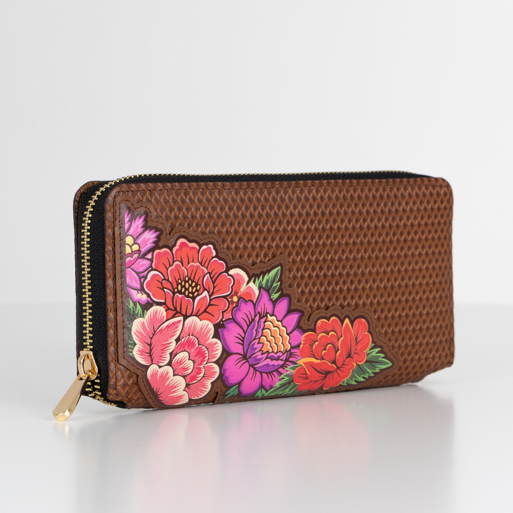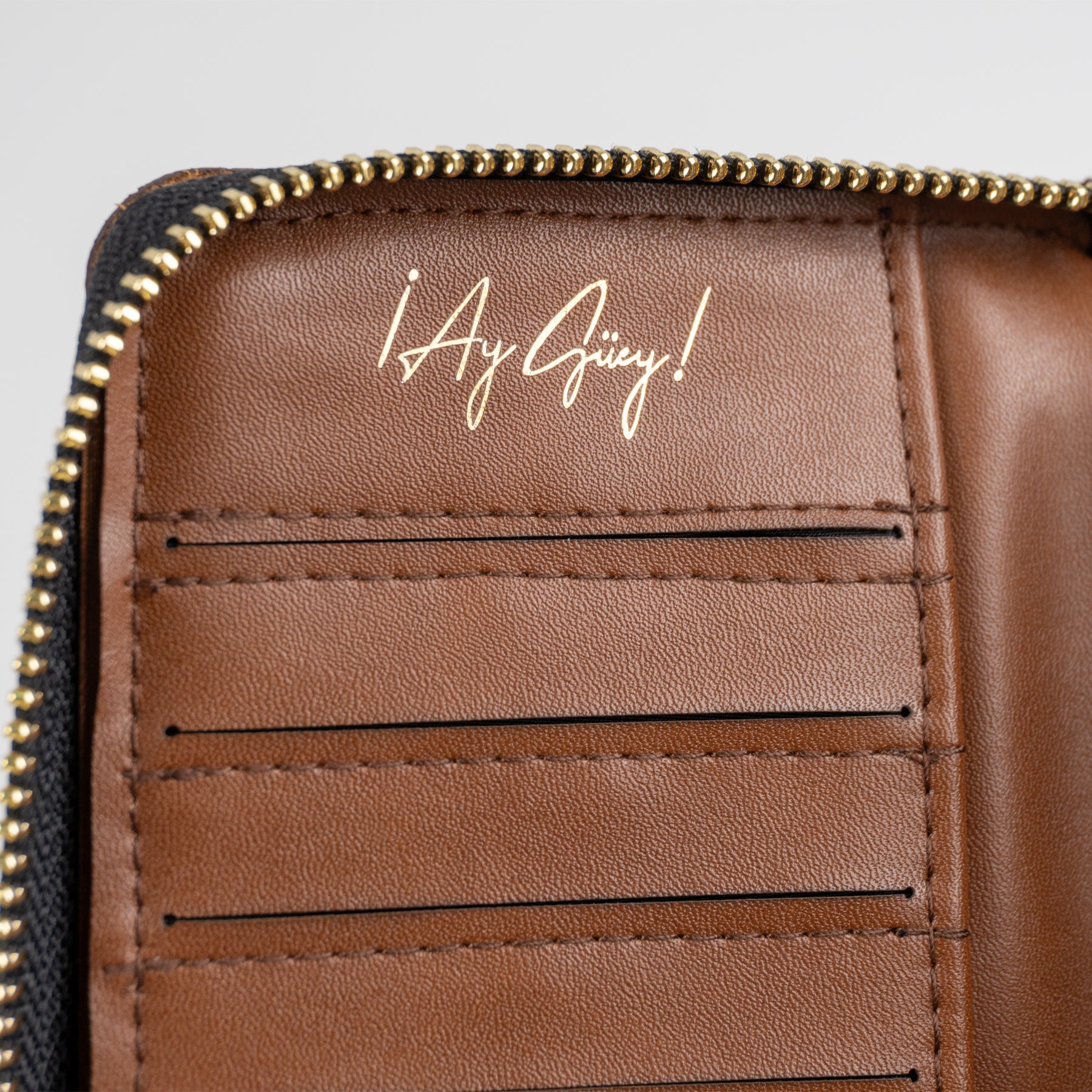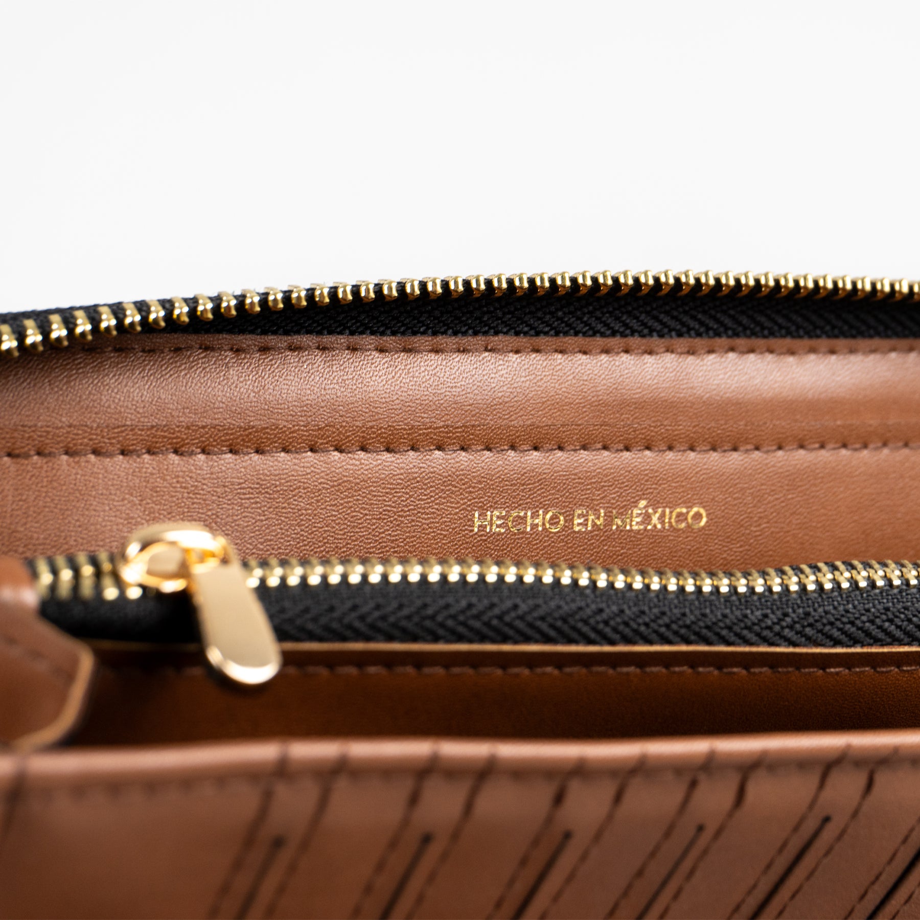 Cartera amplia de dama, con 3 bolsillos, tarjeteros y monedero.