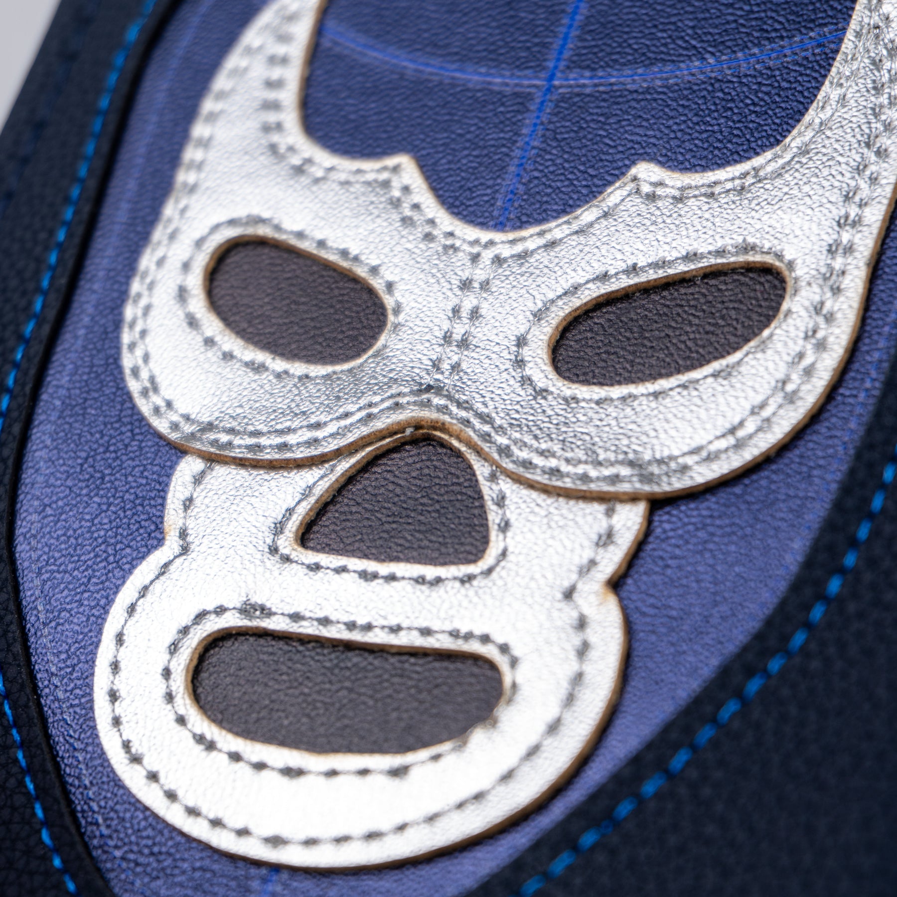 Rinde homenaje al icónico luchador Blue Demon Jr. con esta elegante cartera. Diseño compacto con el distintivo antifaz en el frente y el detalle de cordones que emula su legendaria máscara en la parte trasera. Perfecta para los verdaderos aficionados.