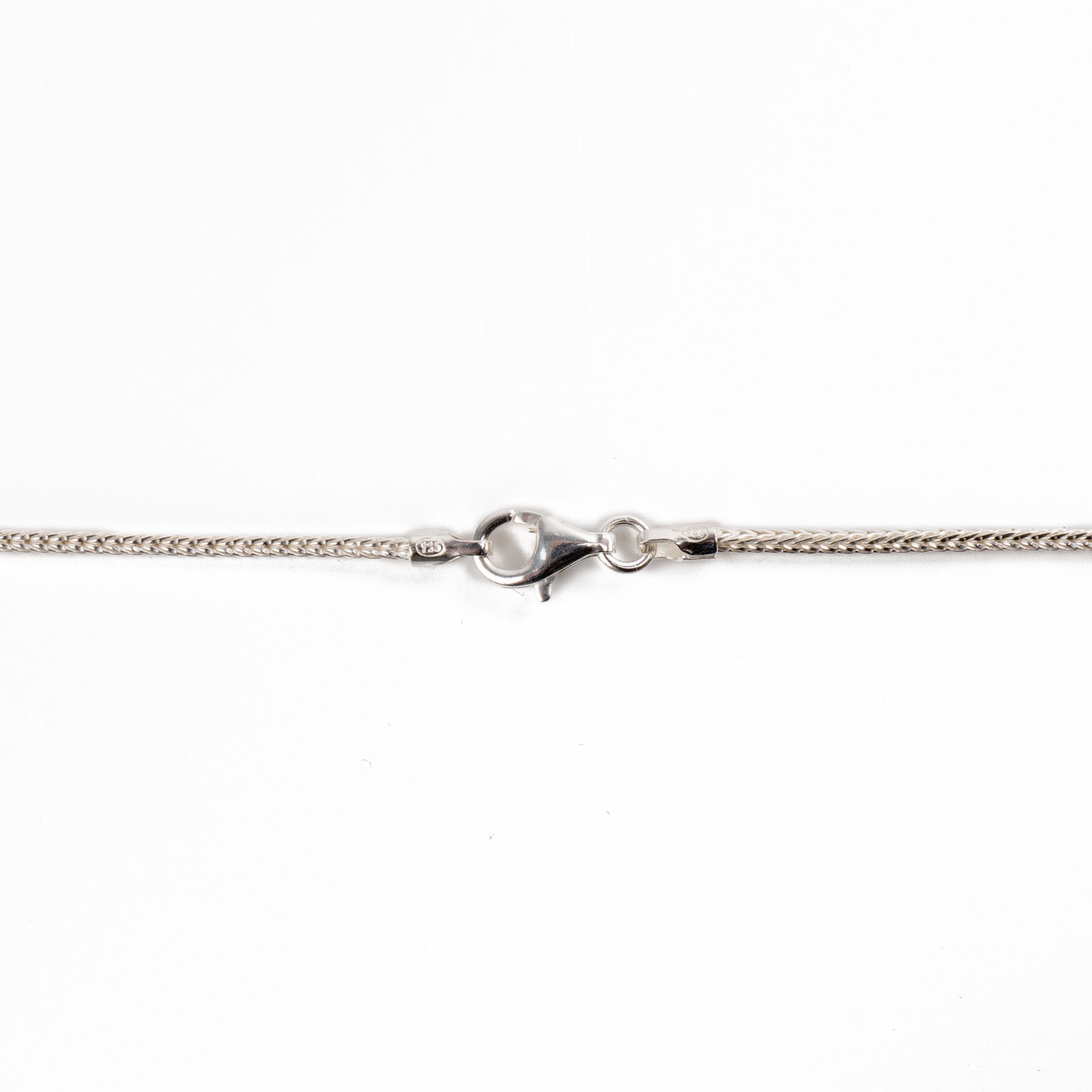 Con incrustaciones de brillantes en tonalidad violeta, hecho de plata ley 925, esta pieza es una combinación perfecta de elegancia y durabilidad. El cierre asegura que se mantenga seguro en tu cuello todo el día.