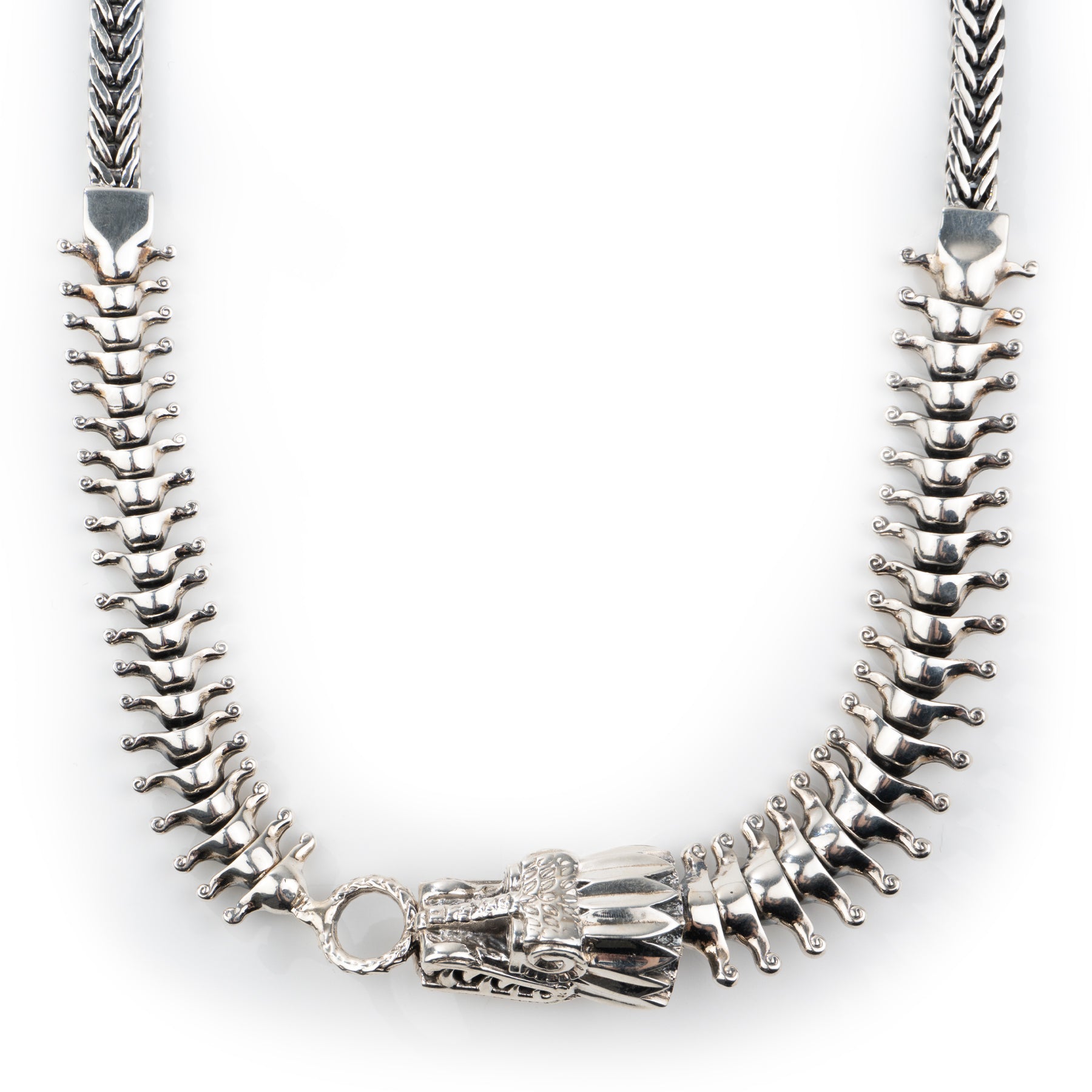 Collar de plata con cadena y remate de eslabones - Modelo QUETZALCÓATL