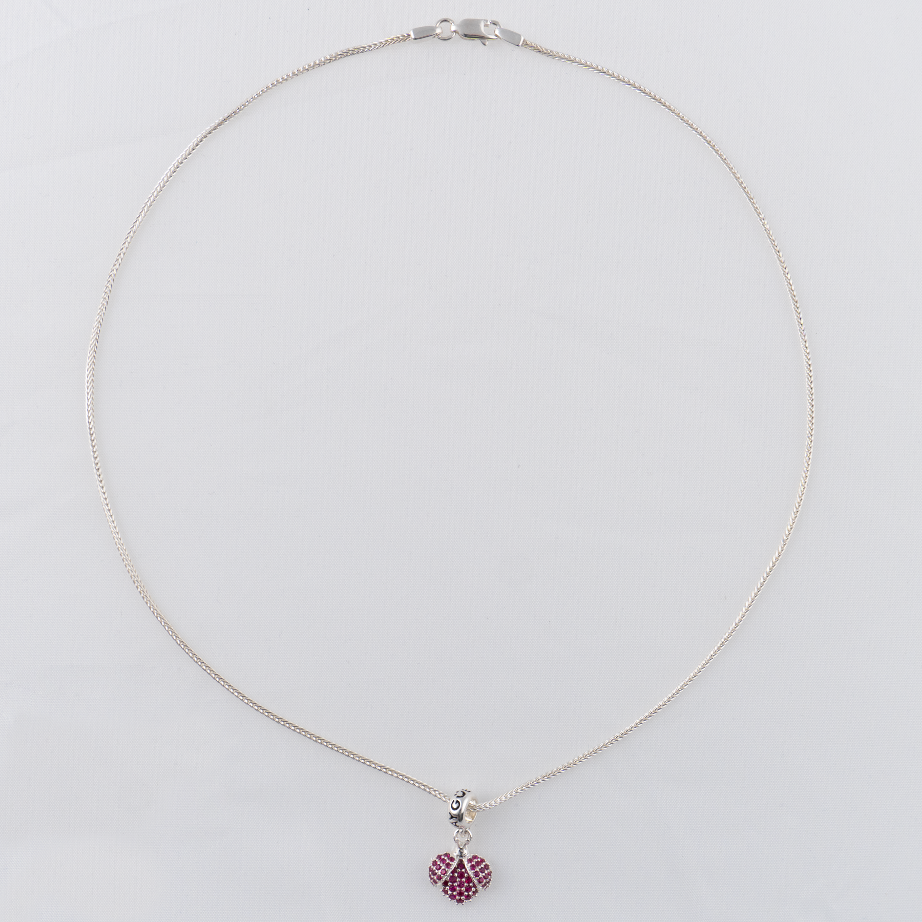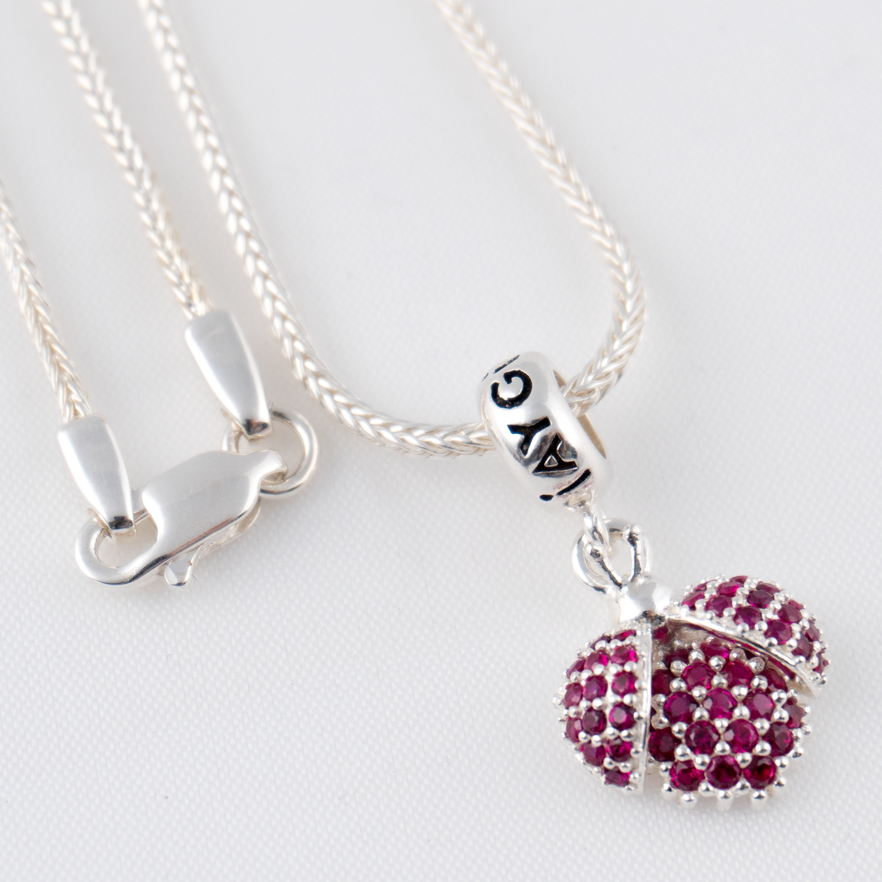 Luce este hermoso collar de plata ley 925 con un encantador dije en forma de catarina. Las brillantes circonias rosas, cuidadosamente incrustadas, añaden un toque de elegancia y distinción a esta pieza única. El cierre seguro garantiza que el collar se mantenga en su lugar todo el día.