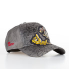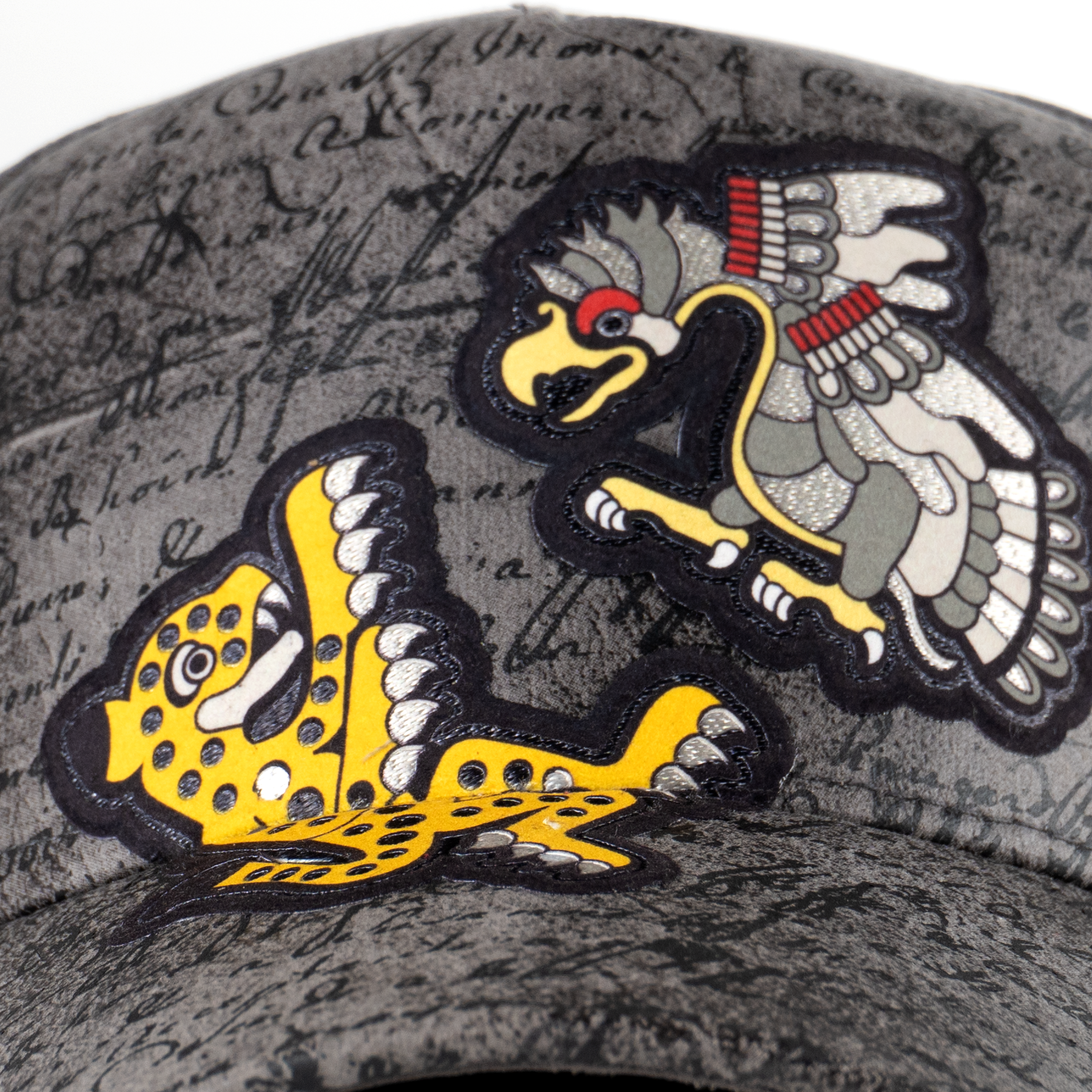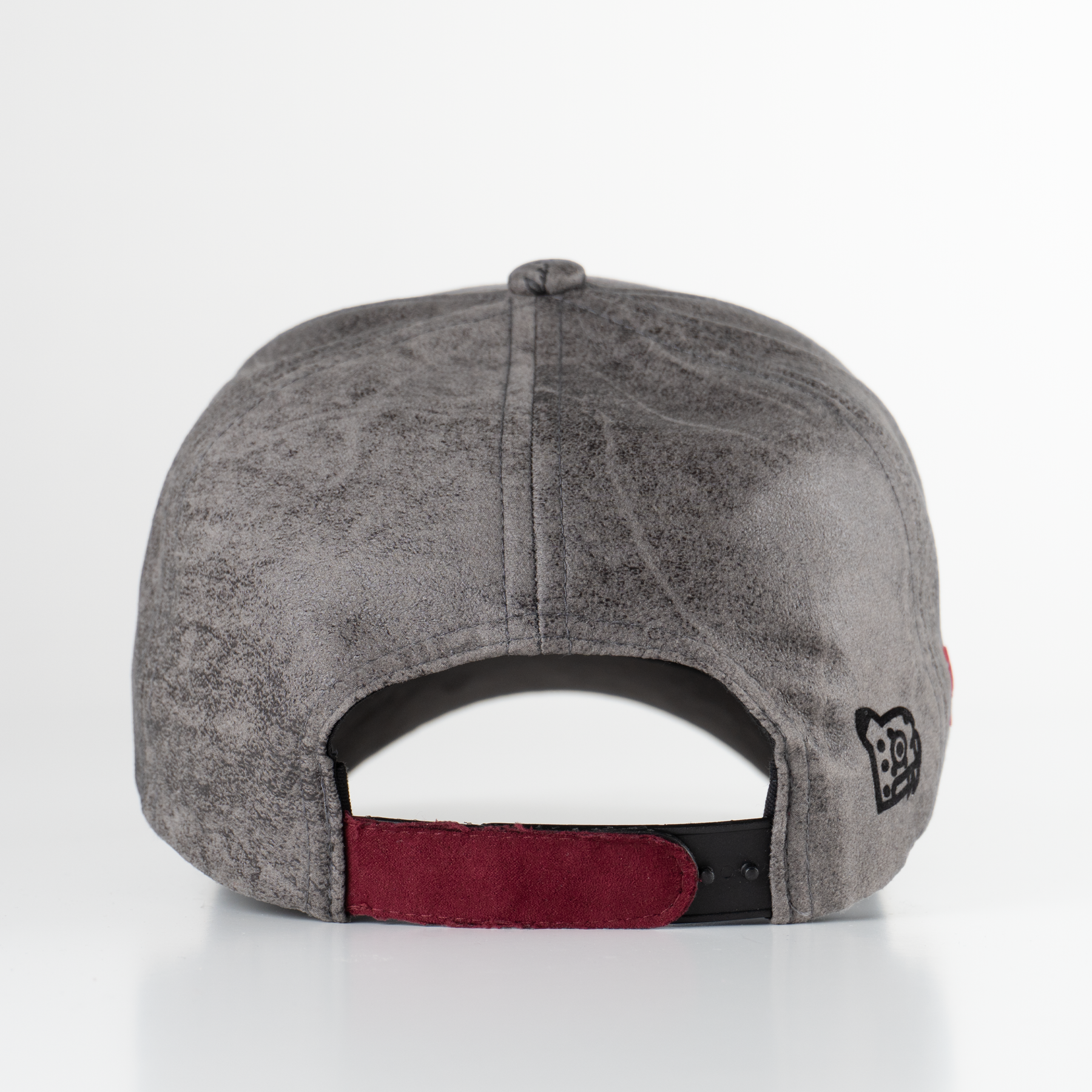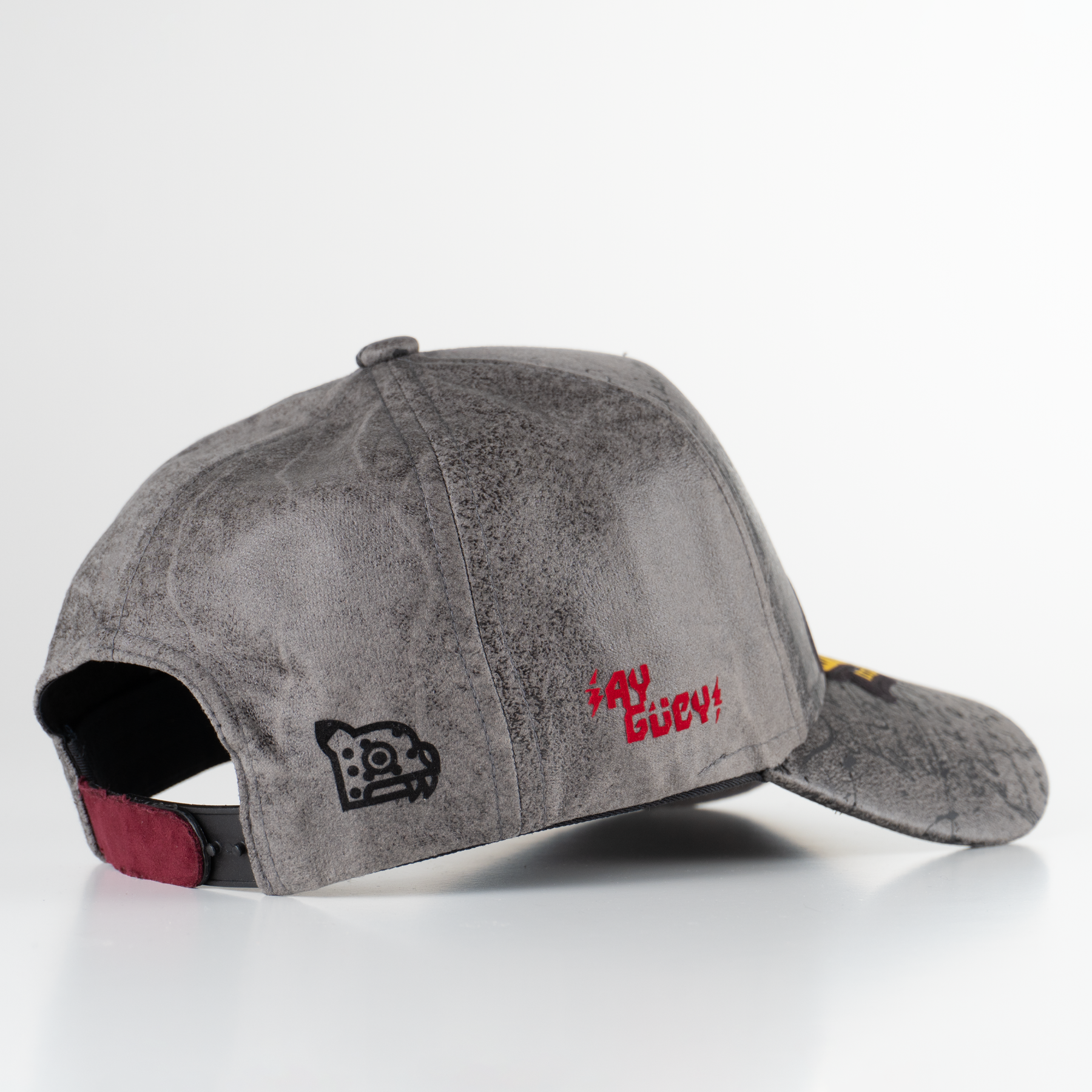 Gorra curva ajustable confeccionada con una diversidad de materiales, que en combinación, logran una pieza llena de originalidad.