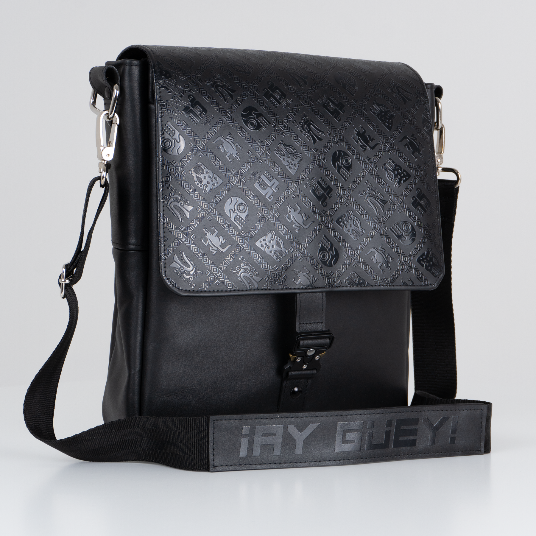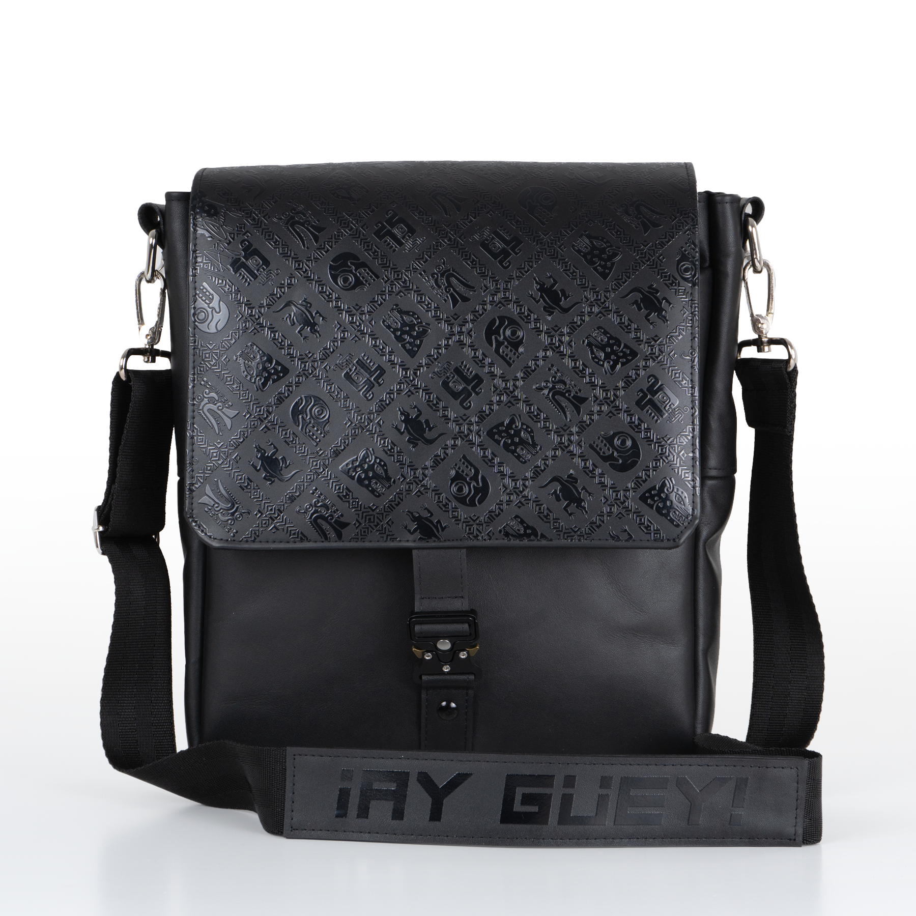 Mochila Mensajera de piel con correa ajustable - Colección SÍMBOLOS PREHISPÁNICOS