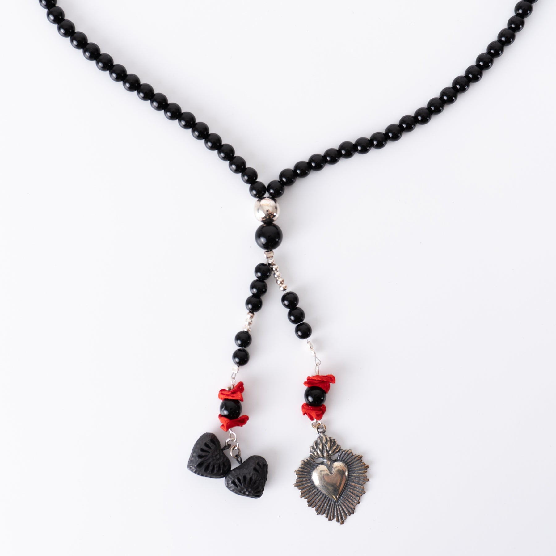 Collar con cuentas de barro negro - Modelo CORAZÓN DE FUEGO