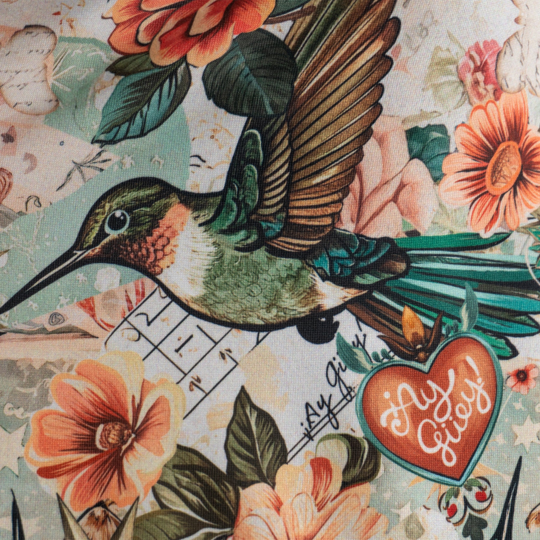 Vestido de dama con manga corta. sublimado. El dibujo transmite una sensación de armonía entre la belleza y la naturaleza, capturando la belleza y la conexión profunda de la dama con su entorno.